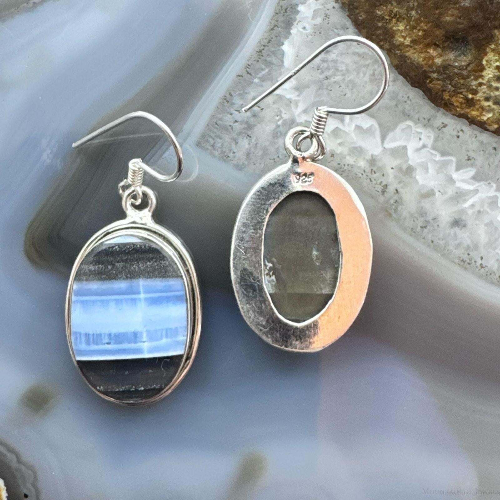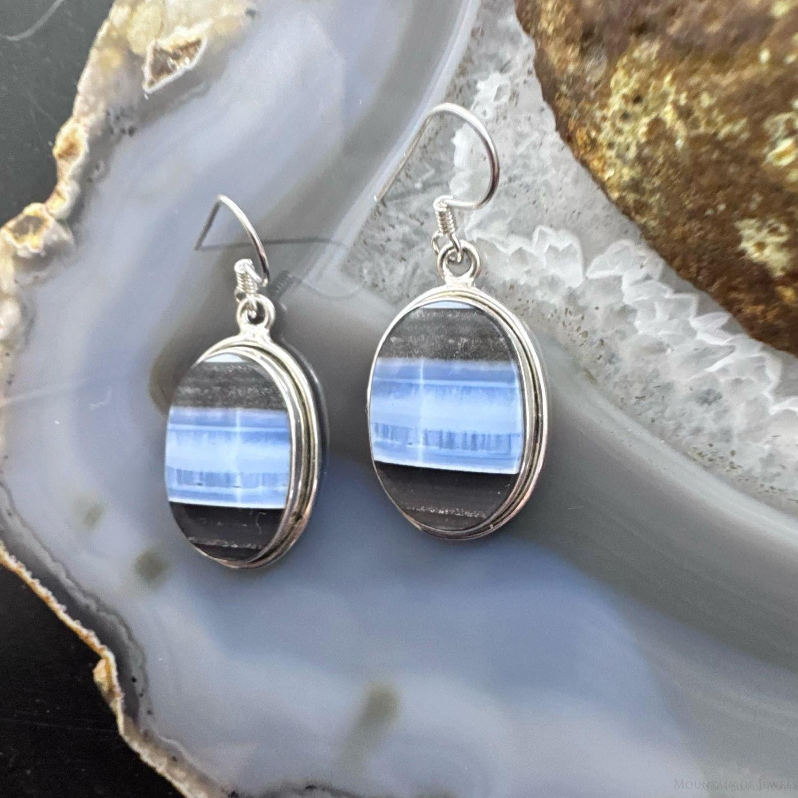 Sterling Silver Southwestern Style Oval Blue Opal Dangle Earrings For Women
