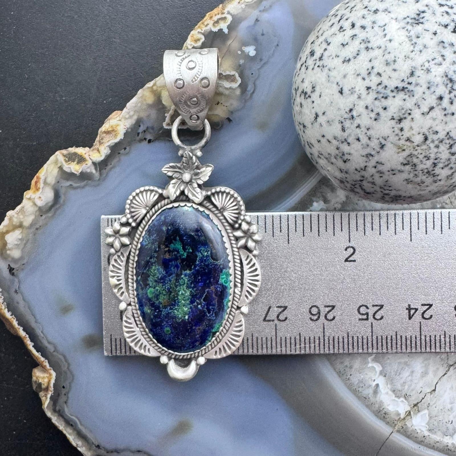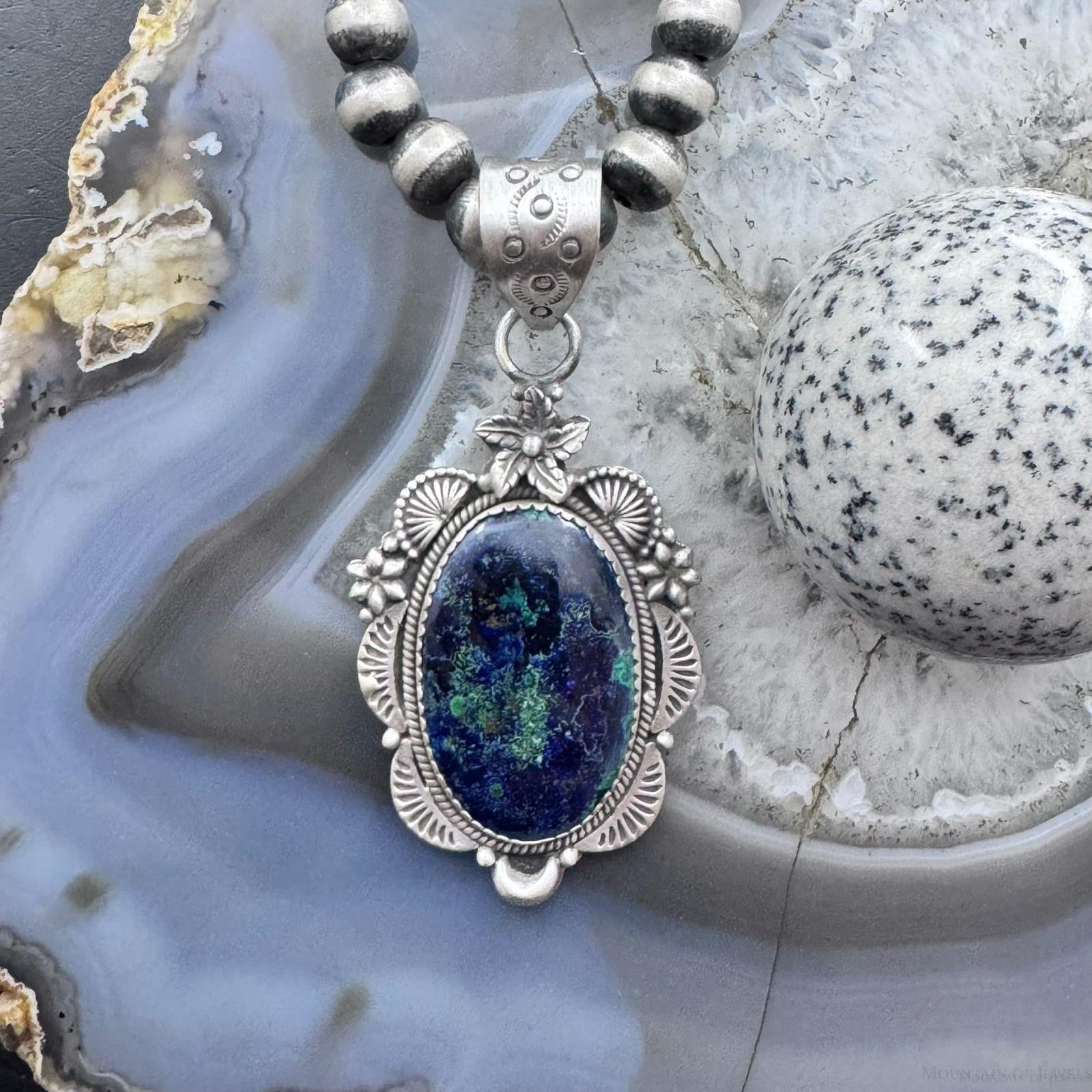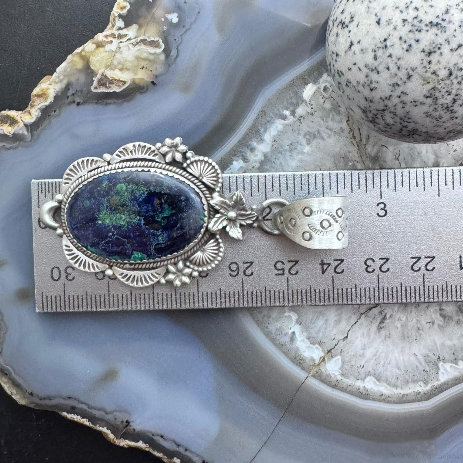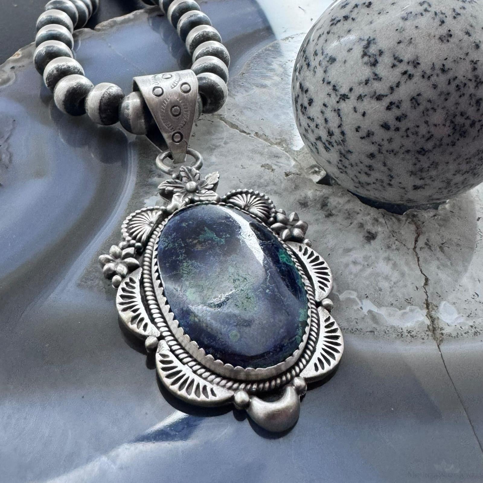 Sterling Silver Southwestern Style Oval Chrysocolla Decorated Pendant For Women