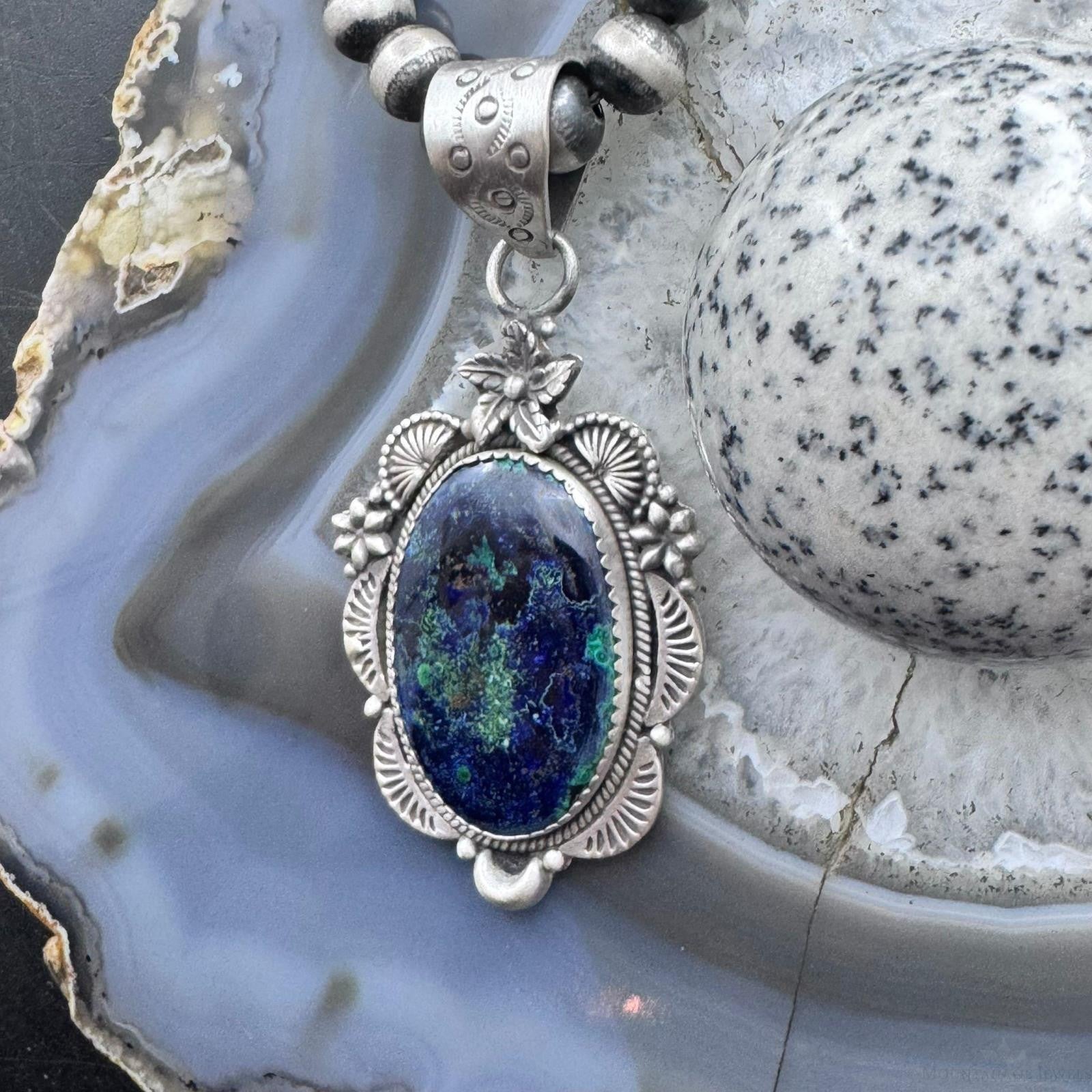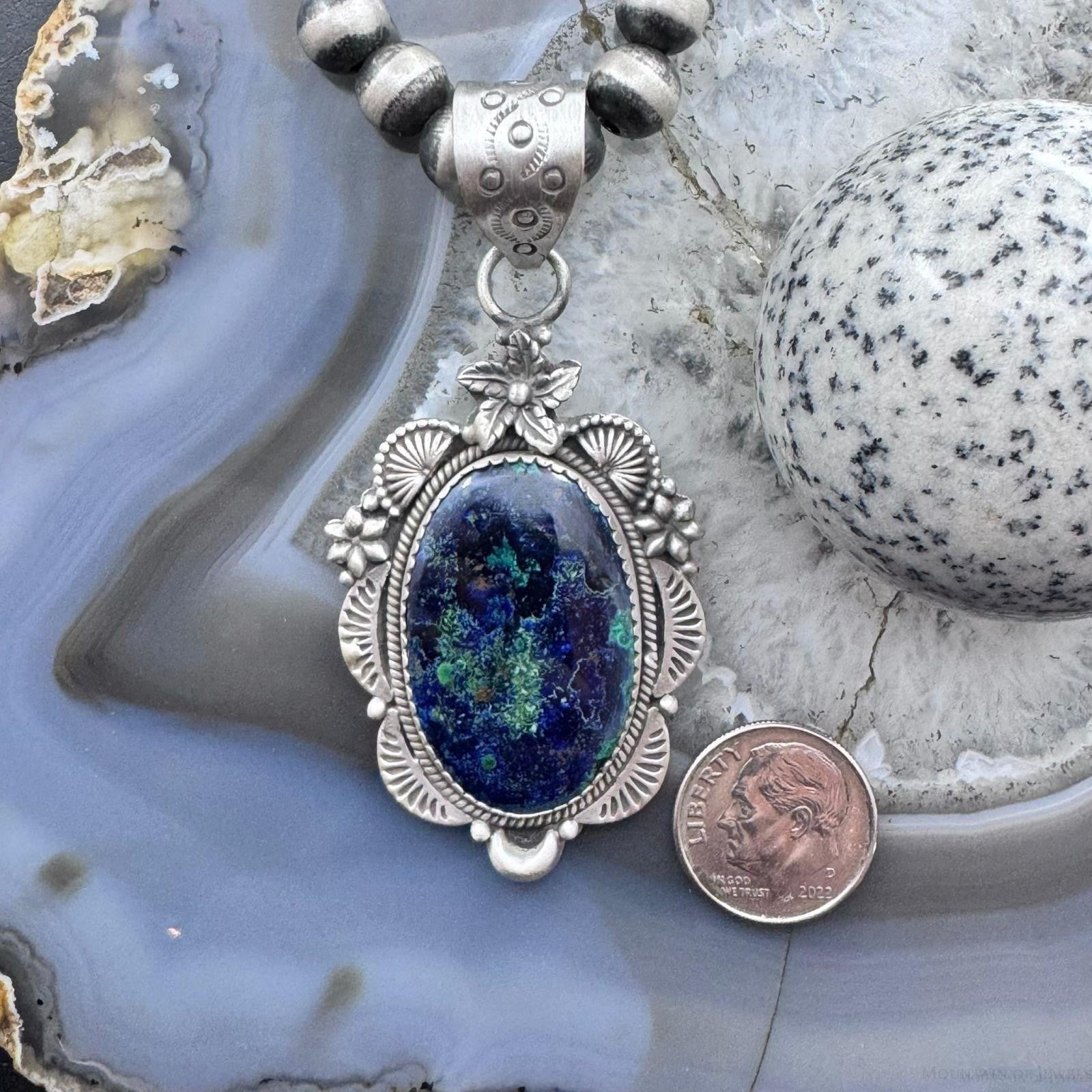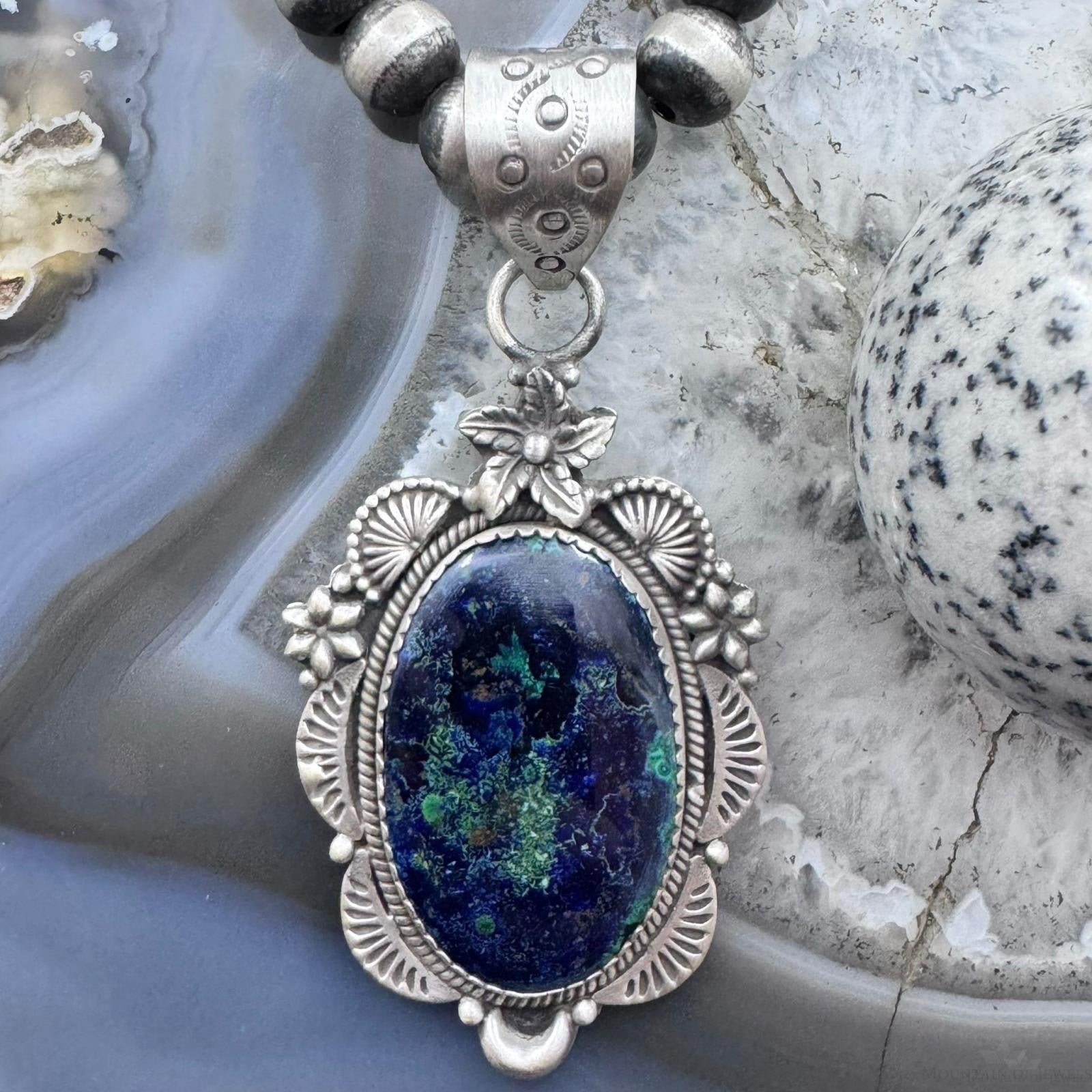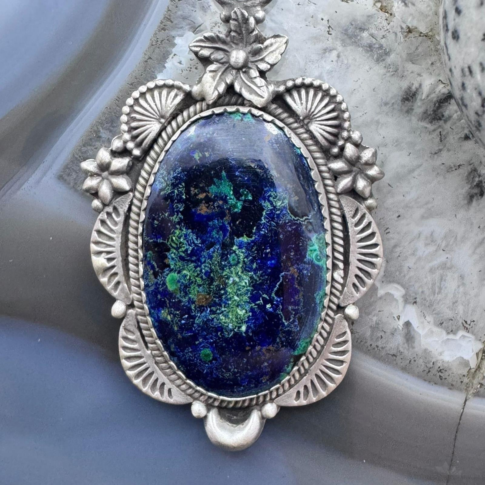 Sterling Silver Southwestern Style Oval Chrysocolla Decorated Pendant For Women