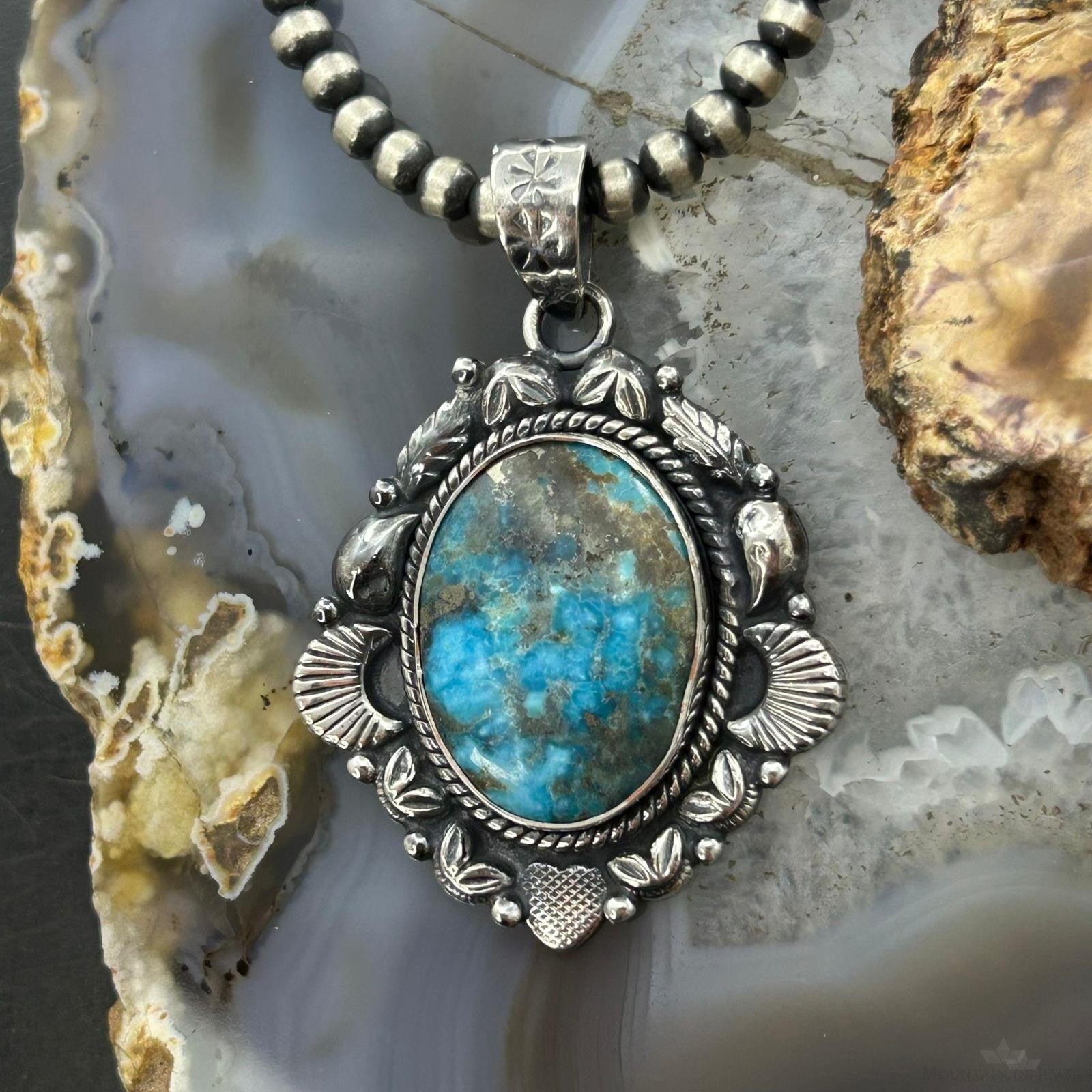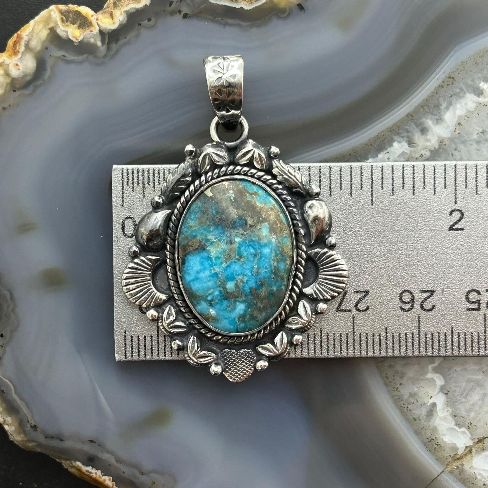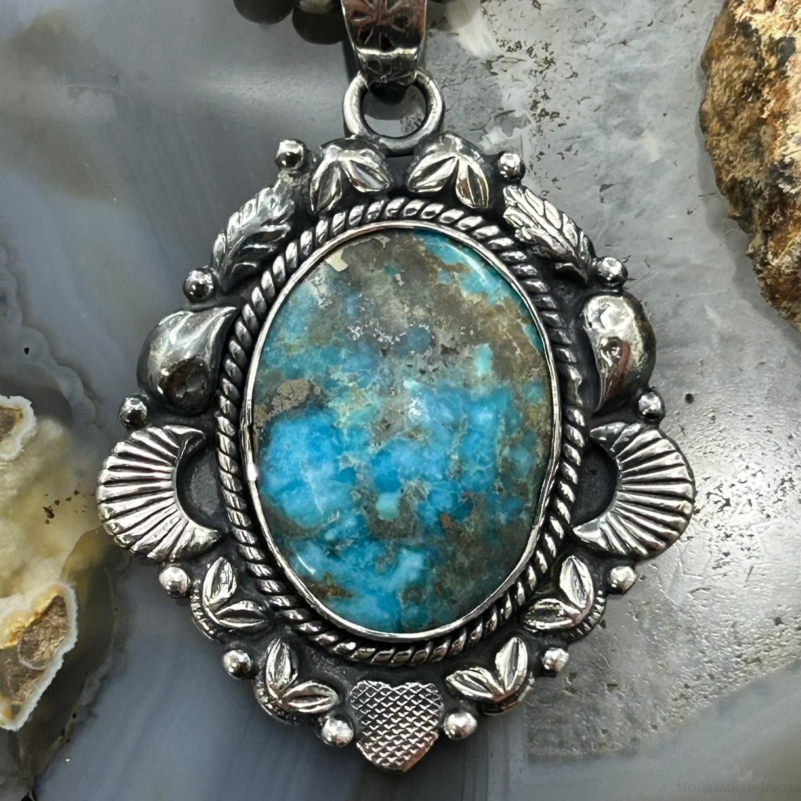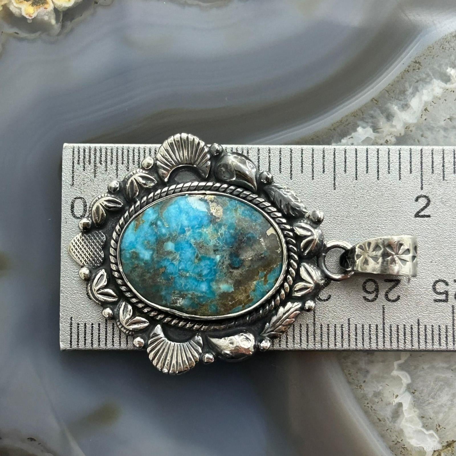 Sterling Silver Southwestern Style Oval Turquoise Decorated Pendant For Women.