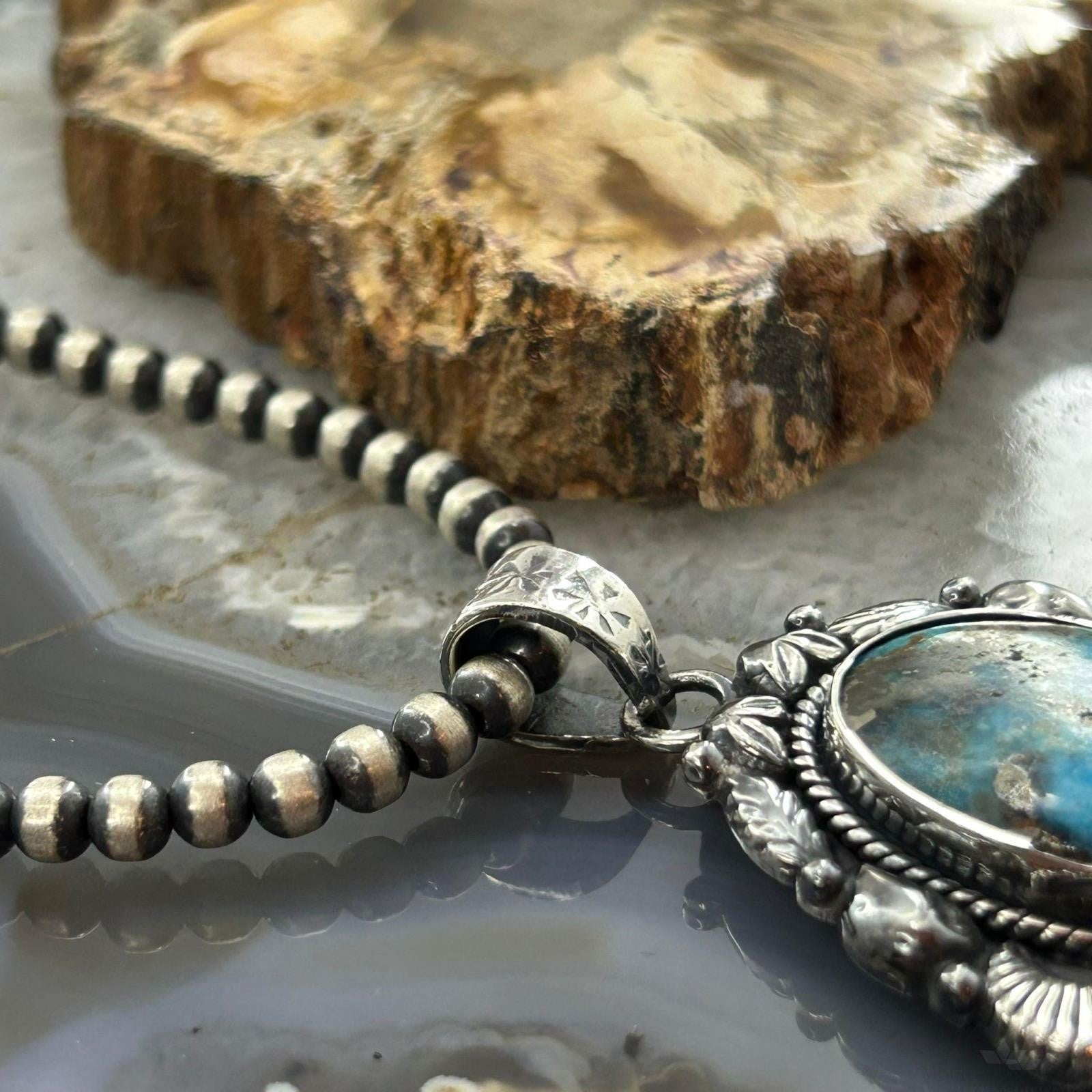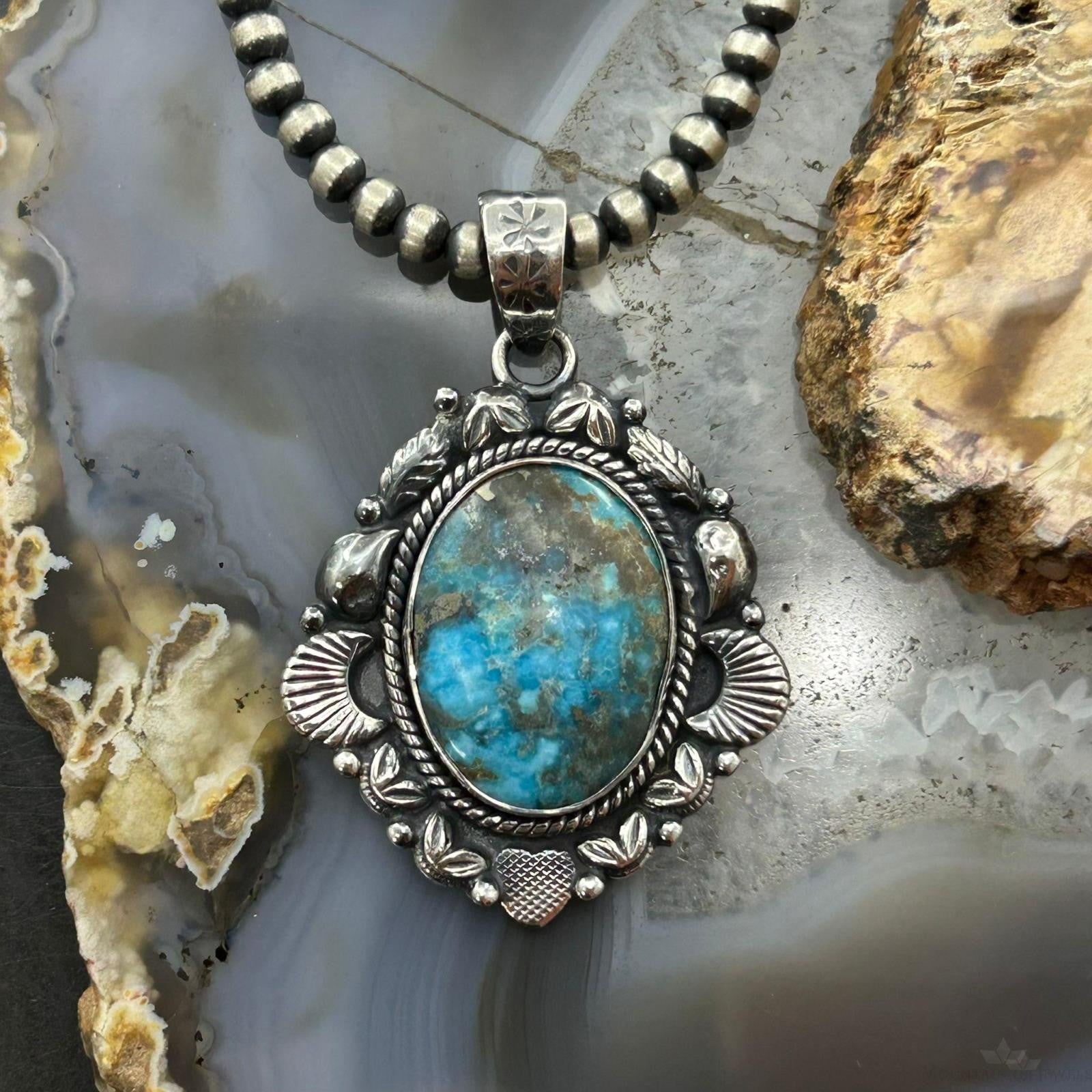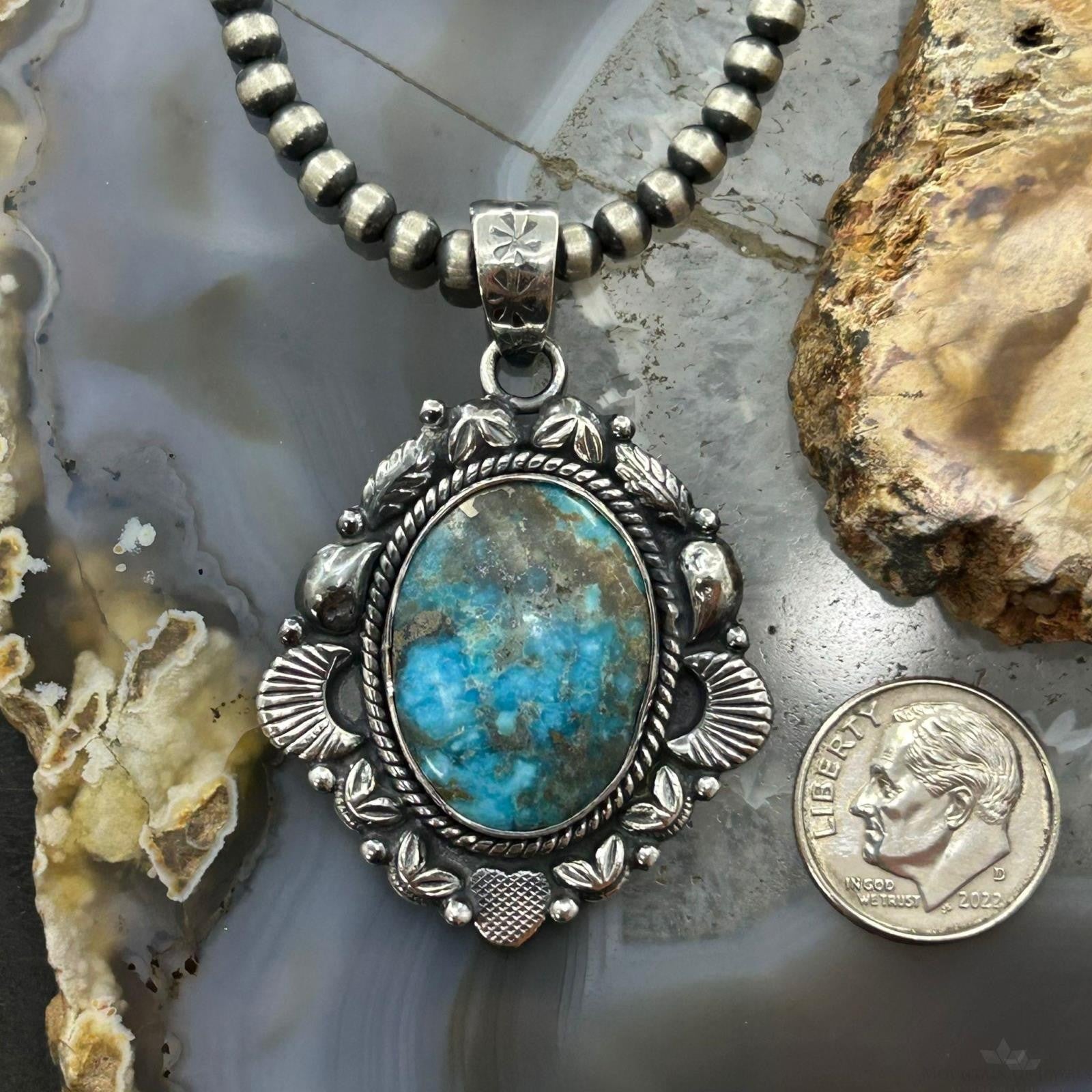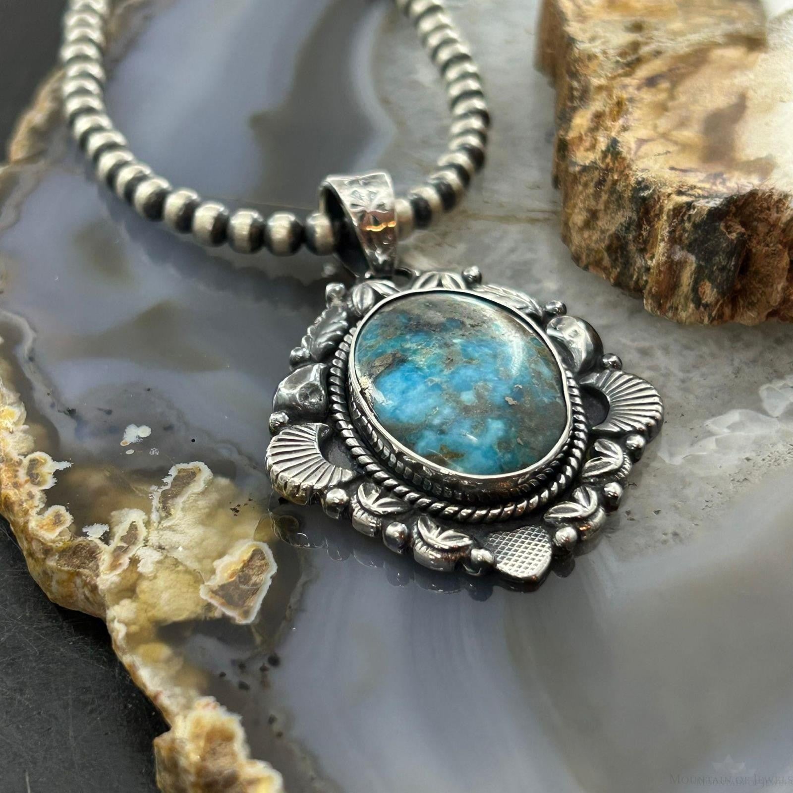 Sterling Silver Southwestern Style Oval Turquoise Decorated Pendant For Women.