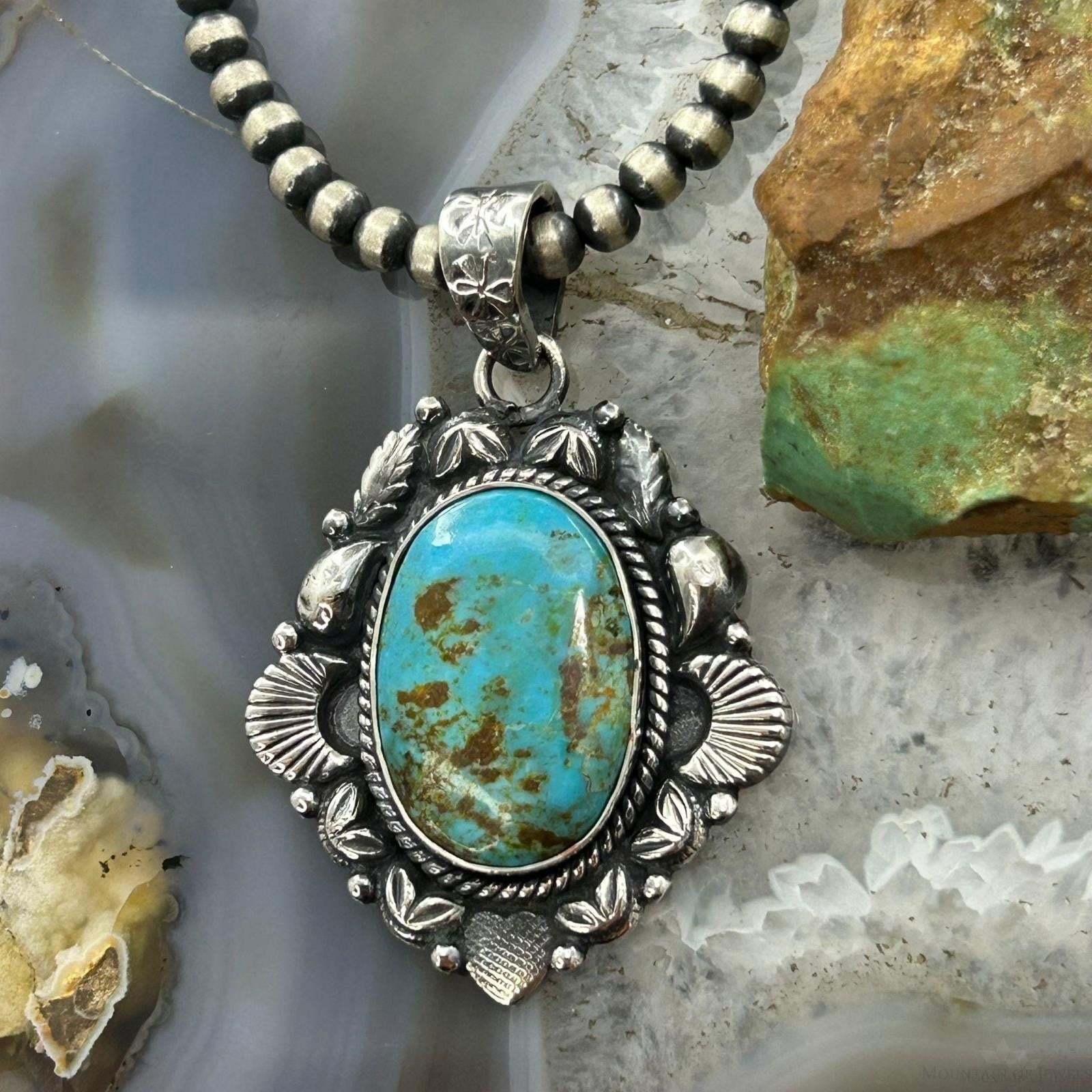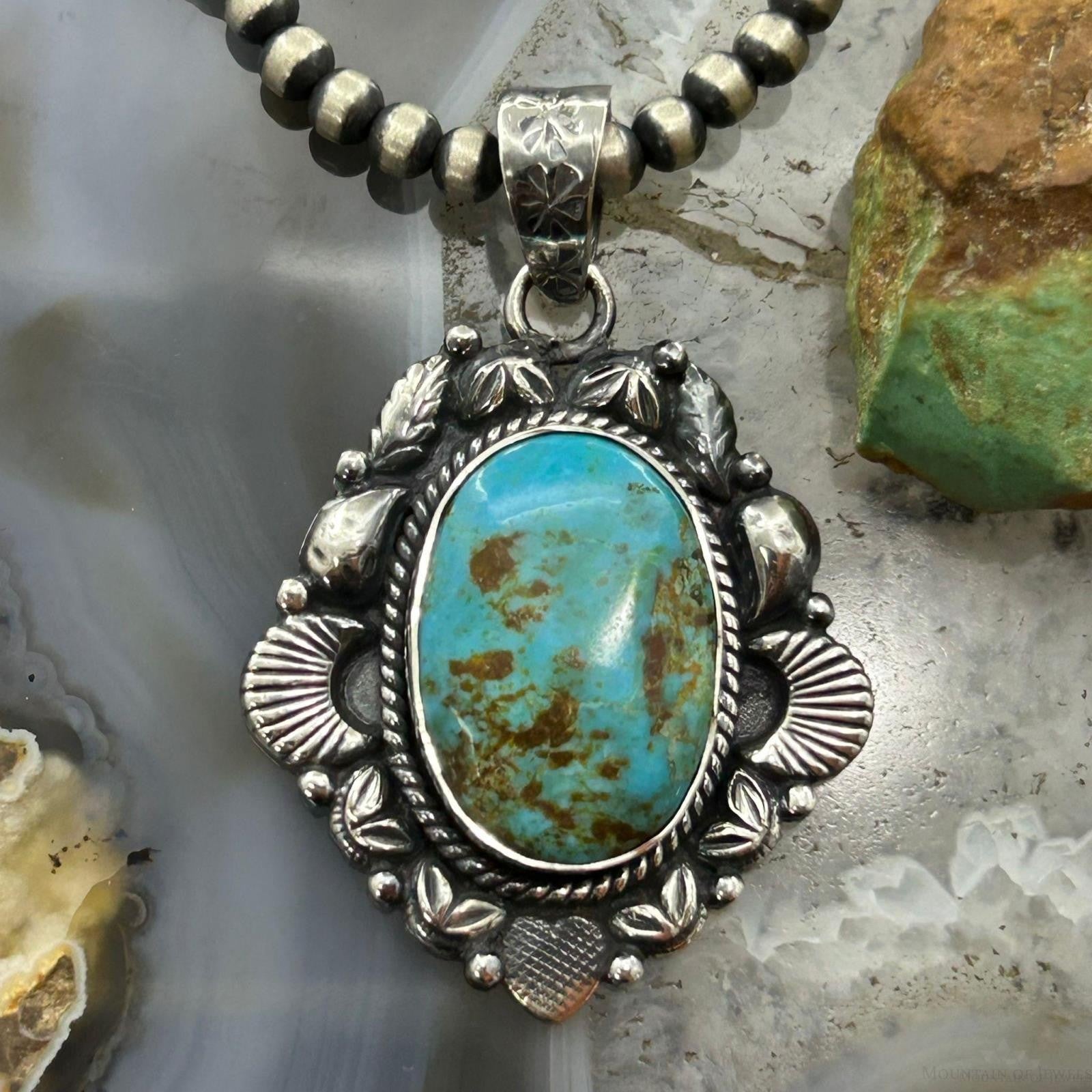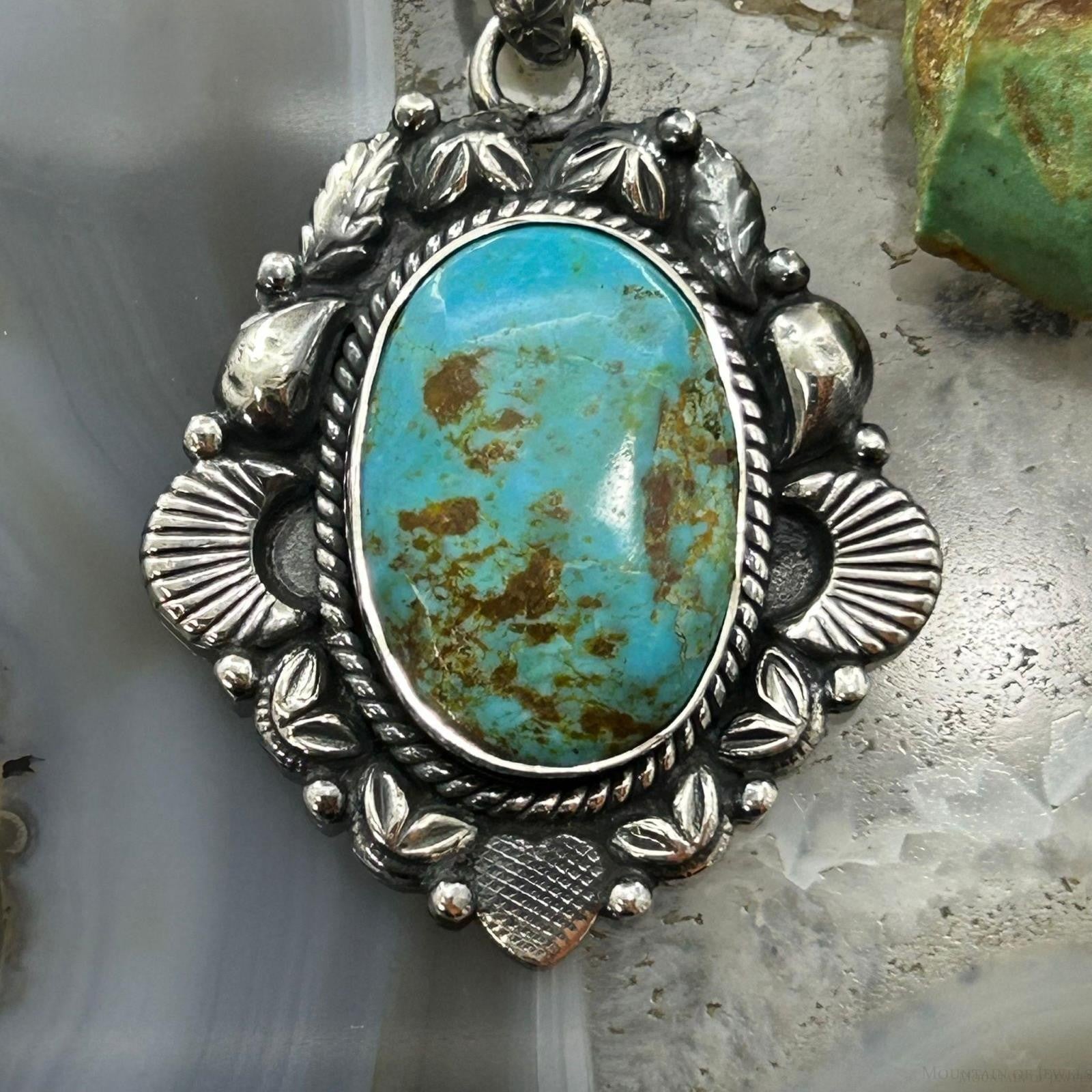 Sterling Silver Southwestern Style Oval Turquoise Decorated Pendant For Women.
