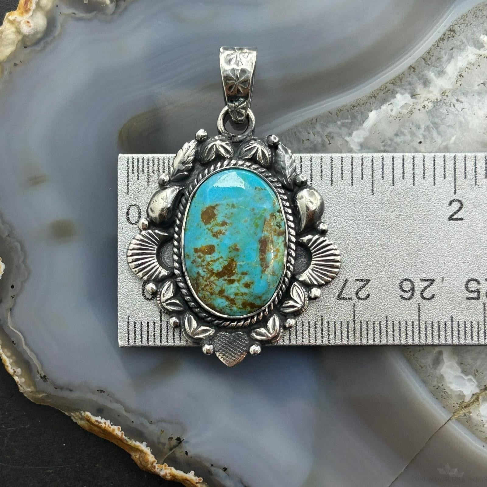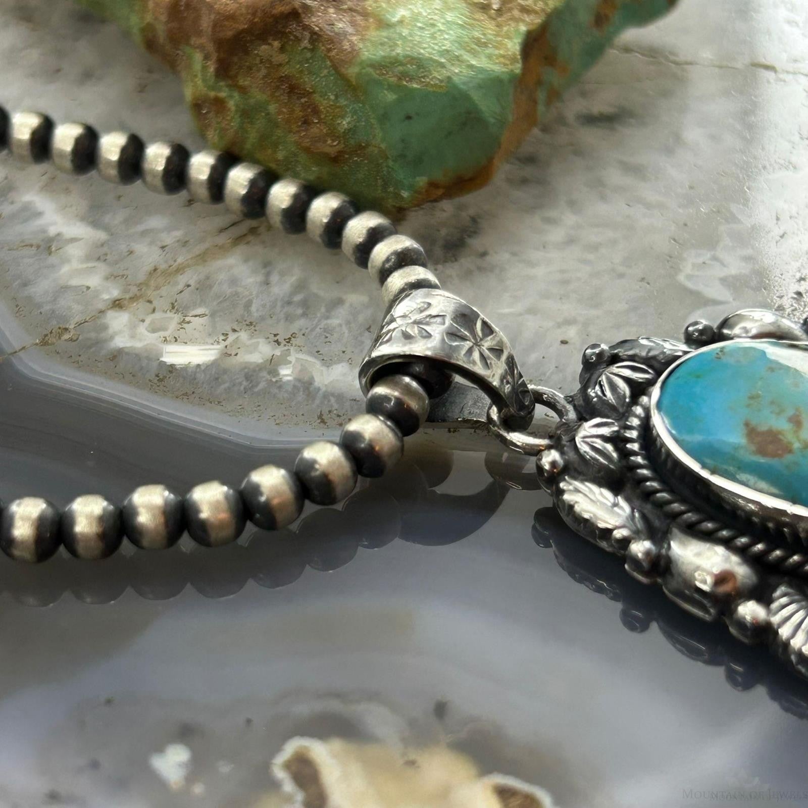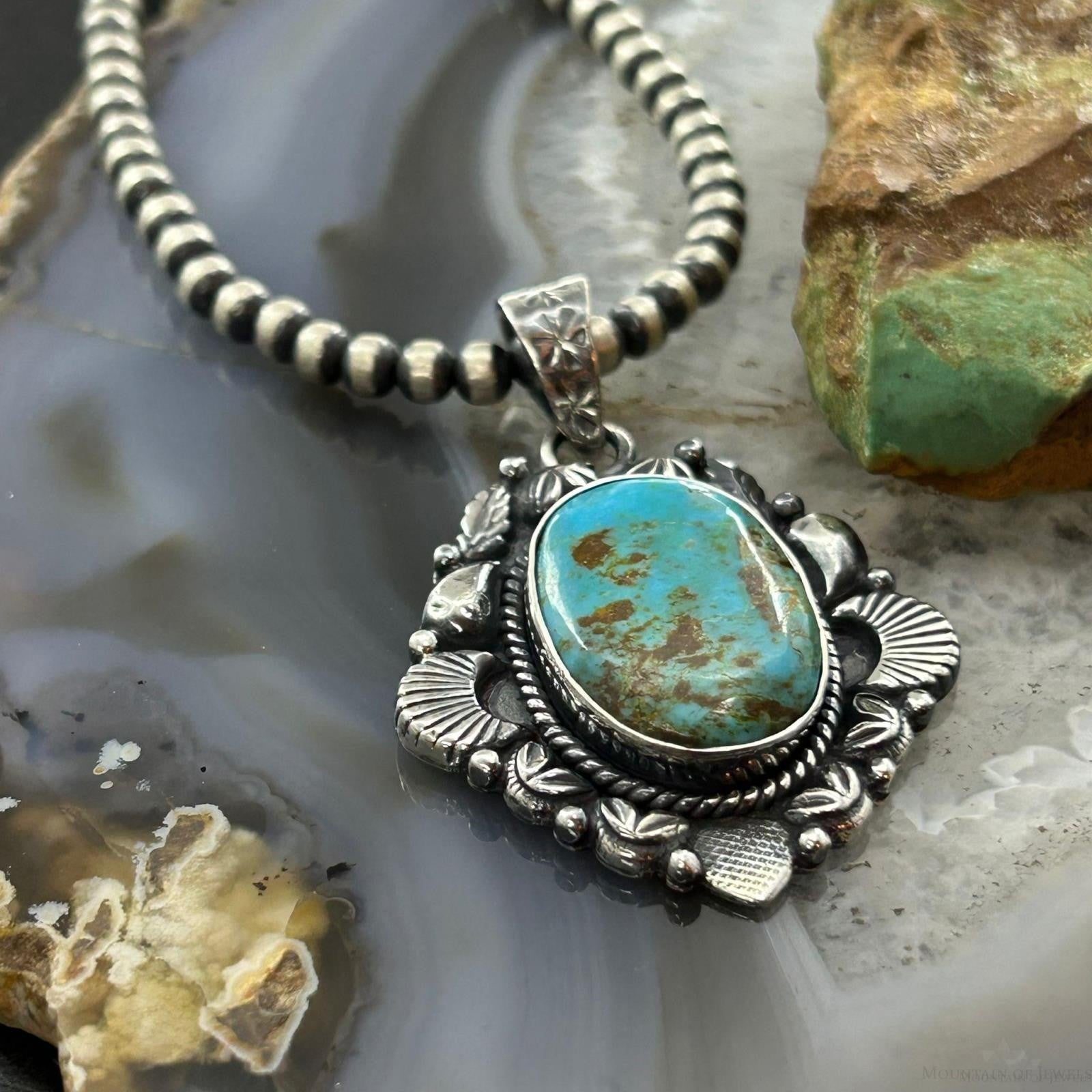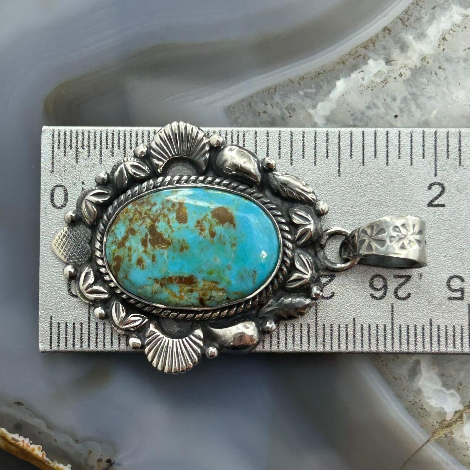 Sterling Silver Southwestern Style Oval Turquoise Decorated Pendant For Women.