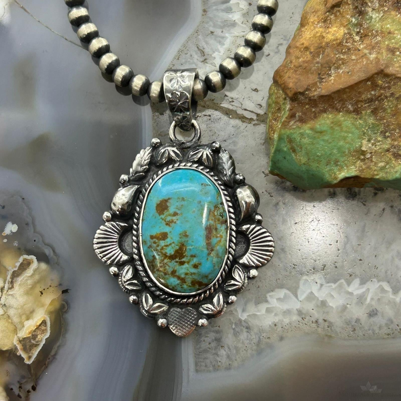 Sterling Silver Southwestern Style Oval Turquoise Decorated Pendant For Women #2