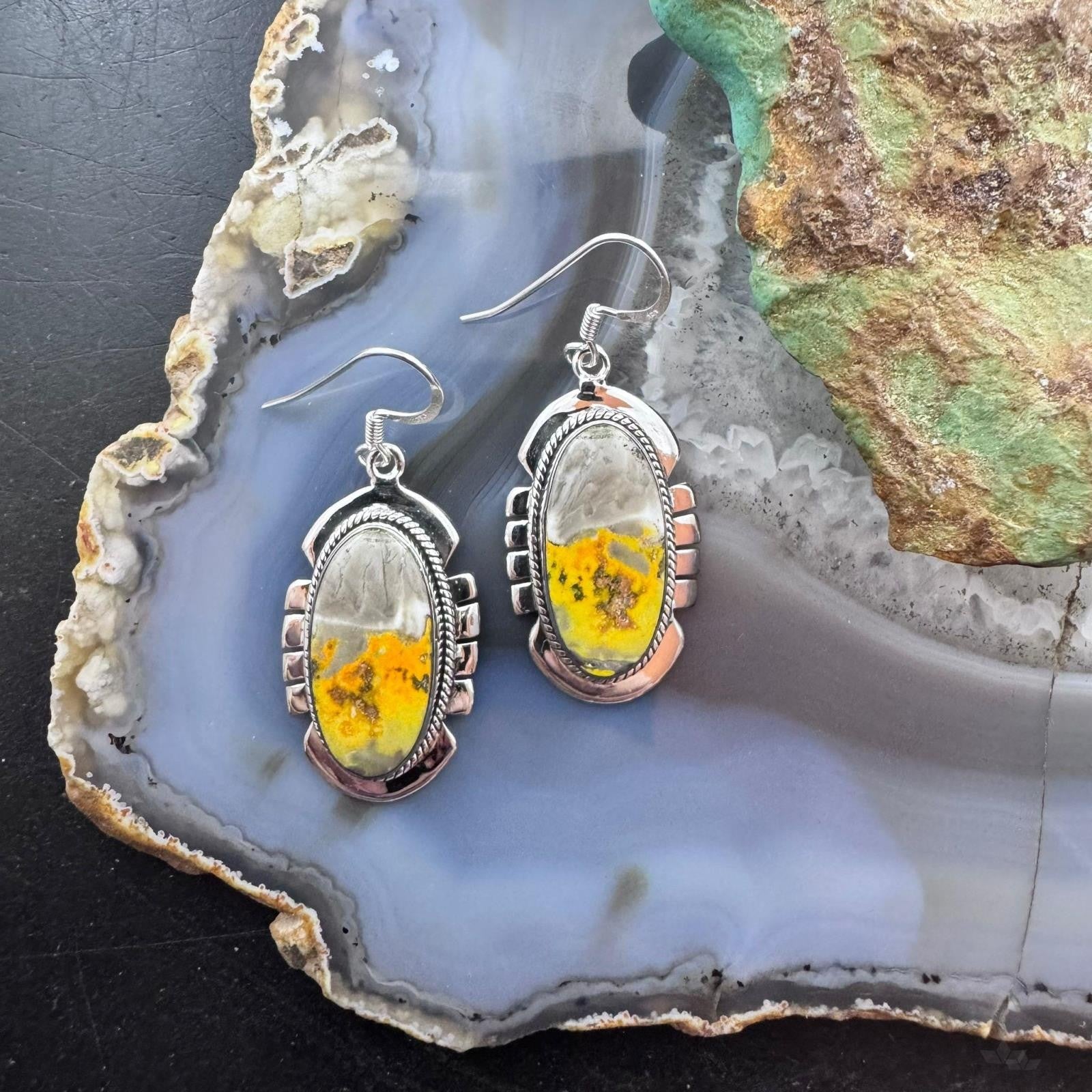 Sterling Silver Southwestern Style Oval Eclipse Jasper Decorated Dangle Earrings For Women.