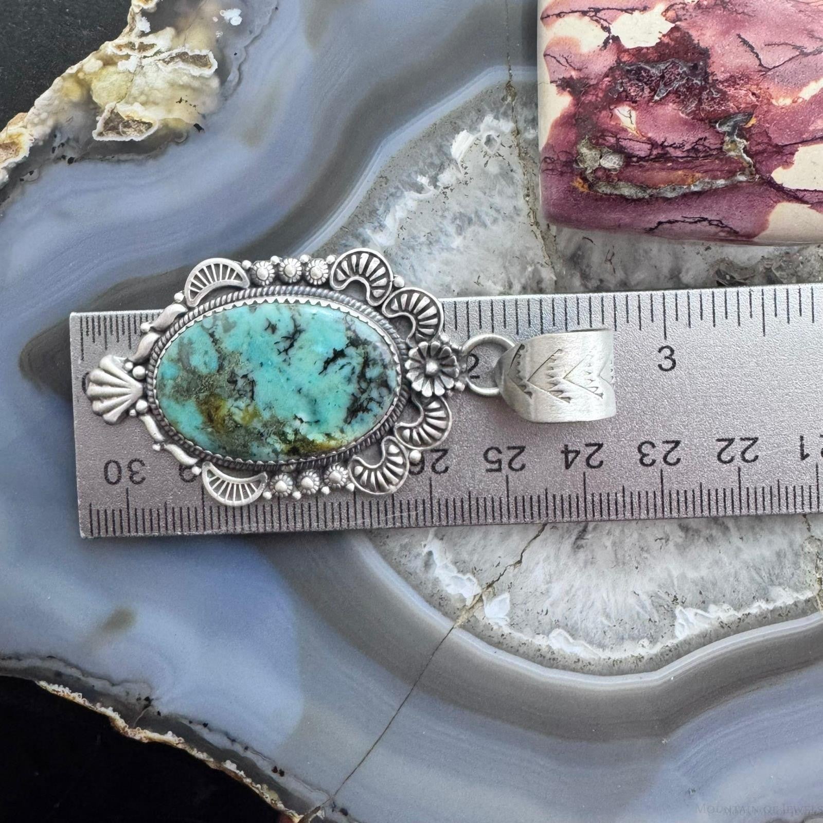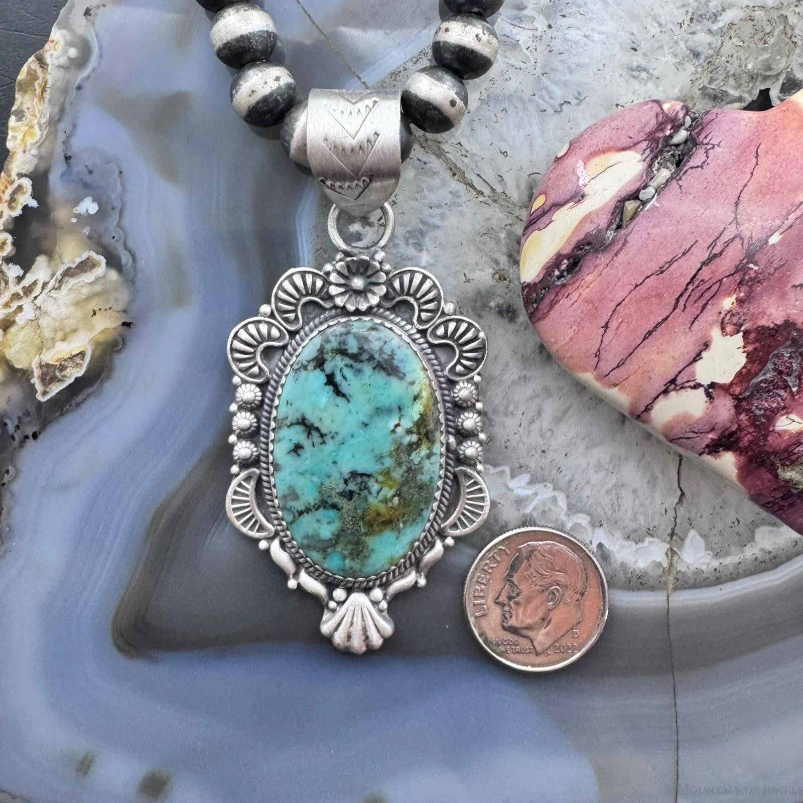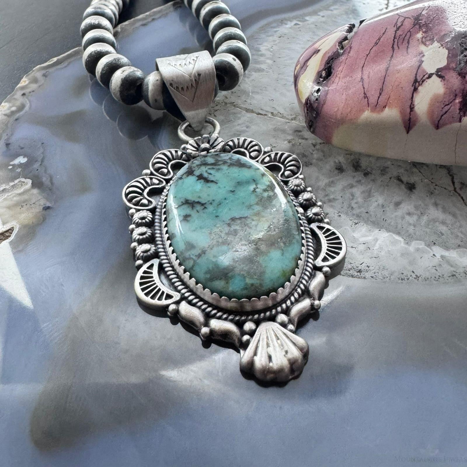 Sterling Silver Southwestern Style Oval Emerald Decorated Pendant For Women