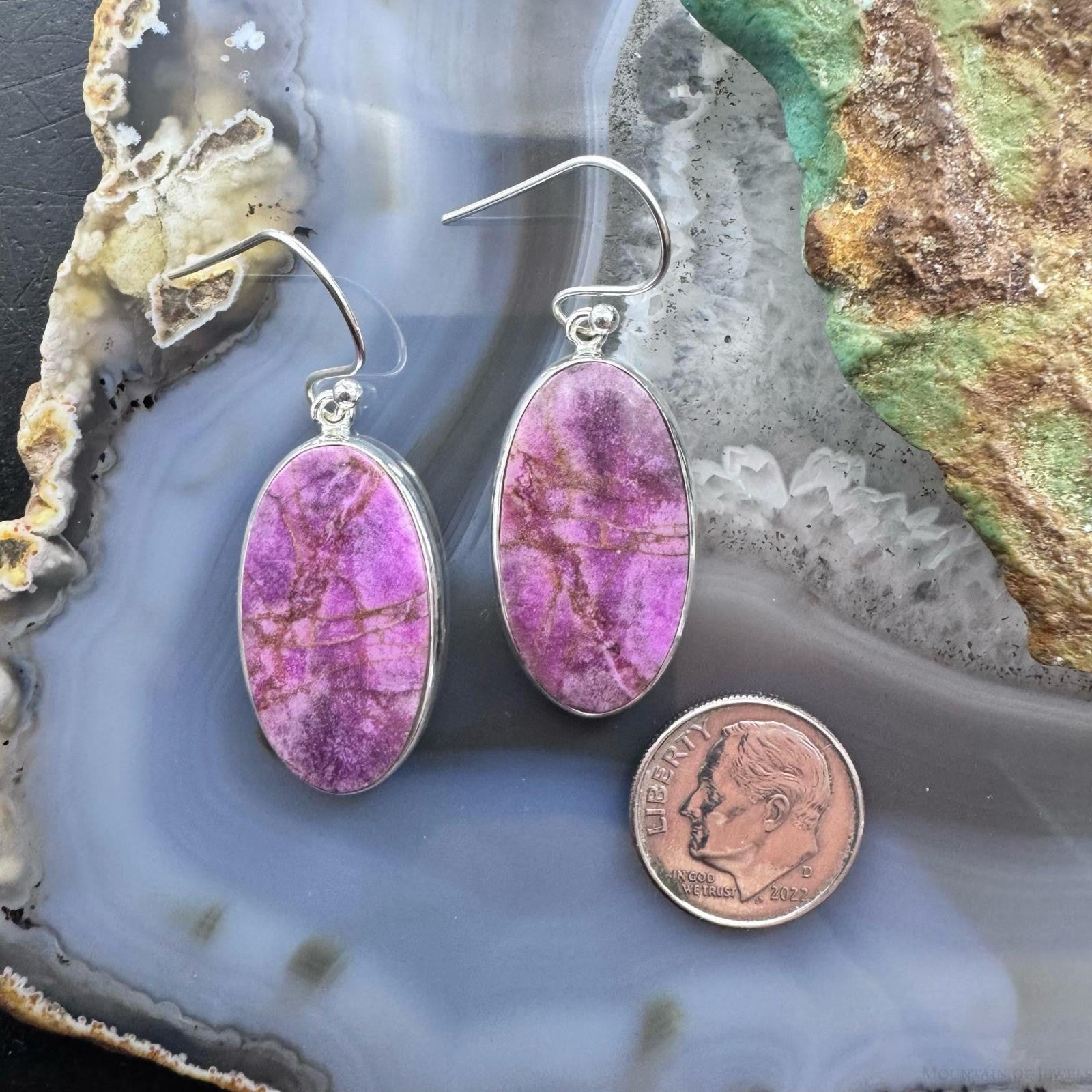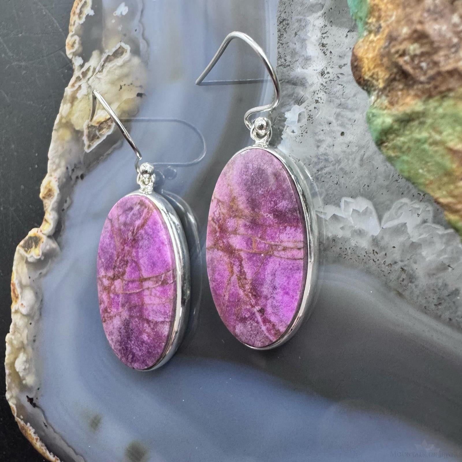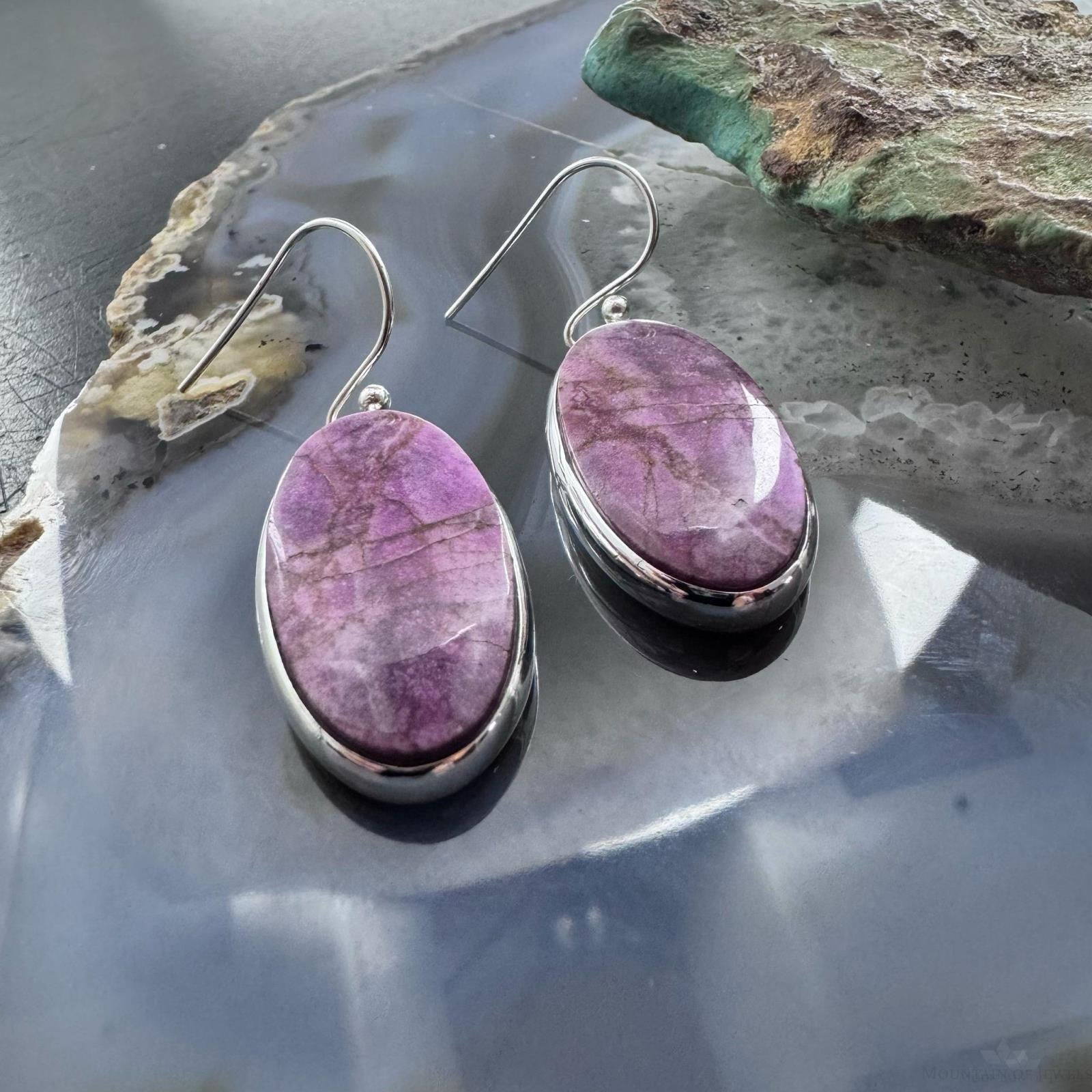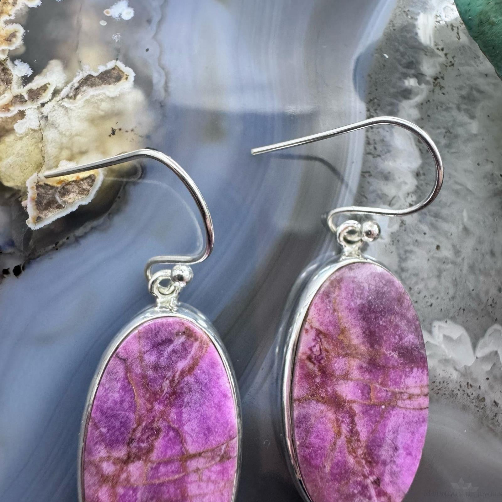 Sterling Silver Southwestern Style Oval Purple Dangle Earrings For Women