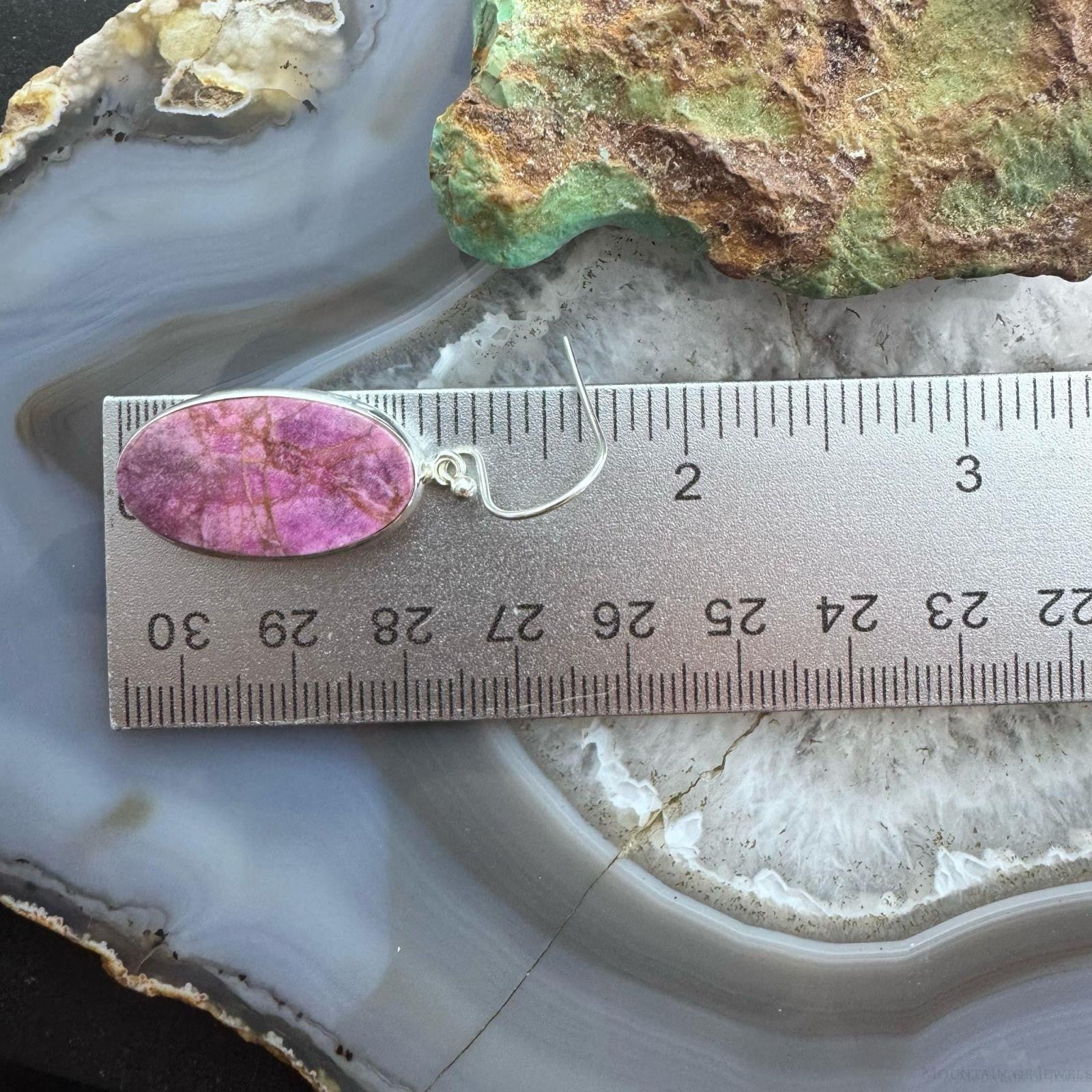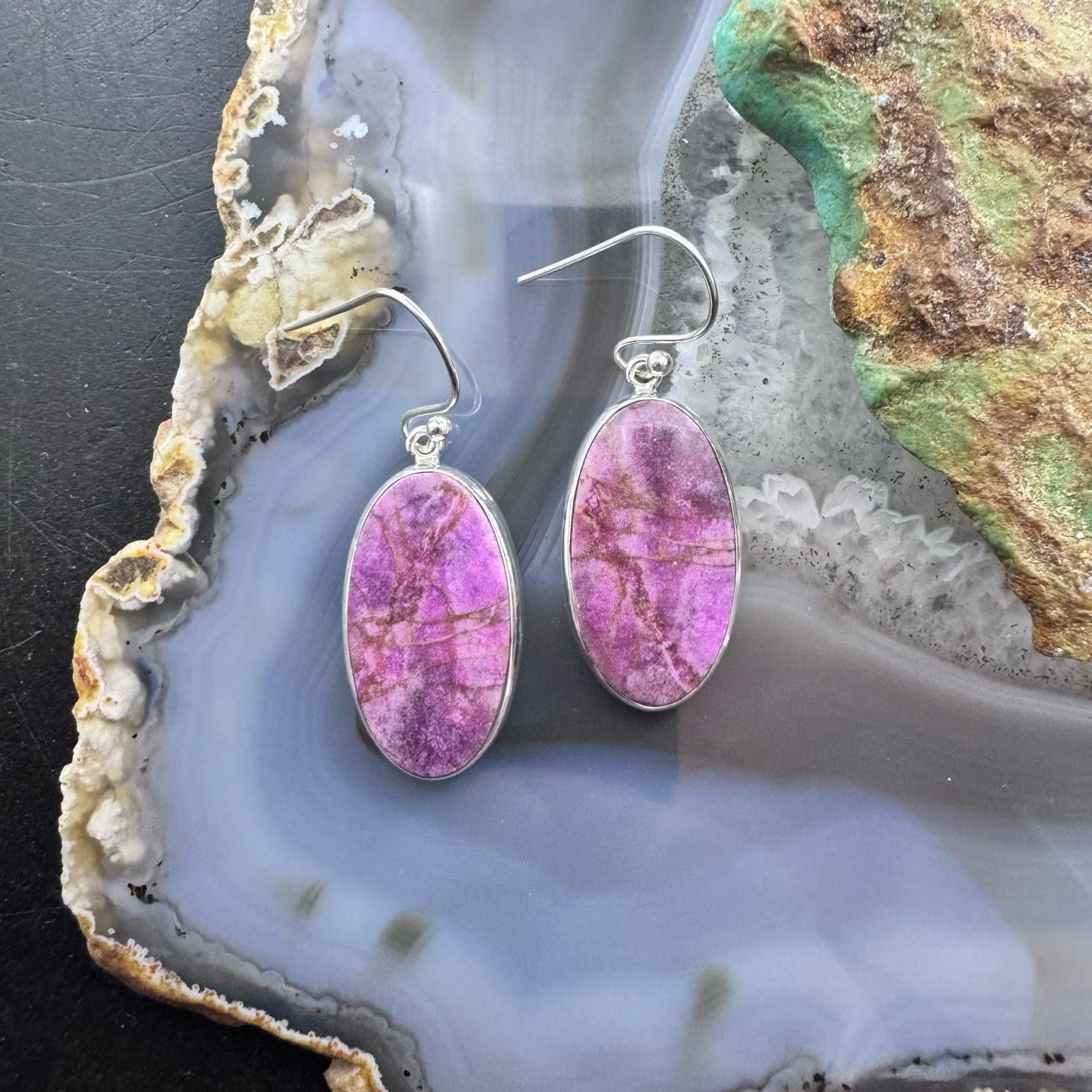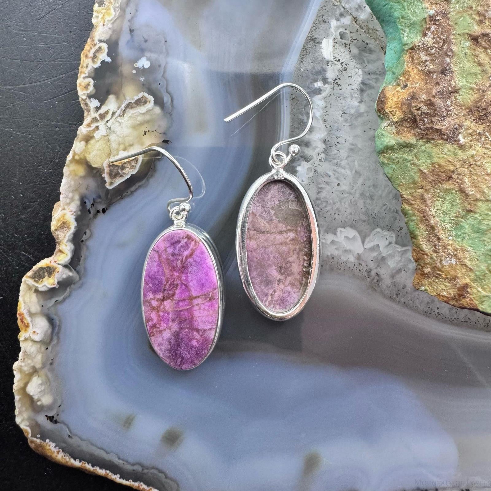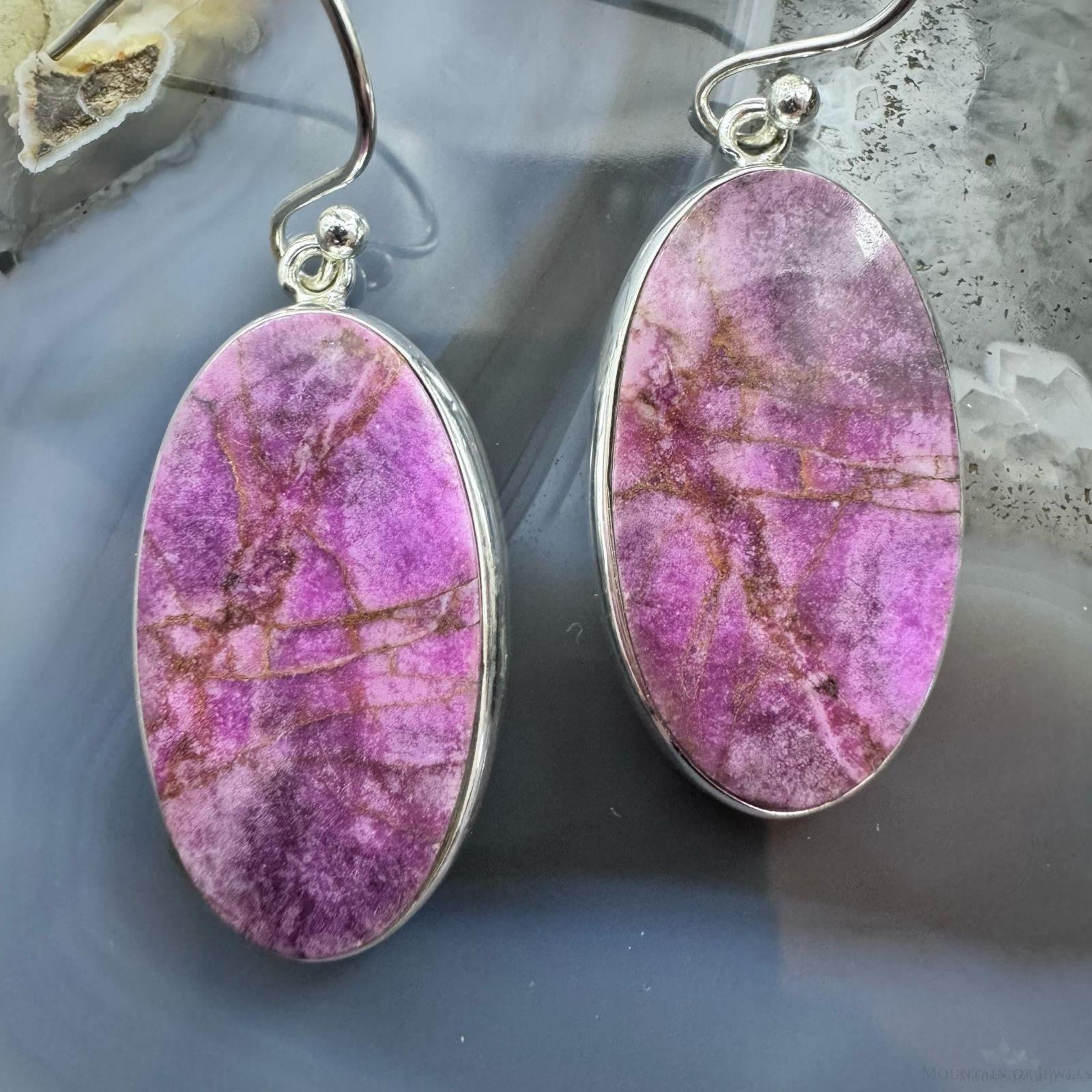 Sterling Silver Southwestern Style Oval Purple Dangle Earrings For Women
