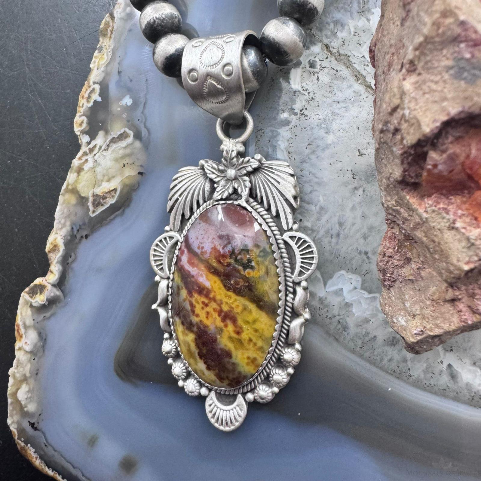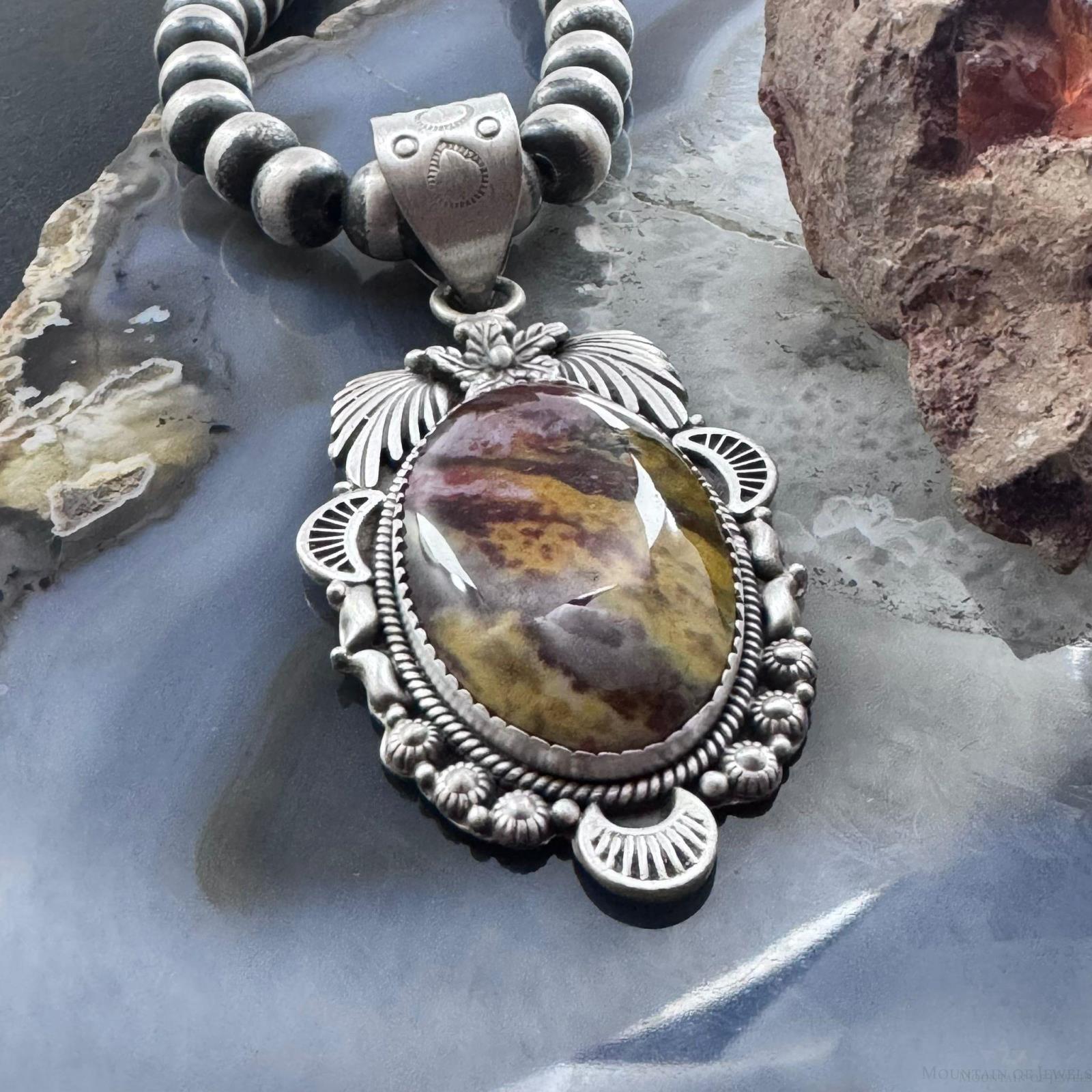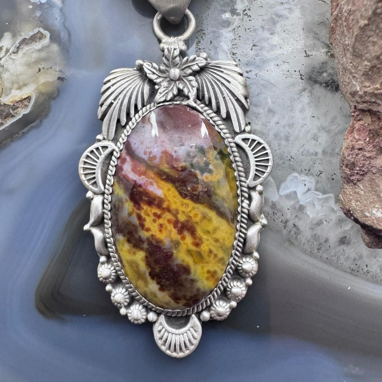 Sterling Silver Southwestern Style Oval River Jasper Decorated Pendant For Women