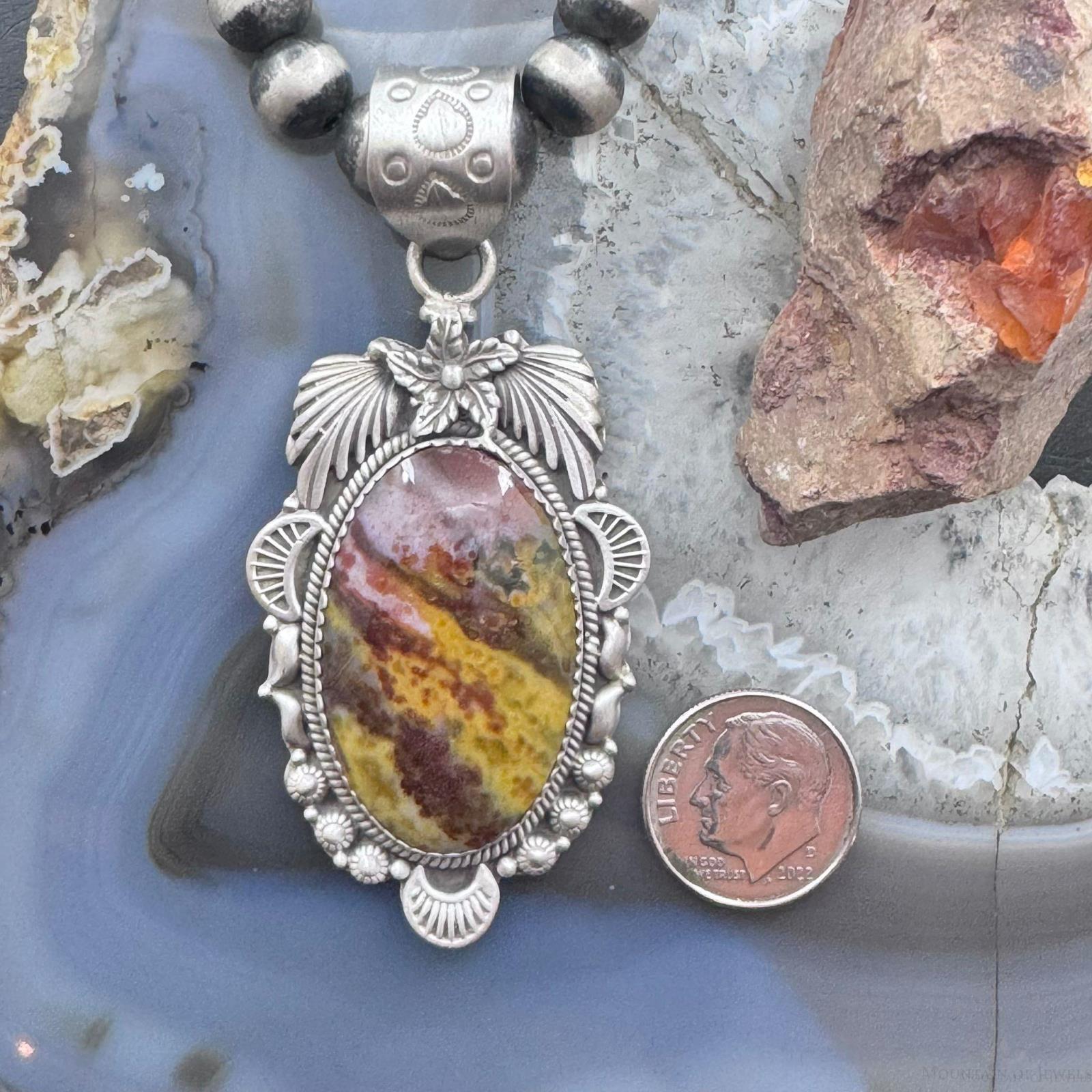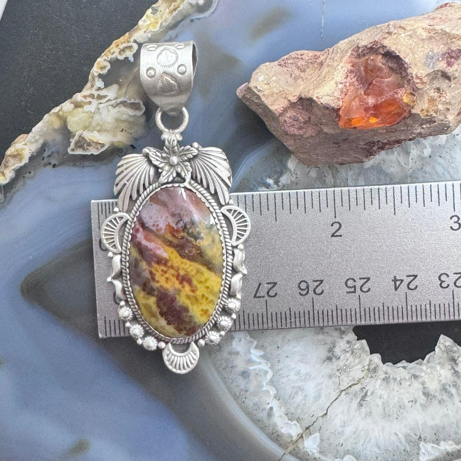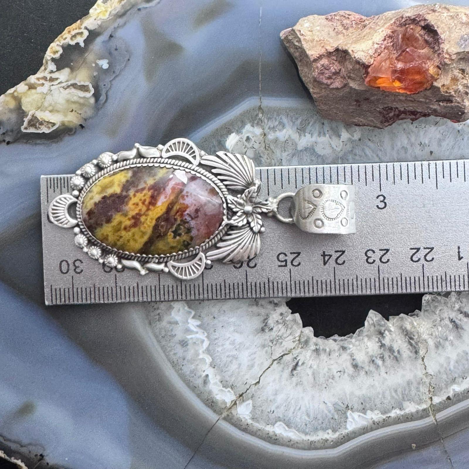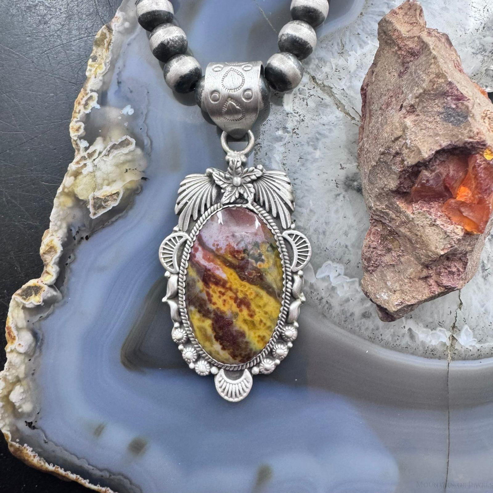 Sterling Silver Southwestern Style Oval River Jasper Decorated Pendant For Women
