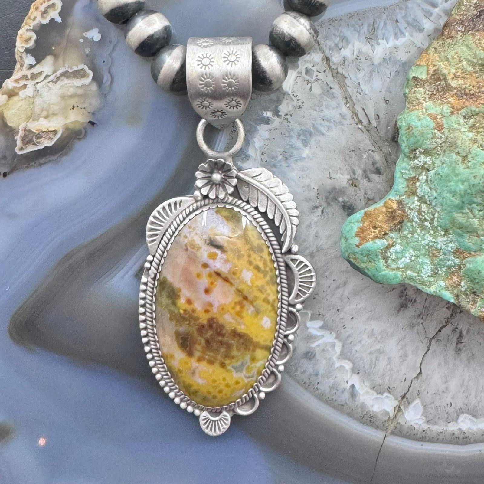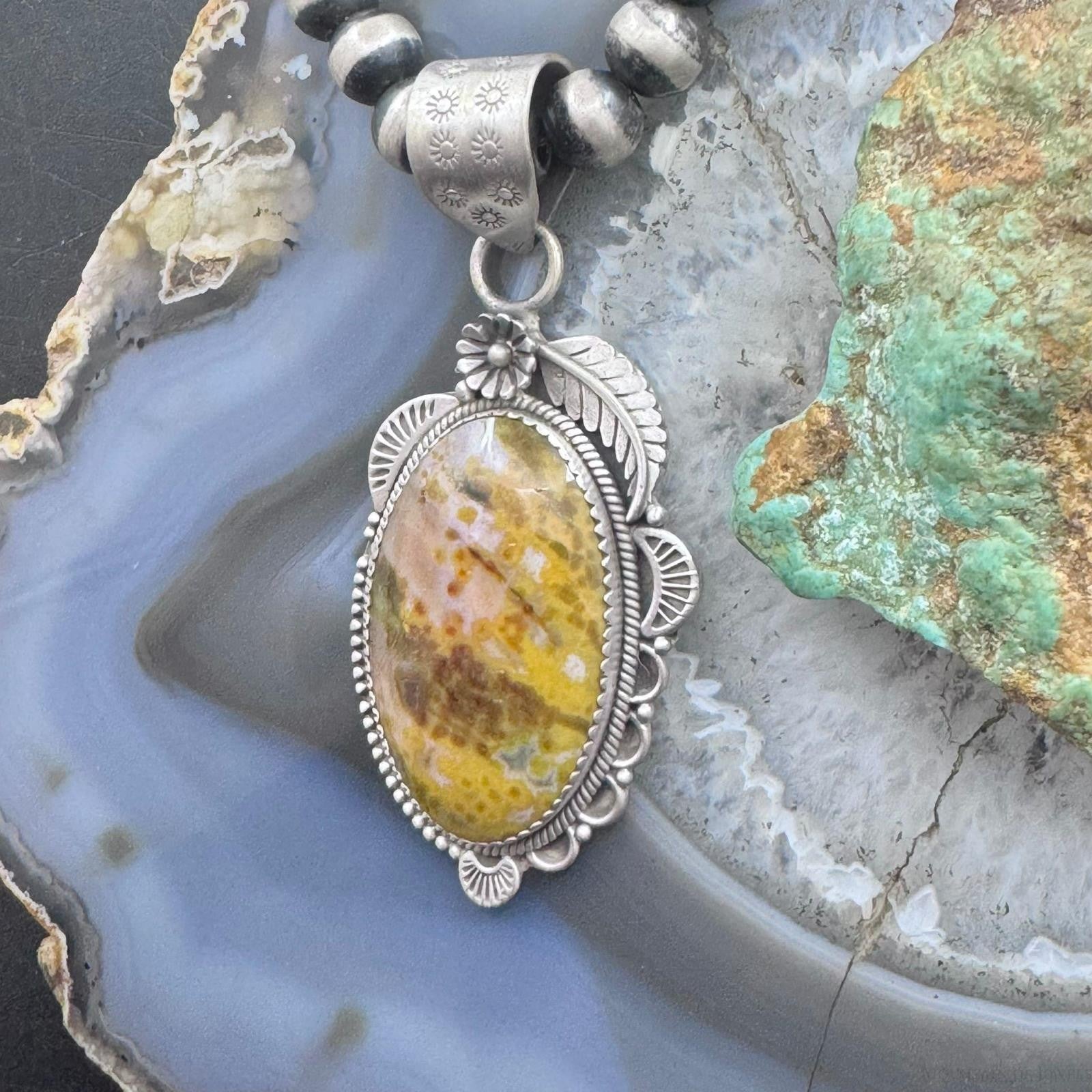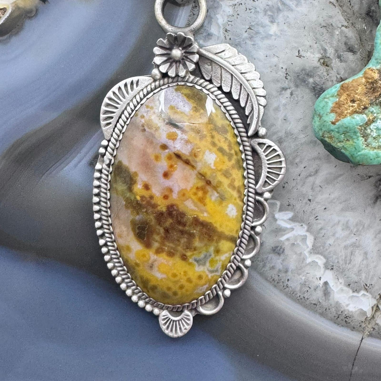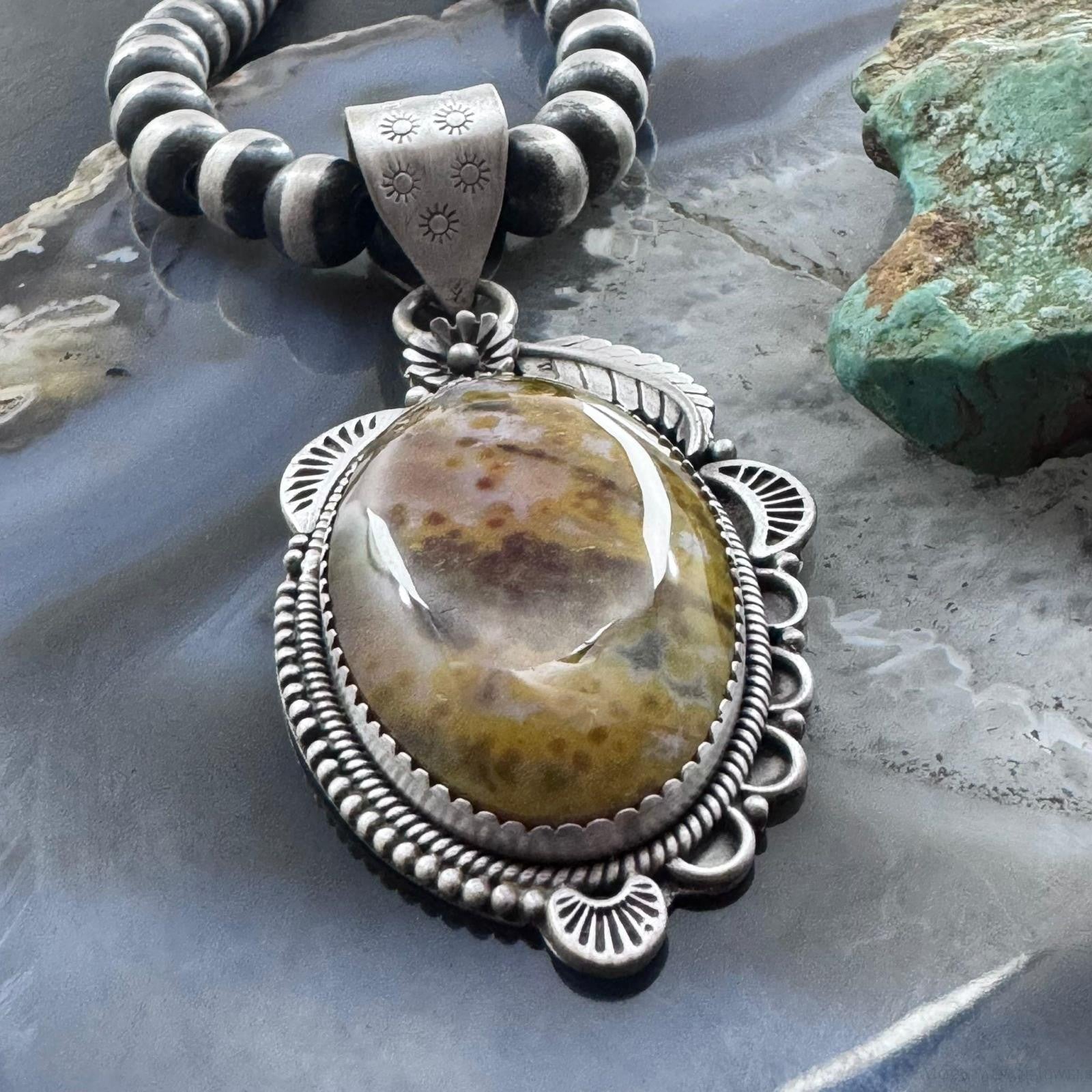 Sterling Silver Southwestern Style Oval River Jasper Decorated Pendant For Women