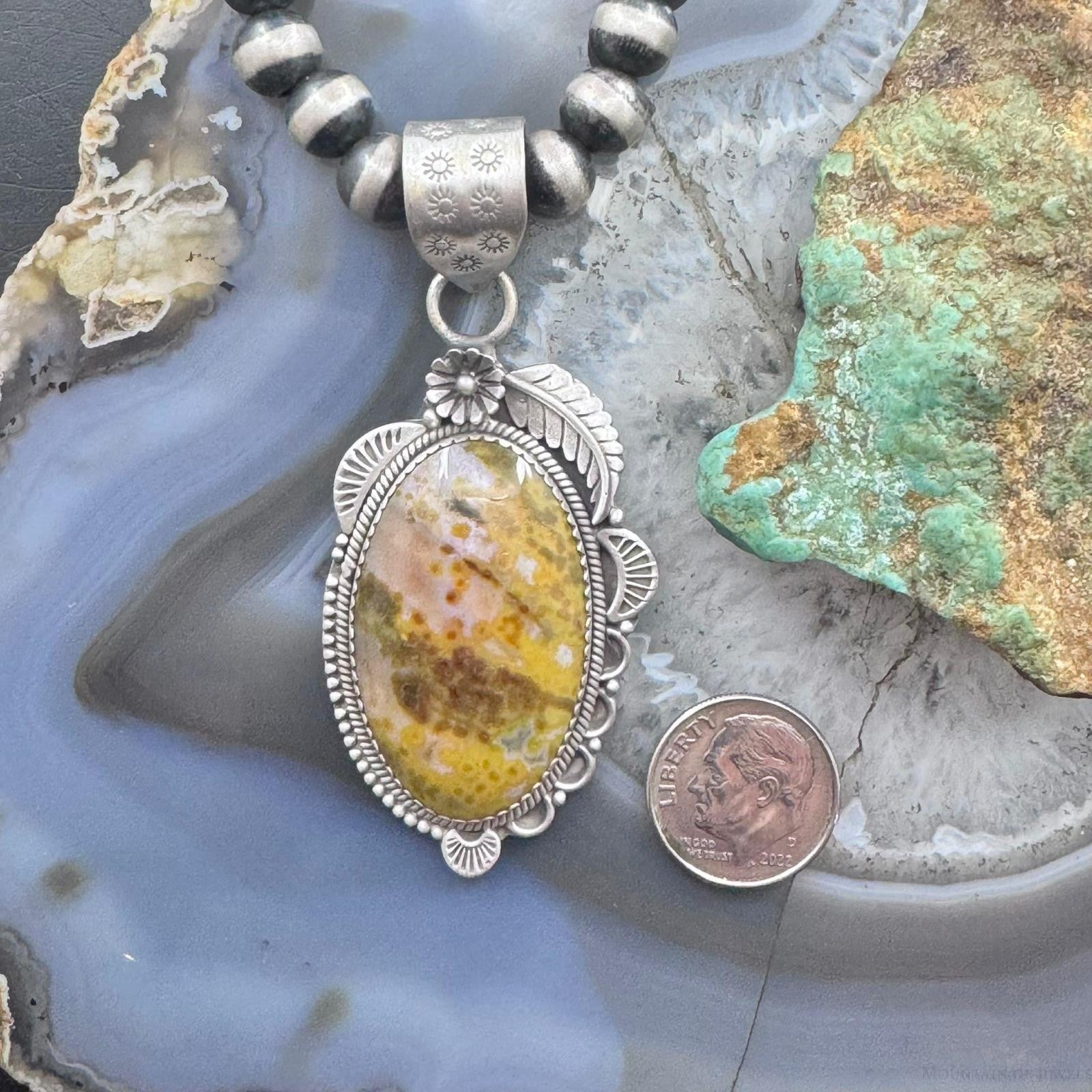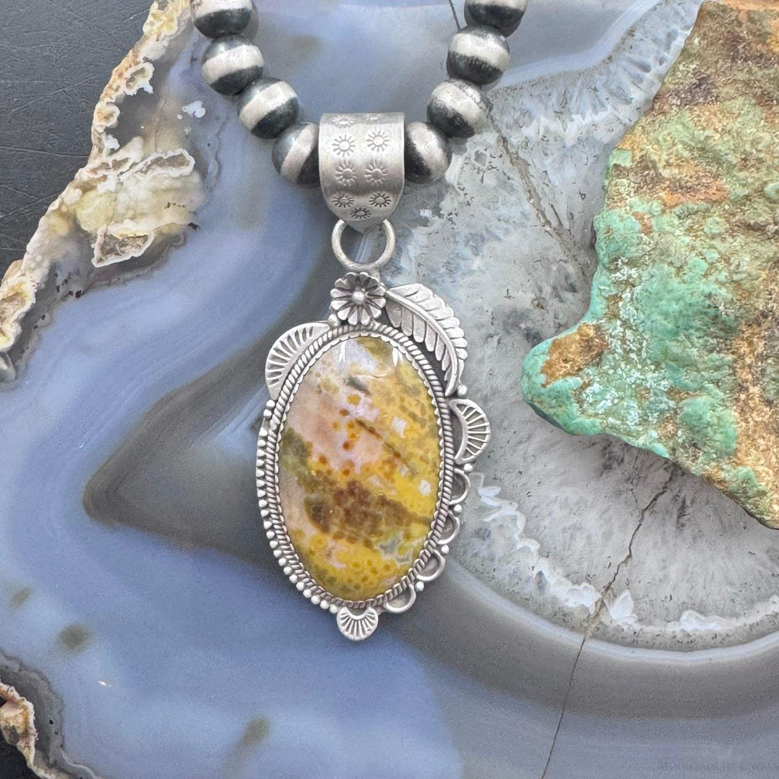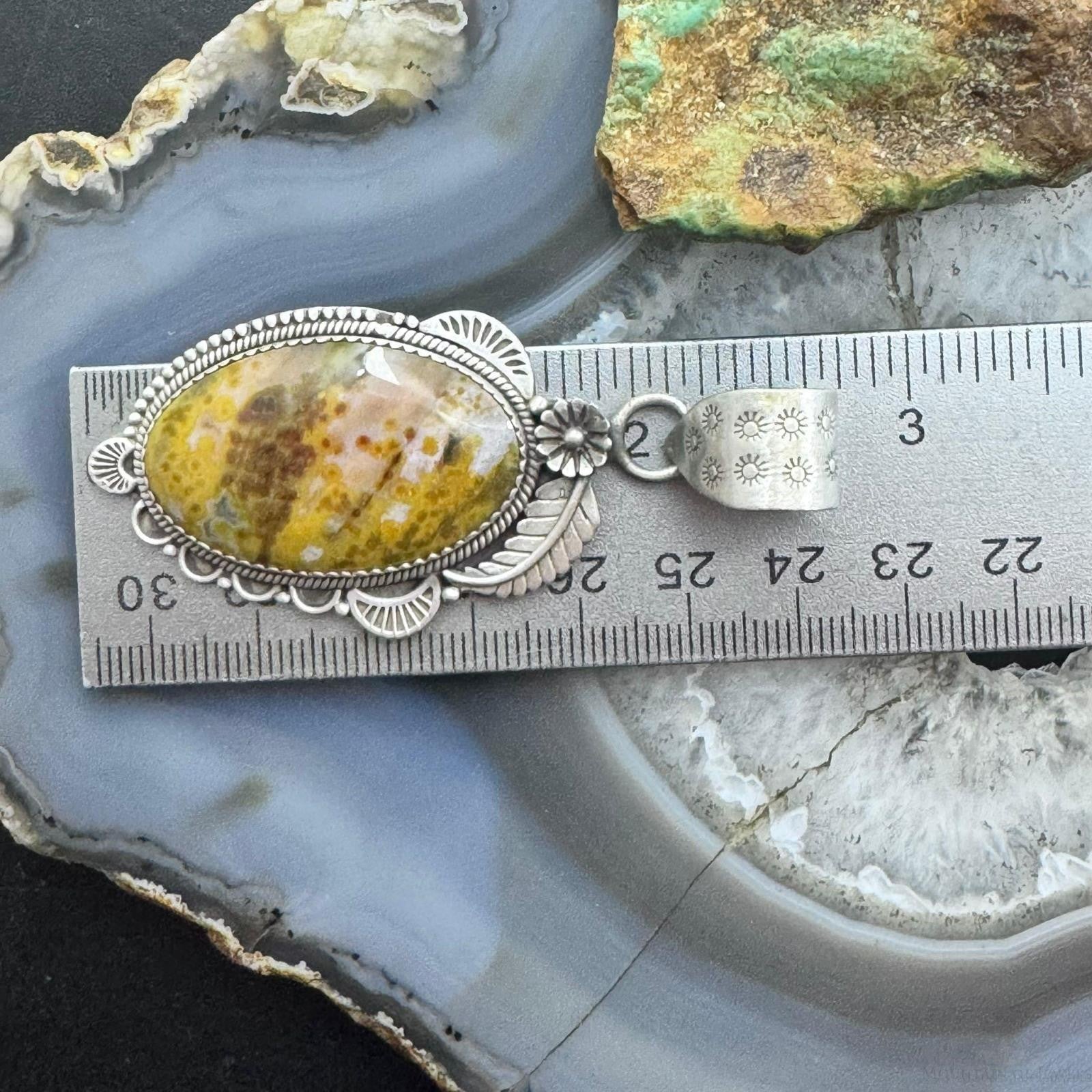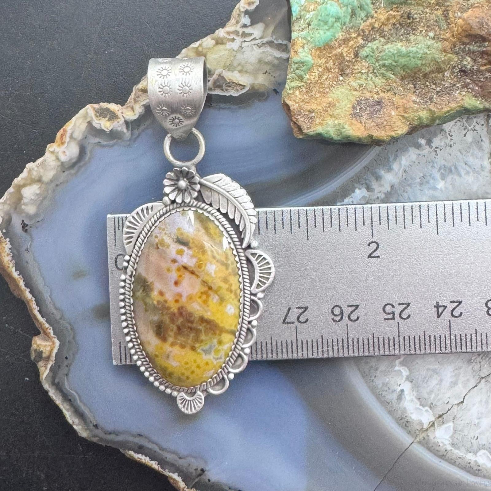 Sterling Silver Southwestern Style Oval River Jasper Decorated Pendant For Women
