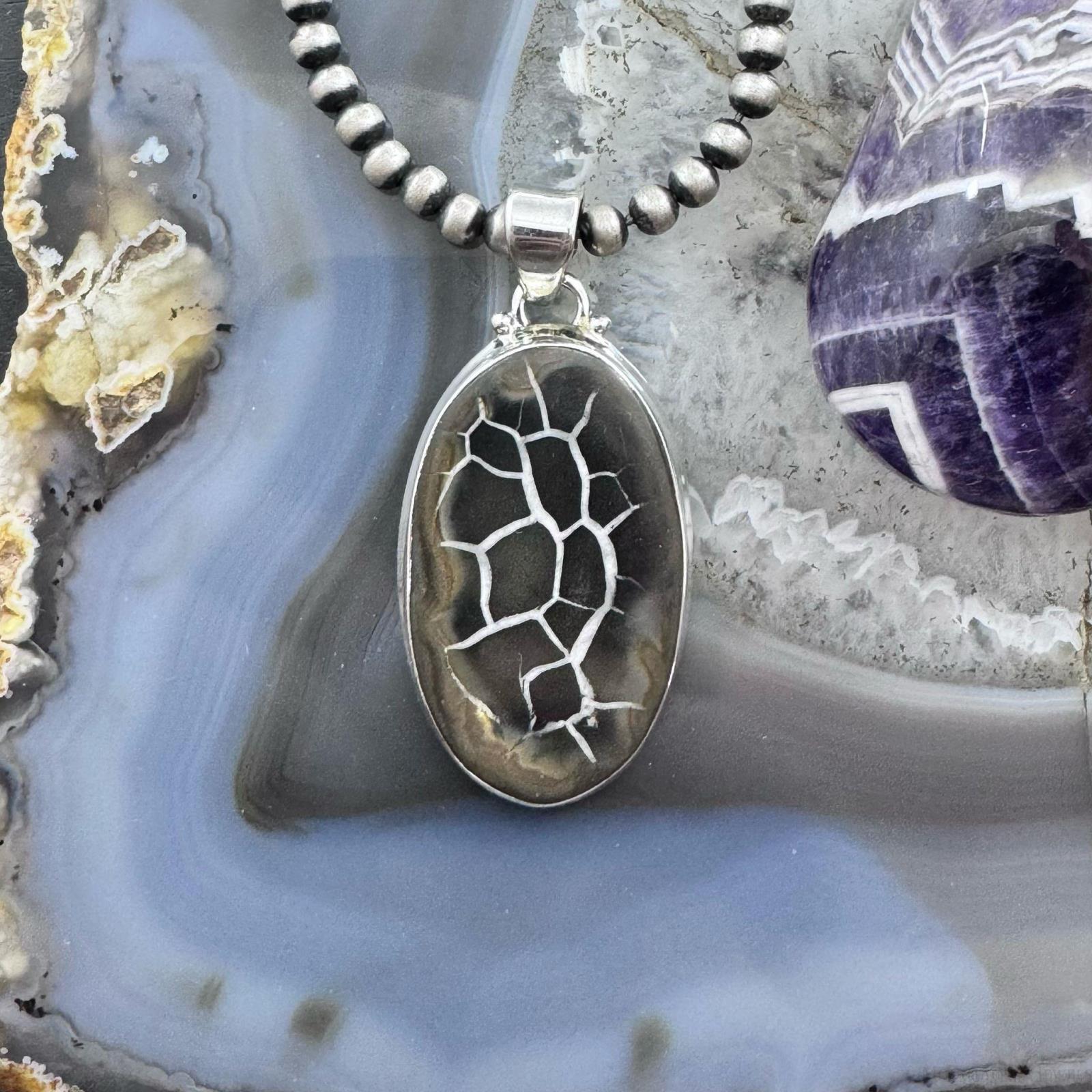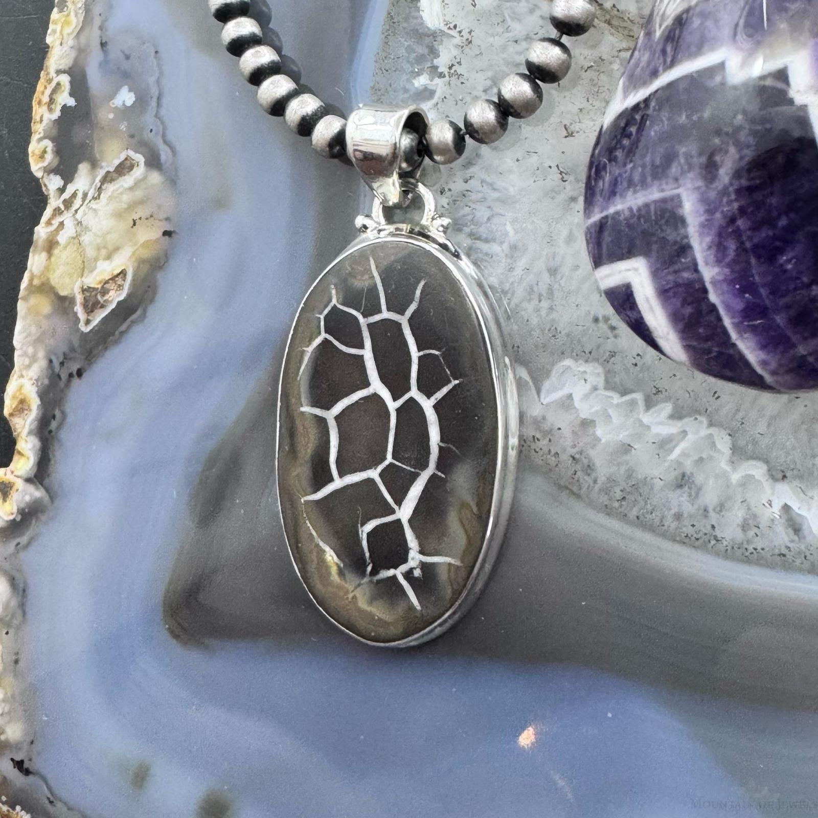 Sterling Silver Southwestern Style Oval Septarian Pendant For Women