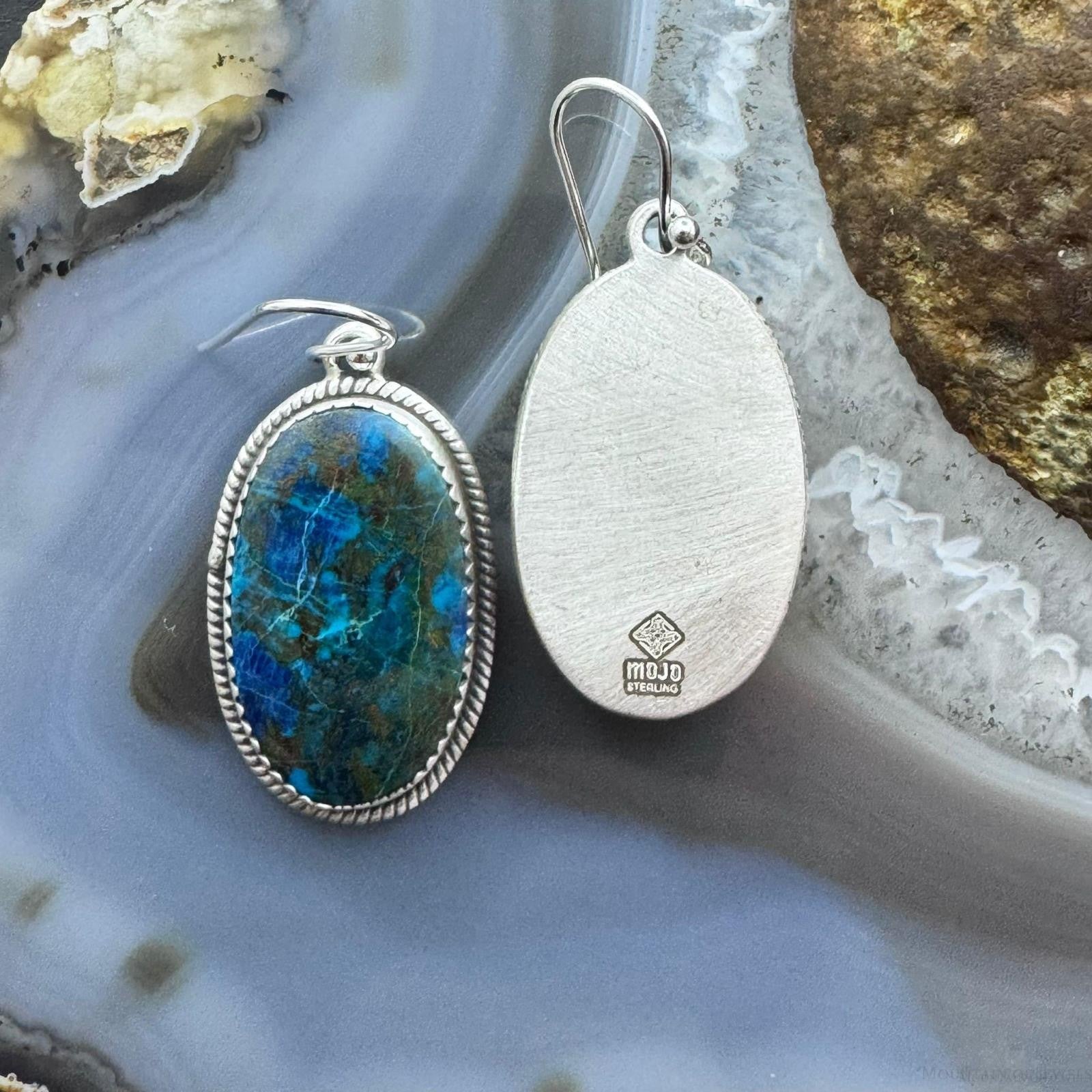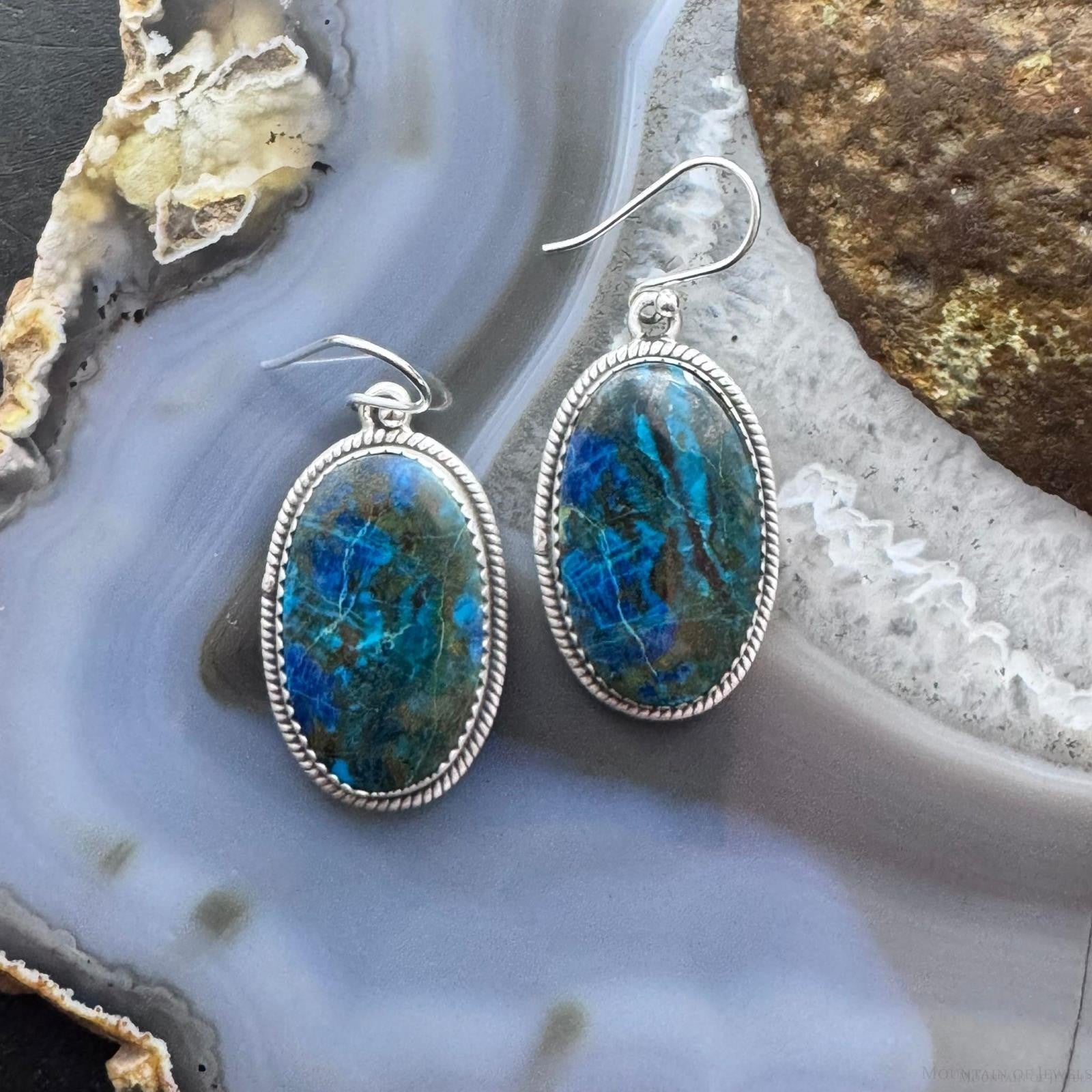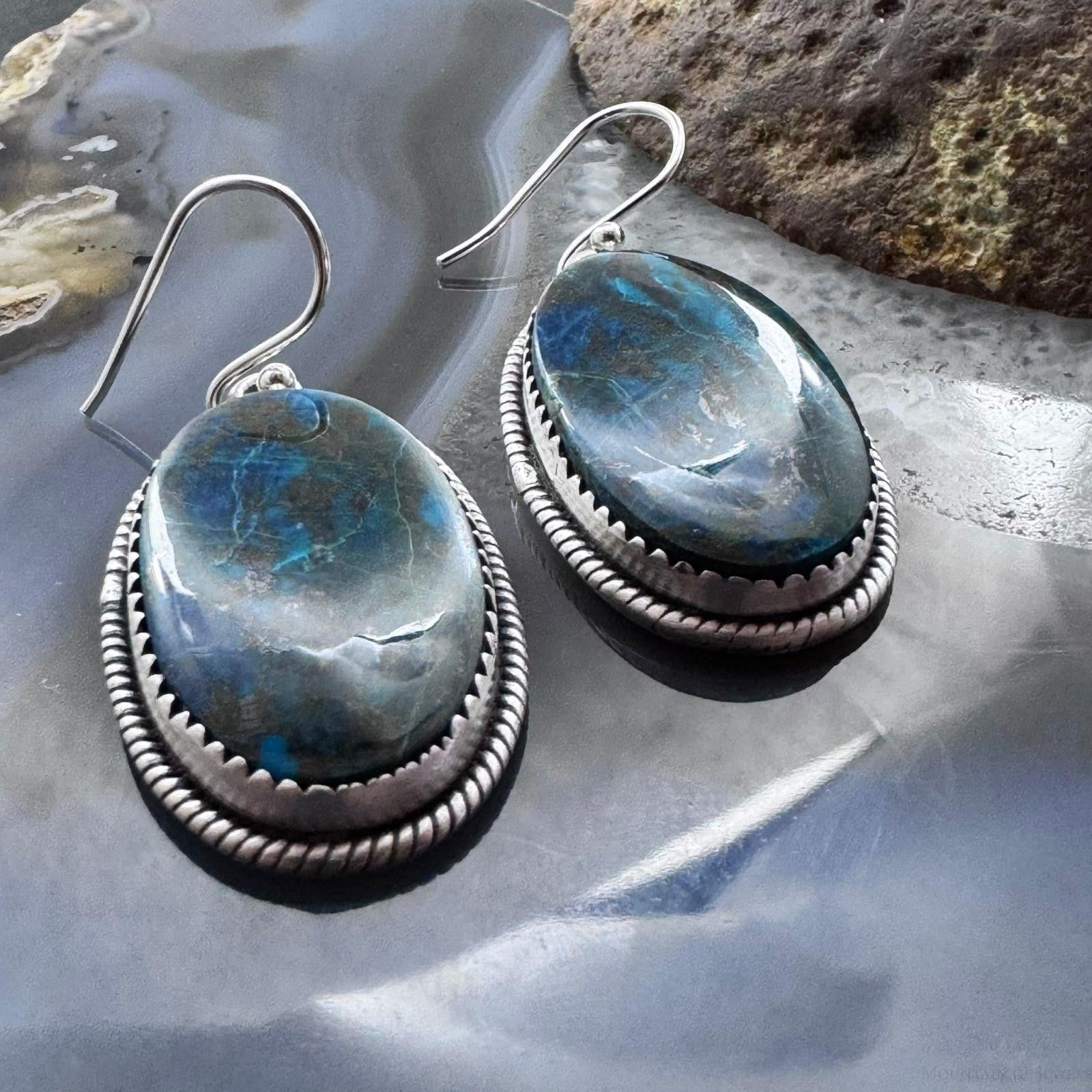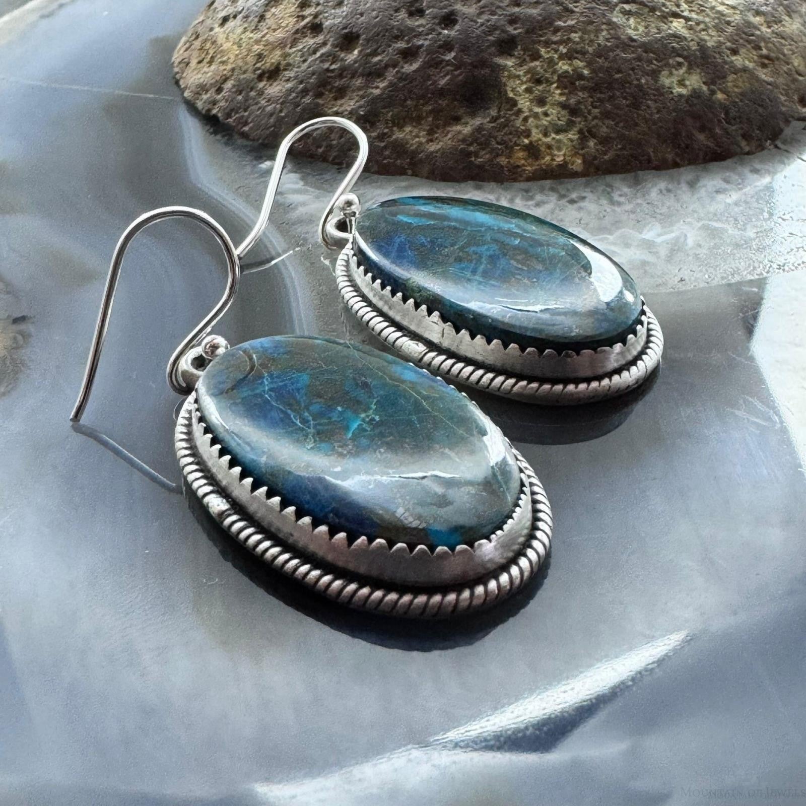 Sterling Silver Southwestern Style Oval Shattuckite Dangle Earrings For Women #3