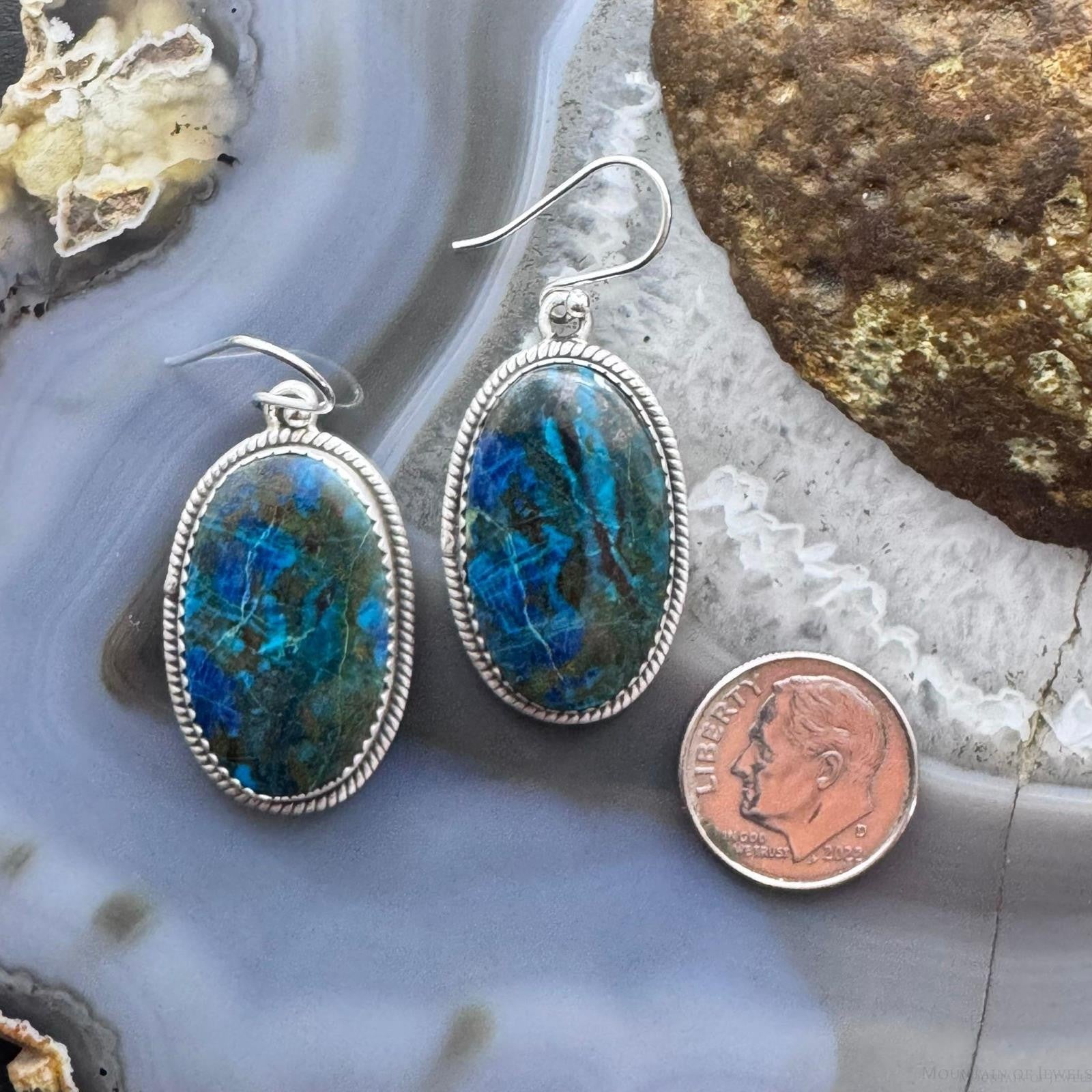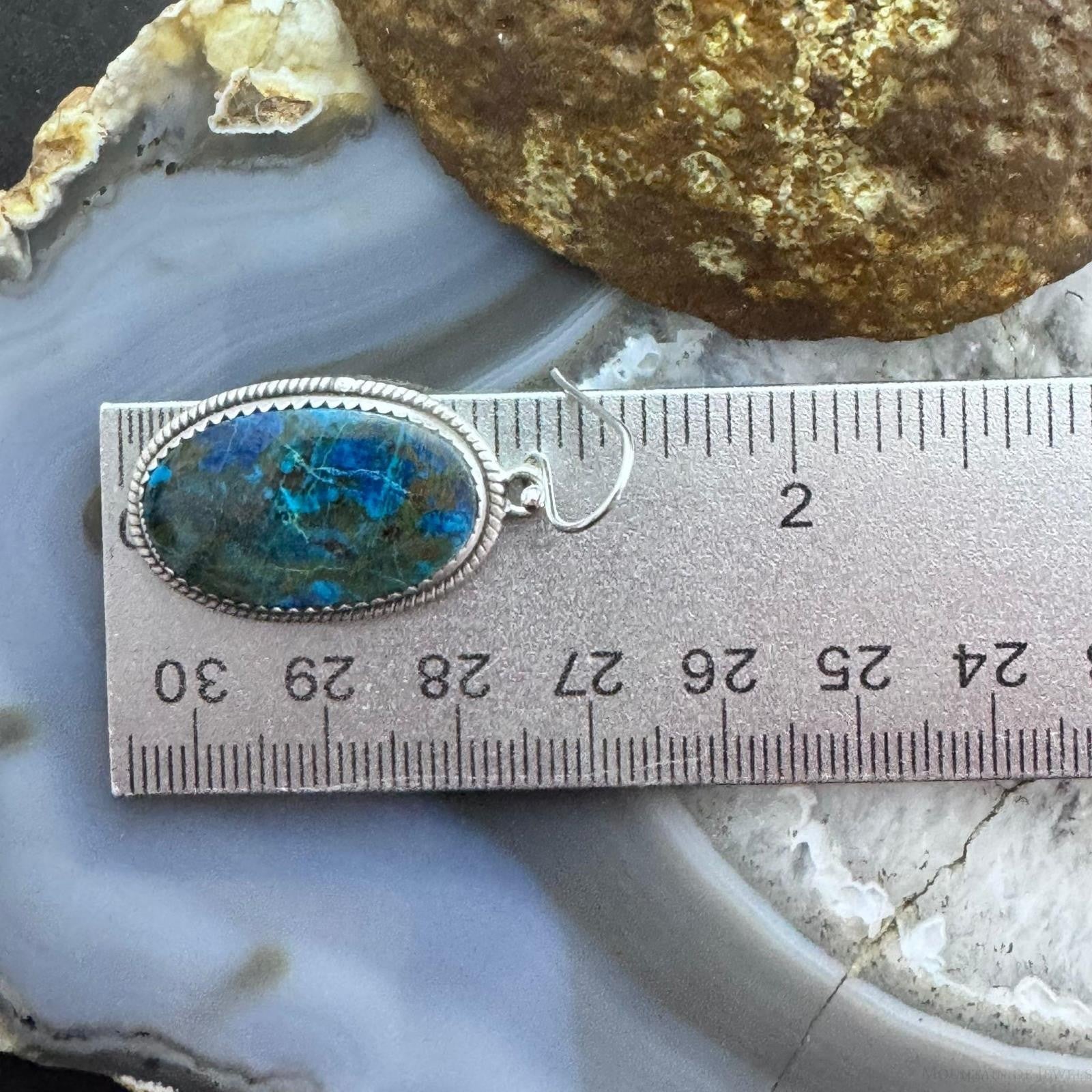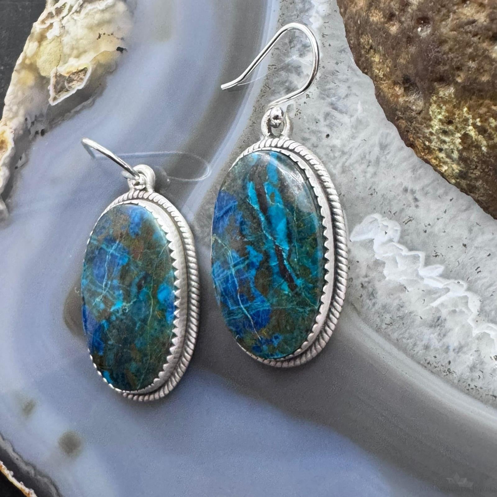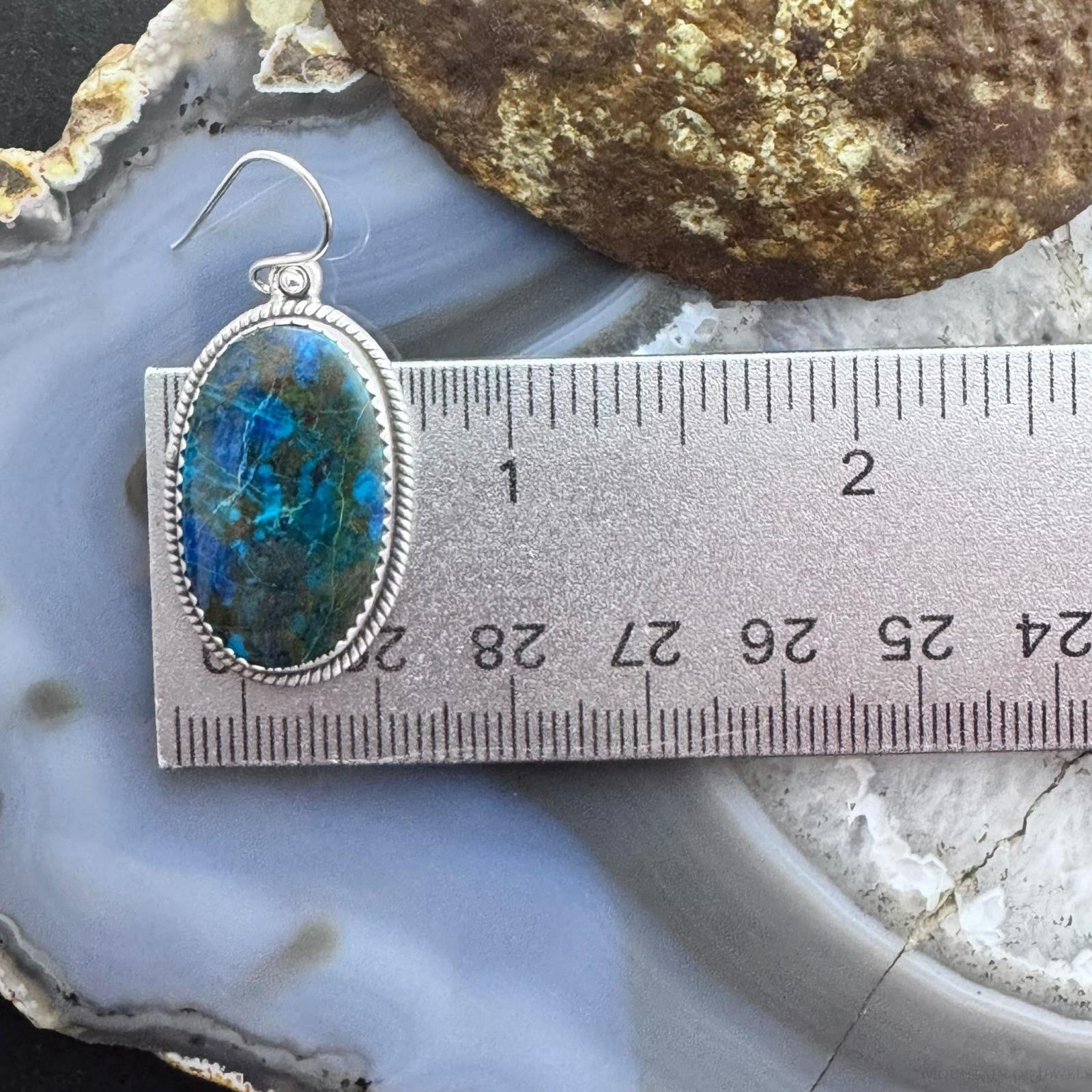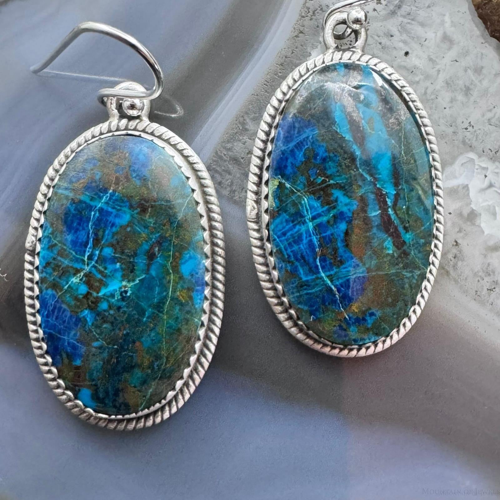 Sterling Silver Southwestern Style Oval Shattuckite Dangle Earrings For Women #3