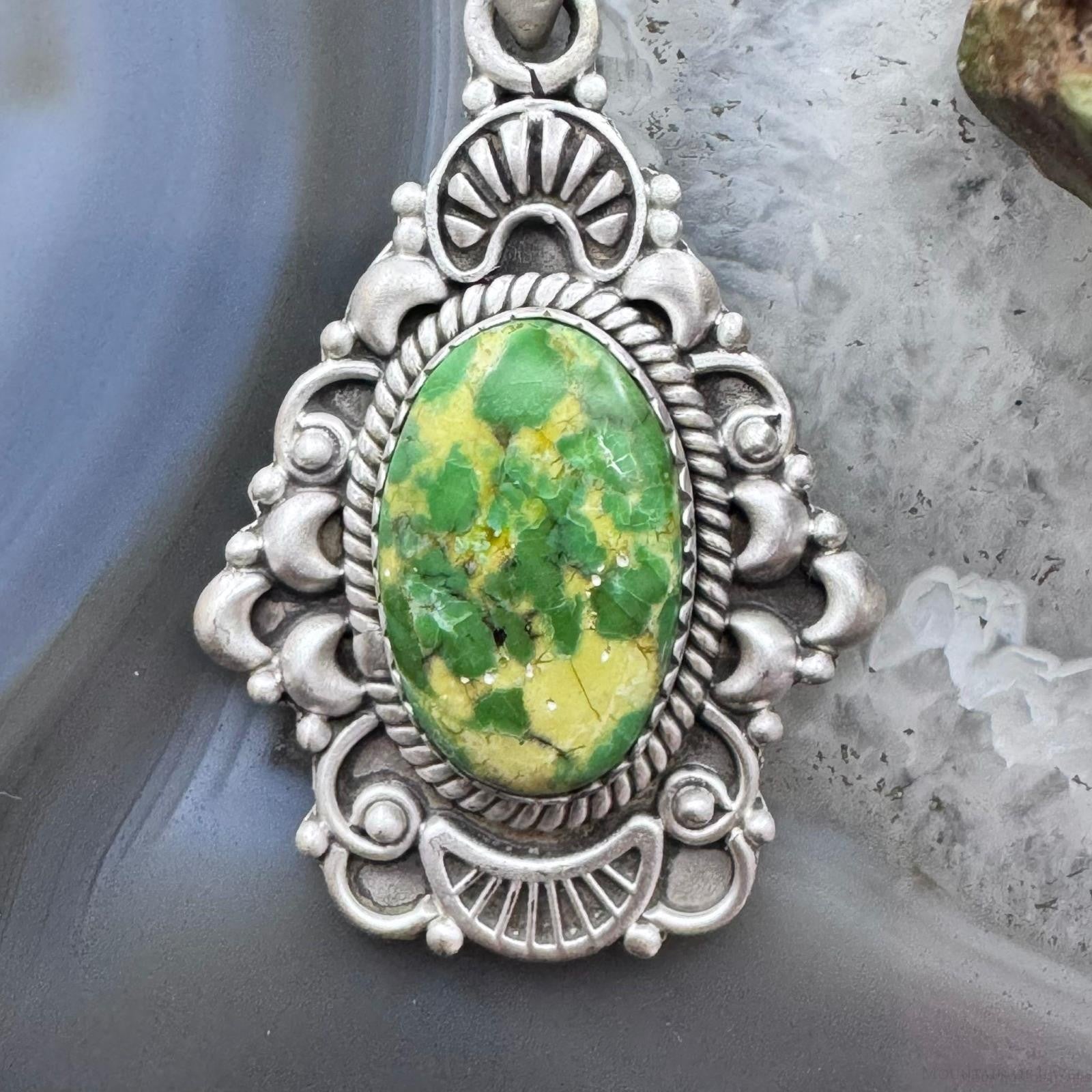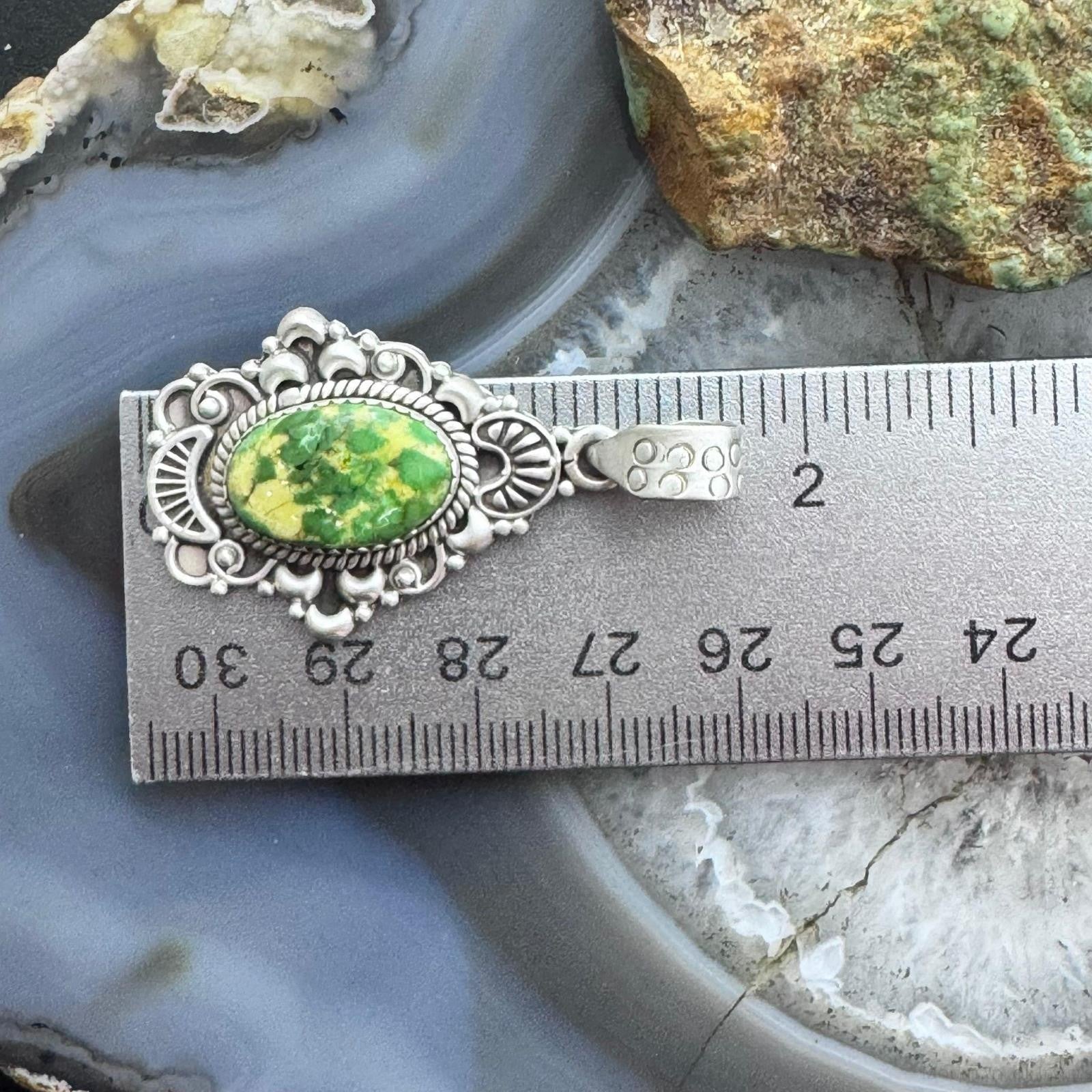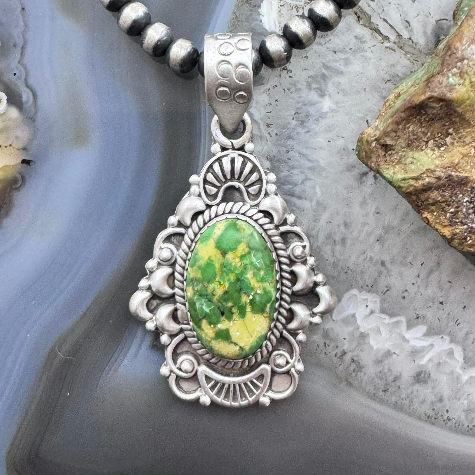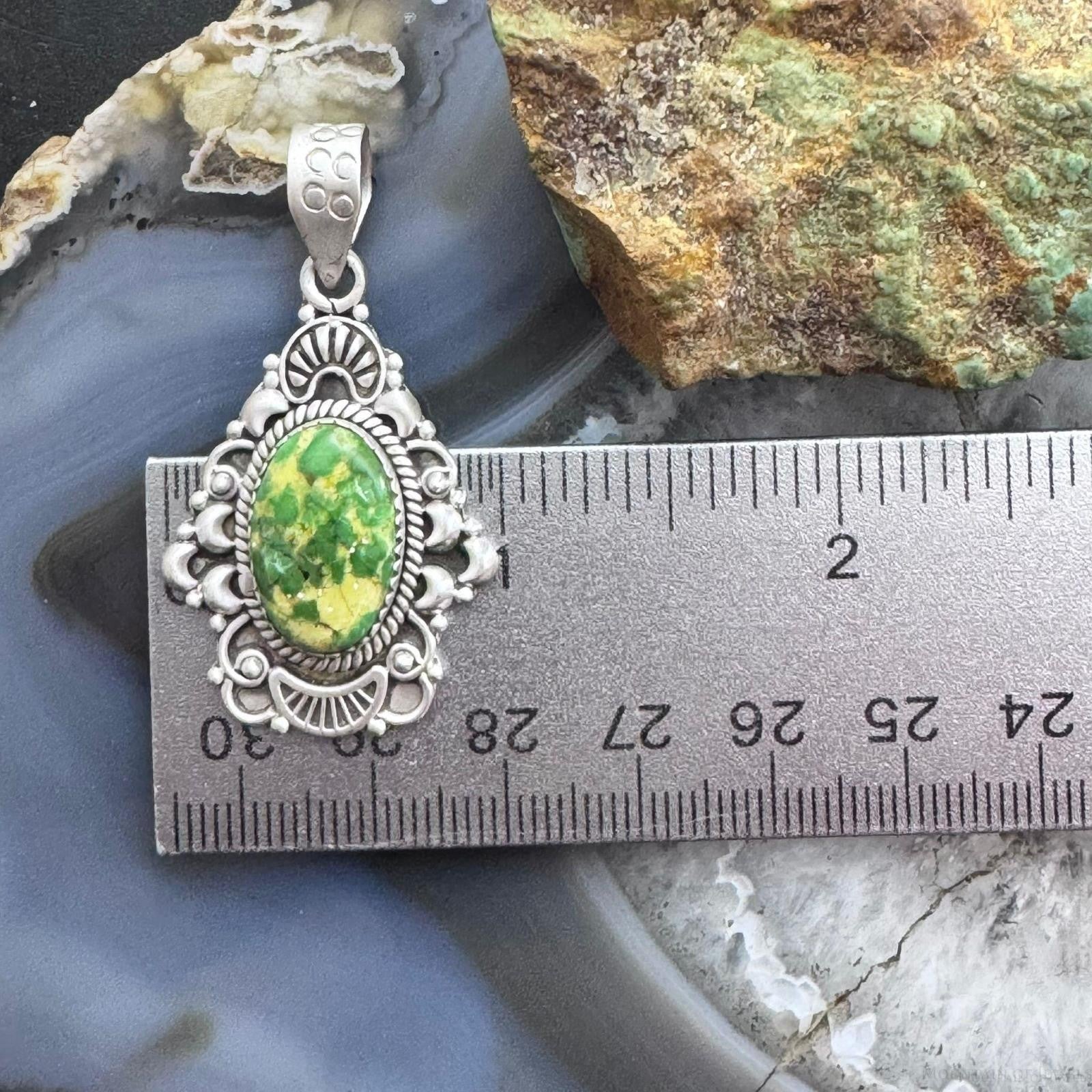 Sterling Silver Southwestern Style Oval Sonora Gold Turquoise Decorated Pendant For Women