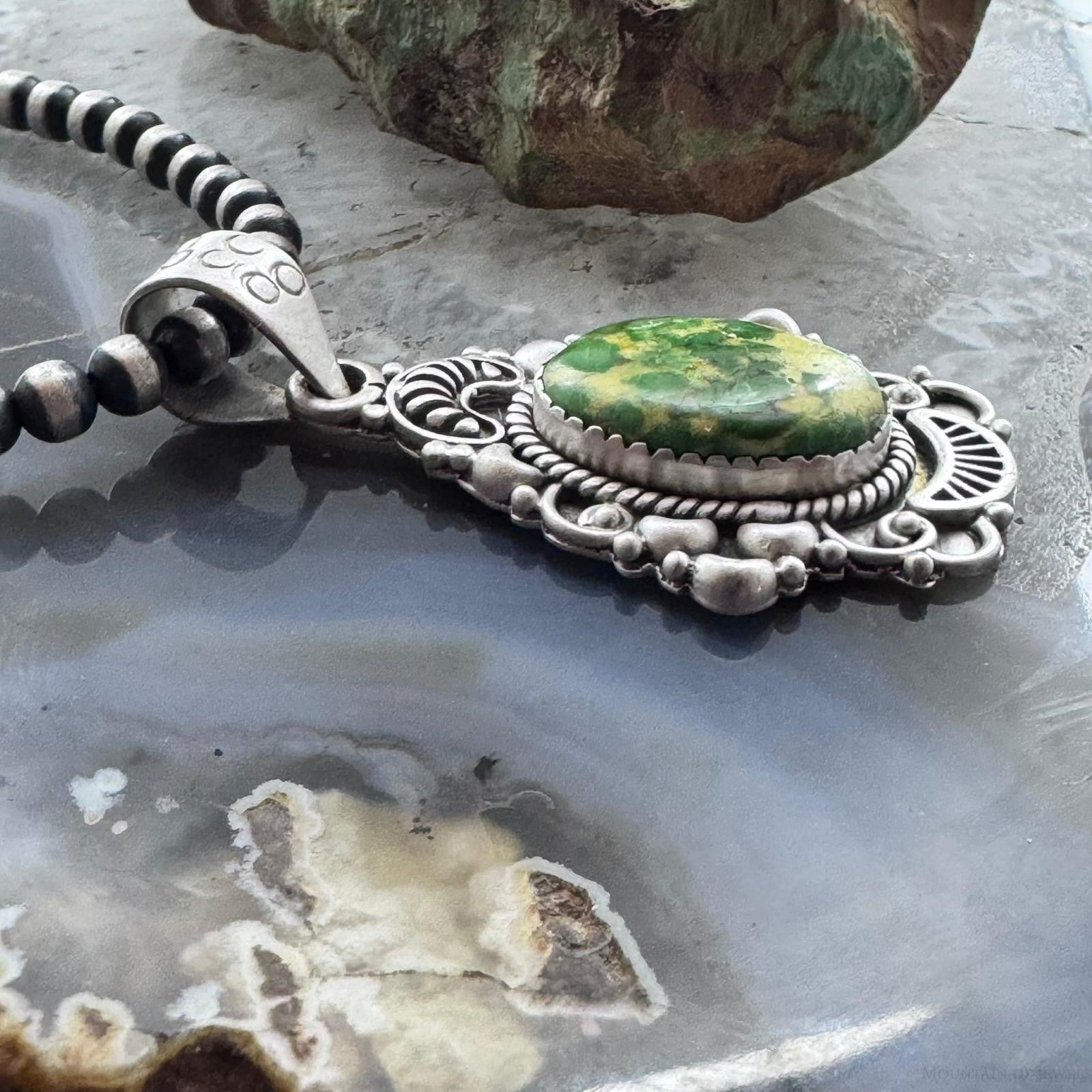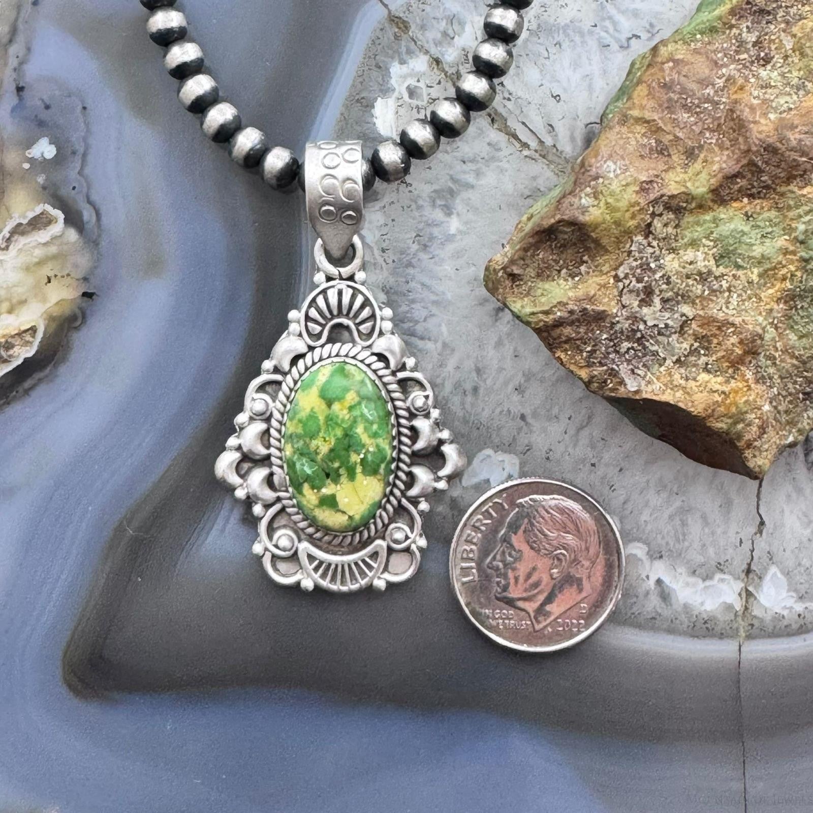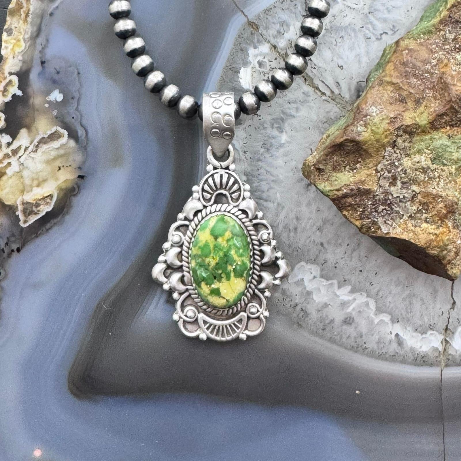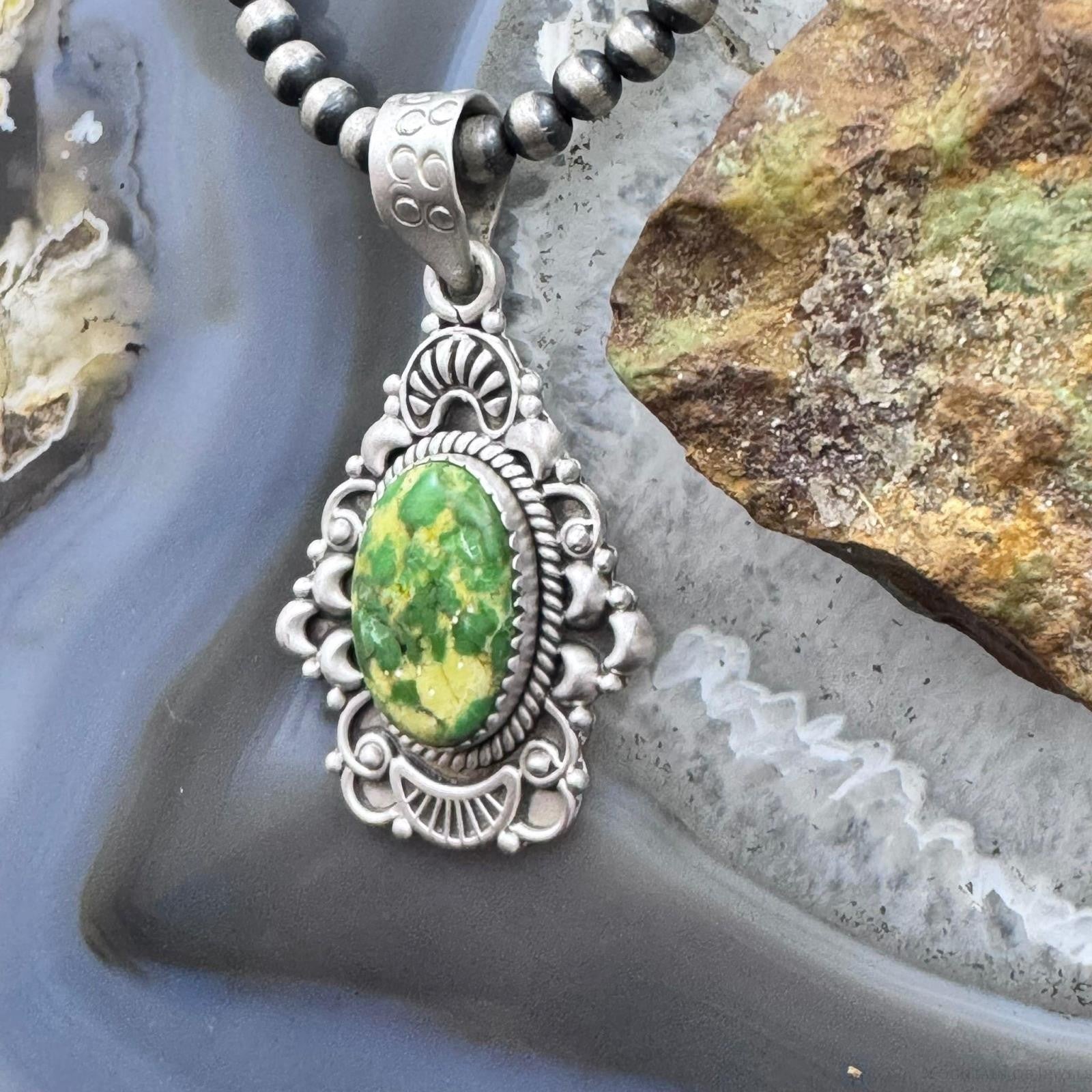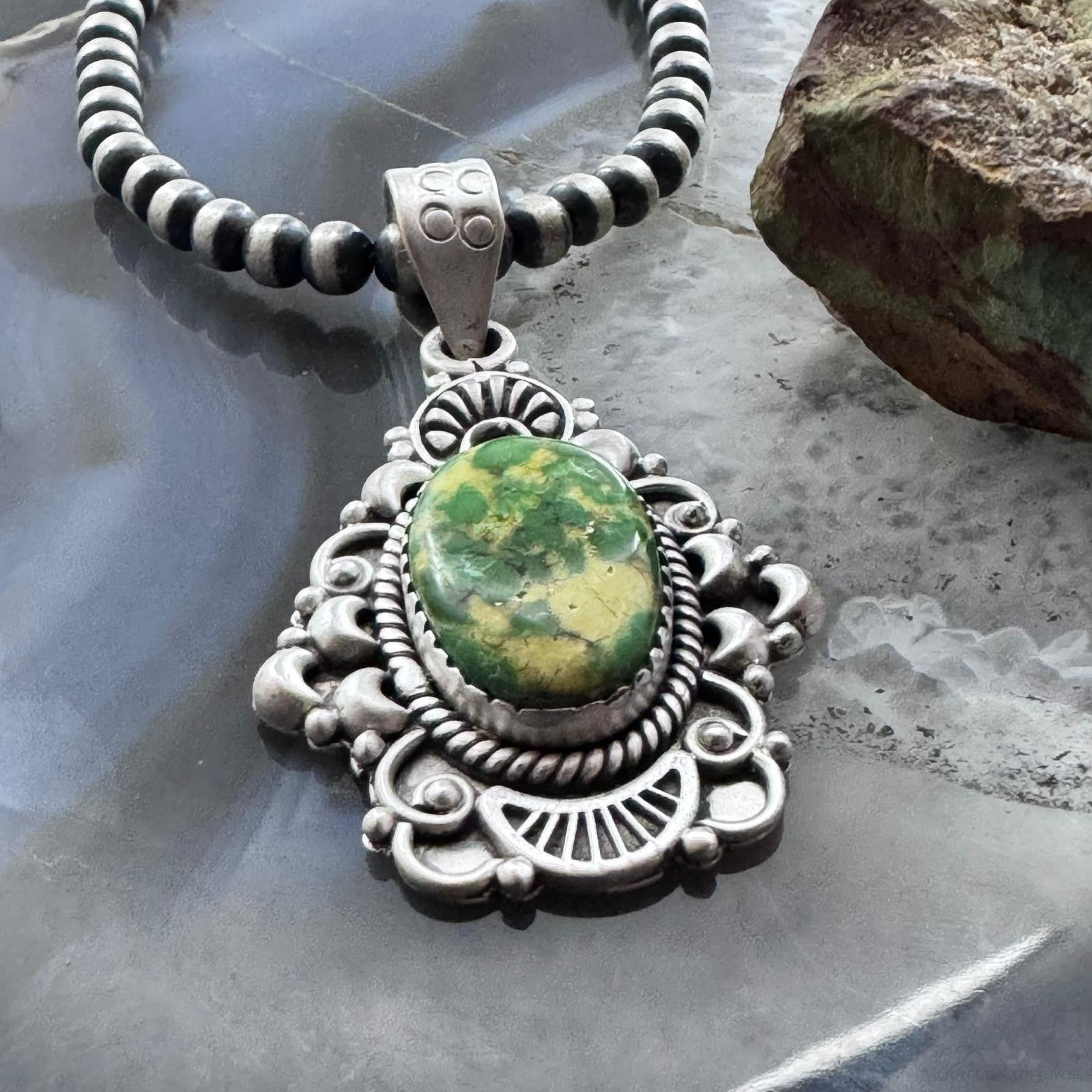 Sterling Silver Southwestern Style Oval Sonora Gold Turquoise Decorated Pendant For Women