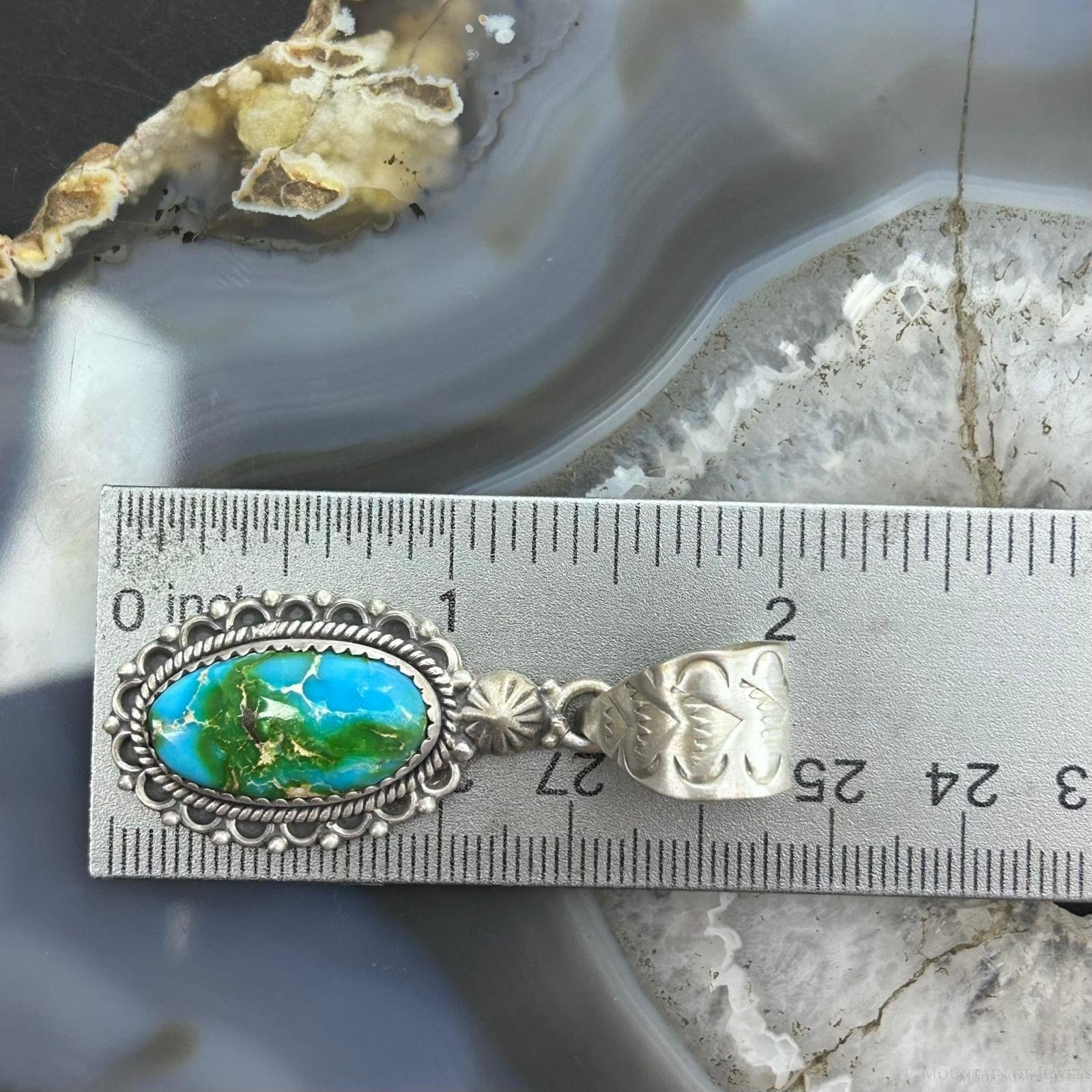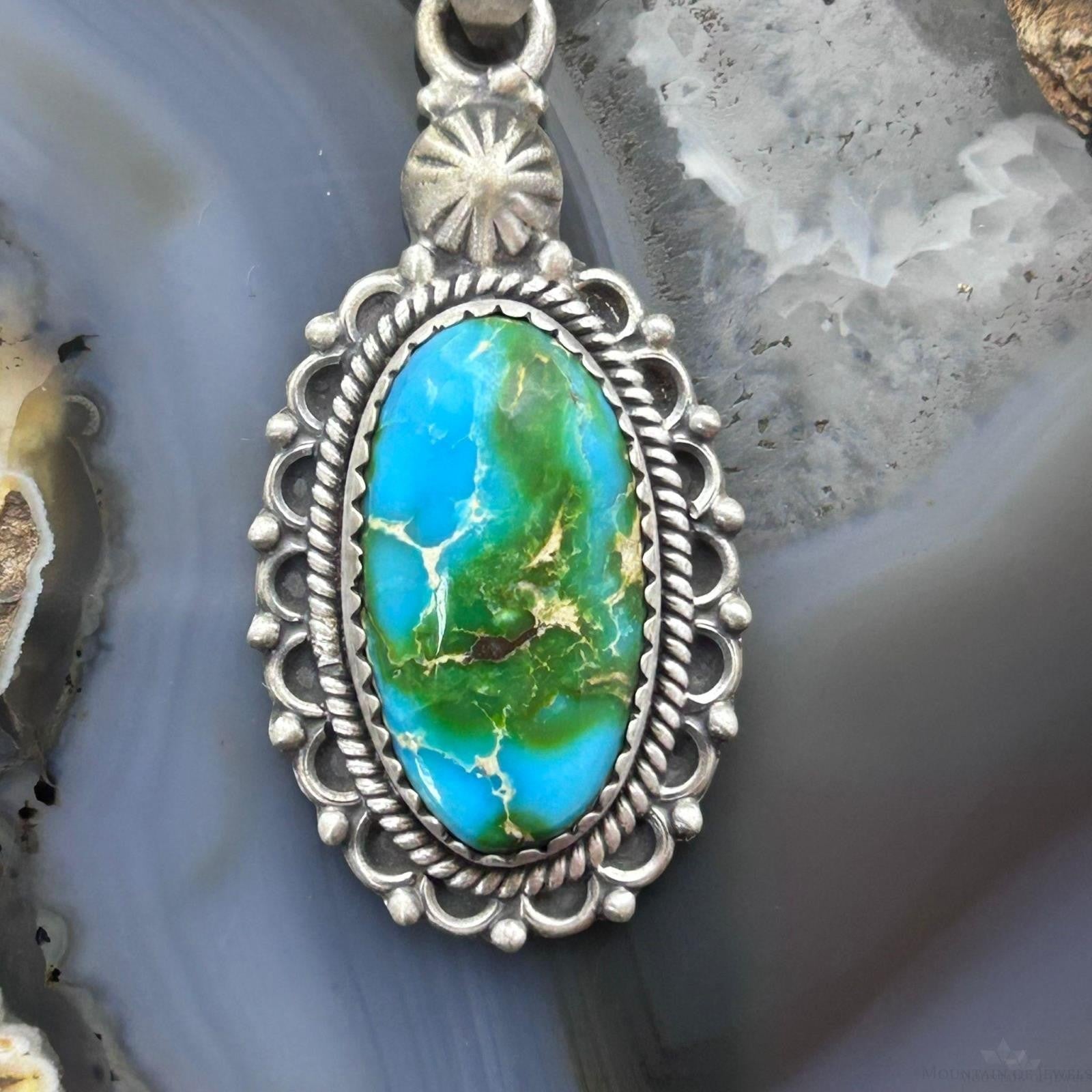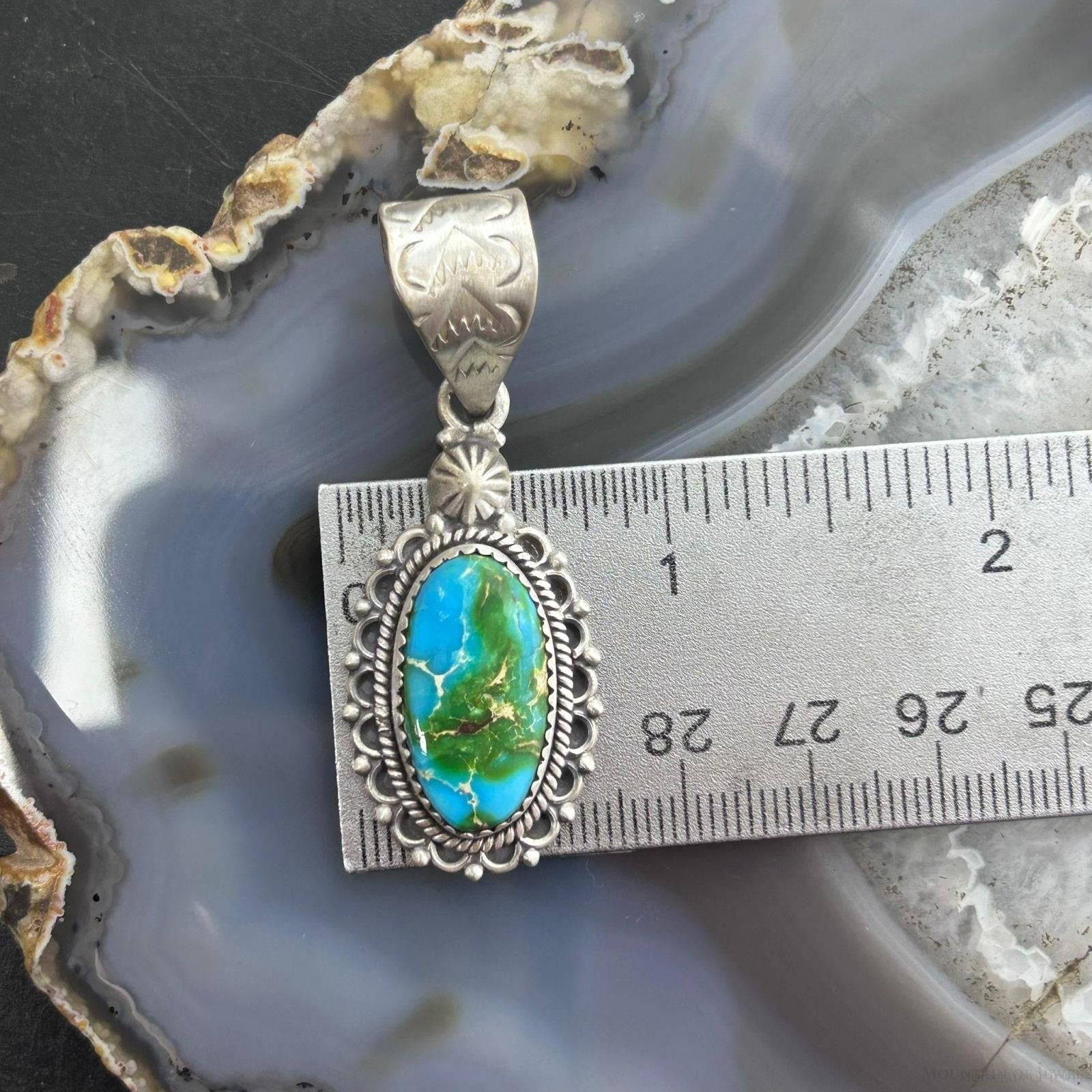 Sterling Silver Southwestern Style Oval Sonora Gold Turquoise Pendant For Women