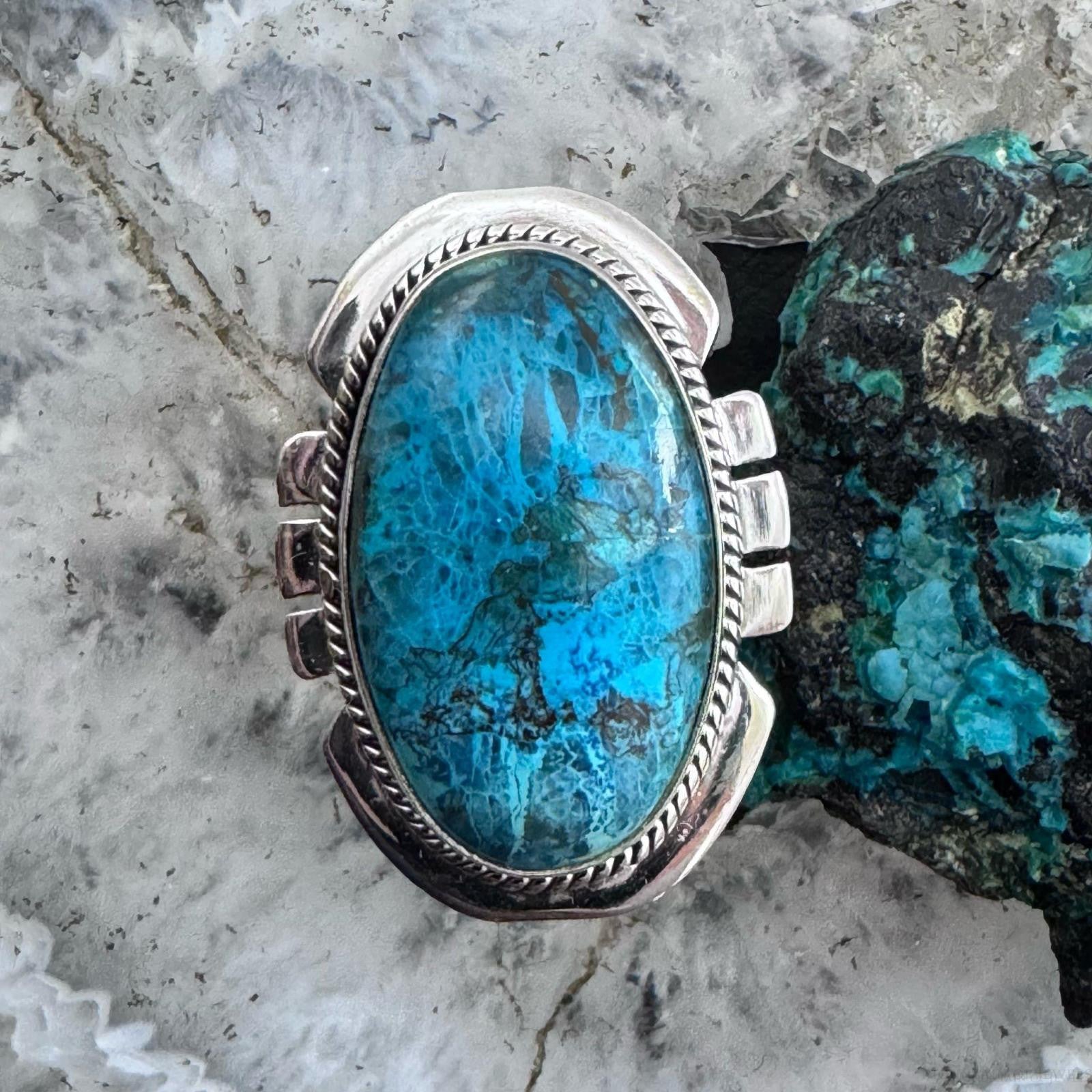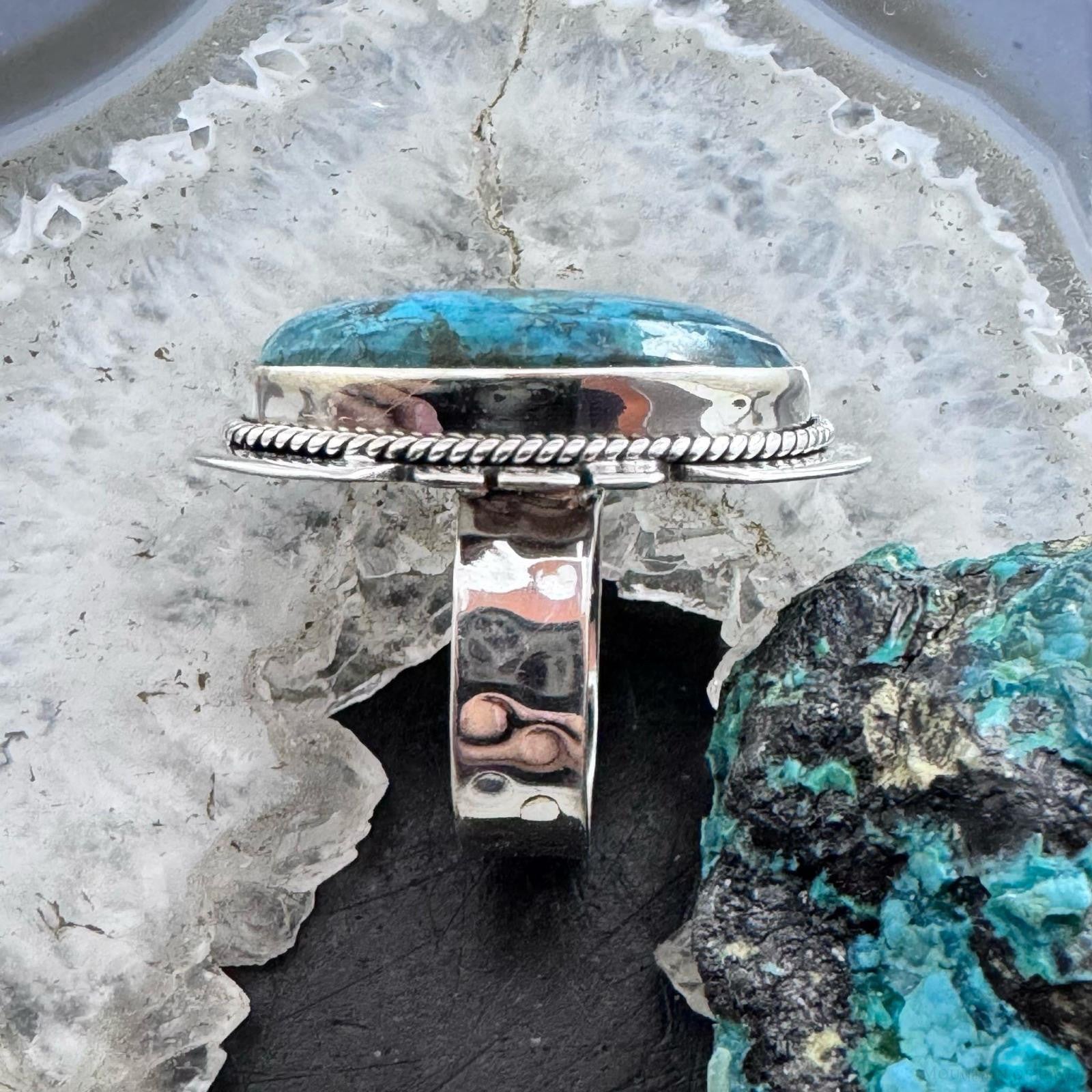 Sterling Silver Southwestern Style Oval Stichtite Decorated Ring Size 8 For Women