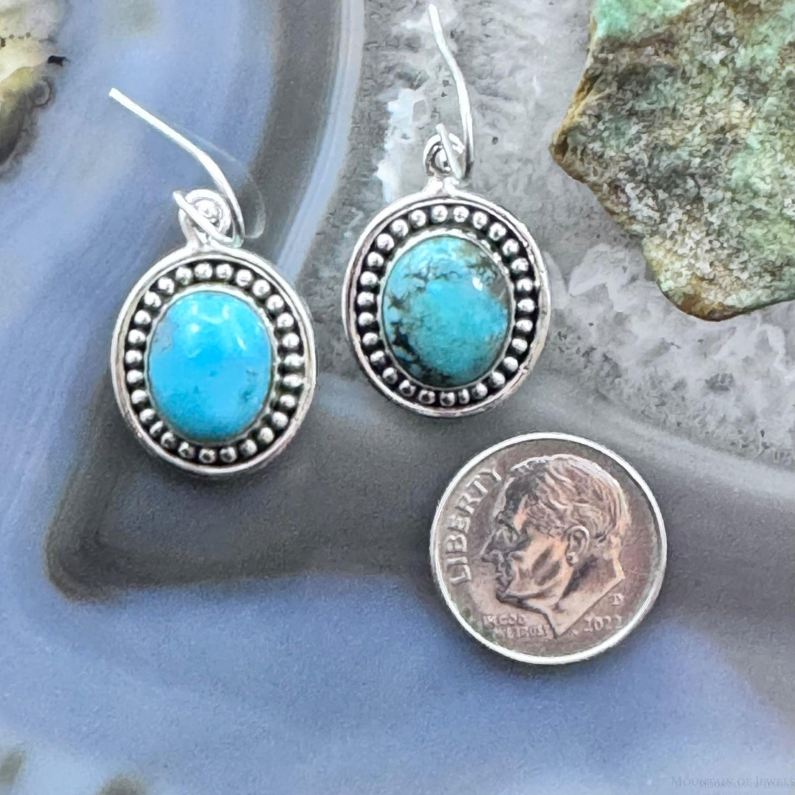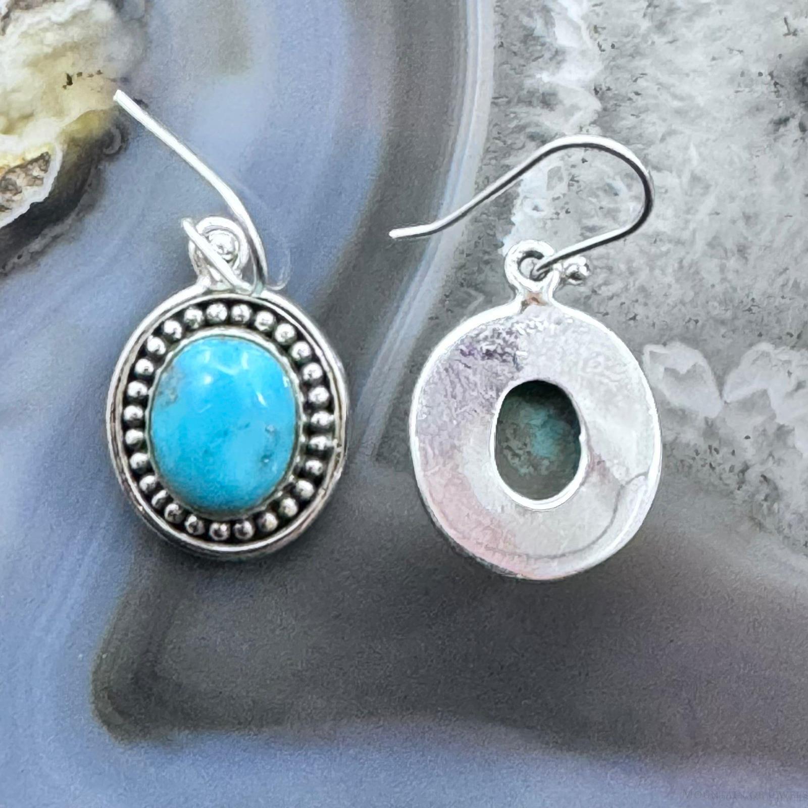 Sterling Silver Southwestern Style Oval Turquoise Dangle Earrings For Women
