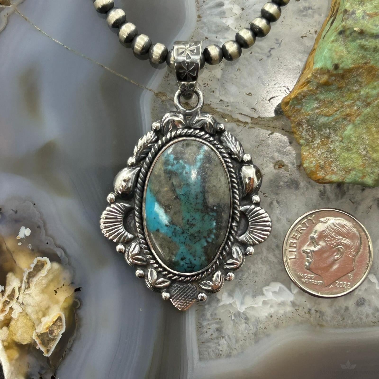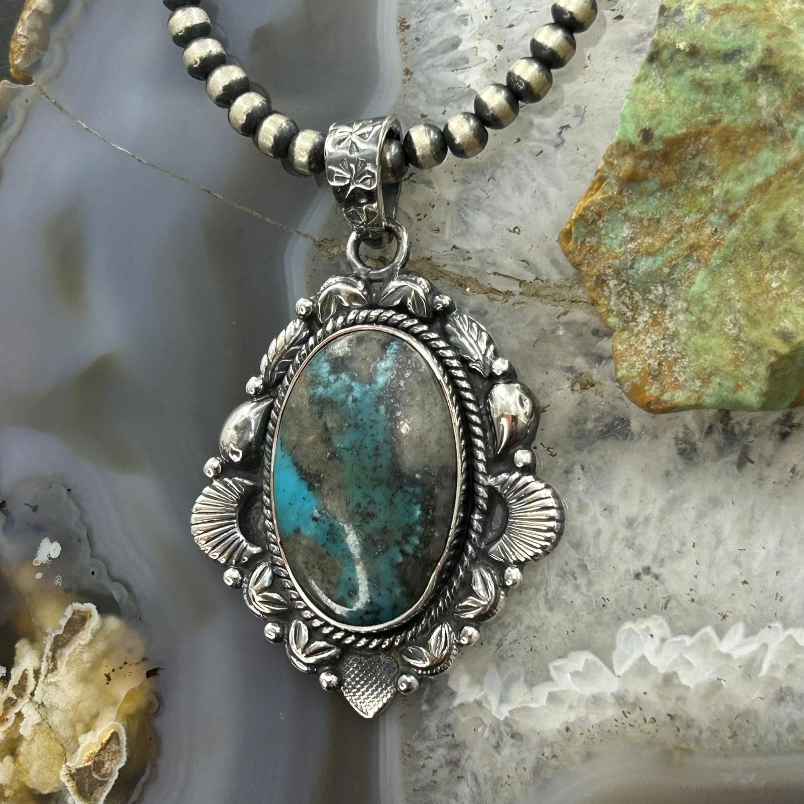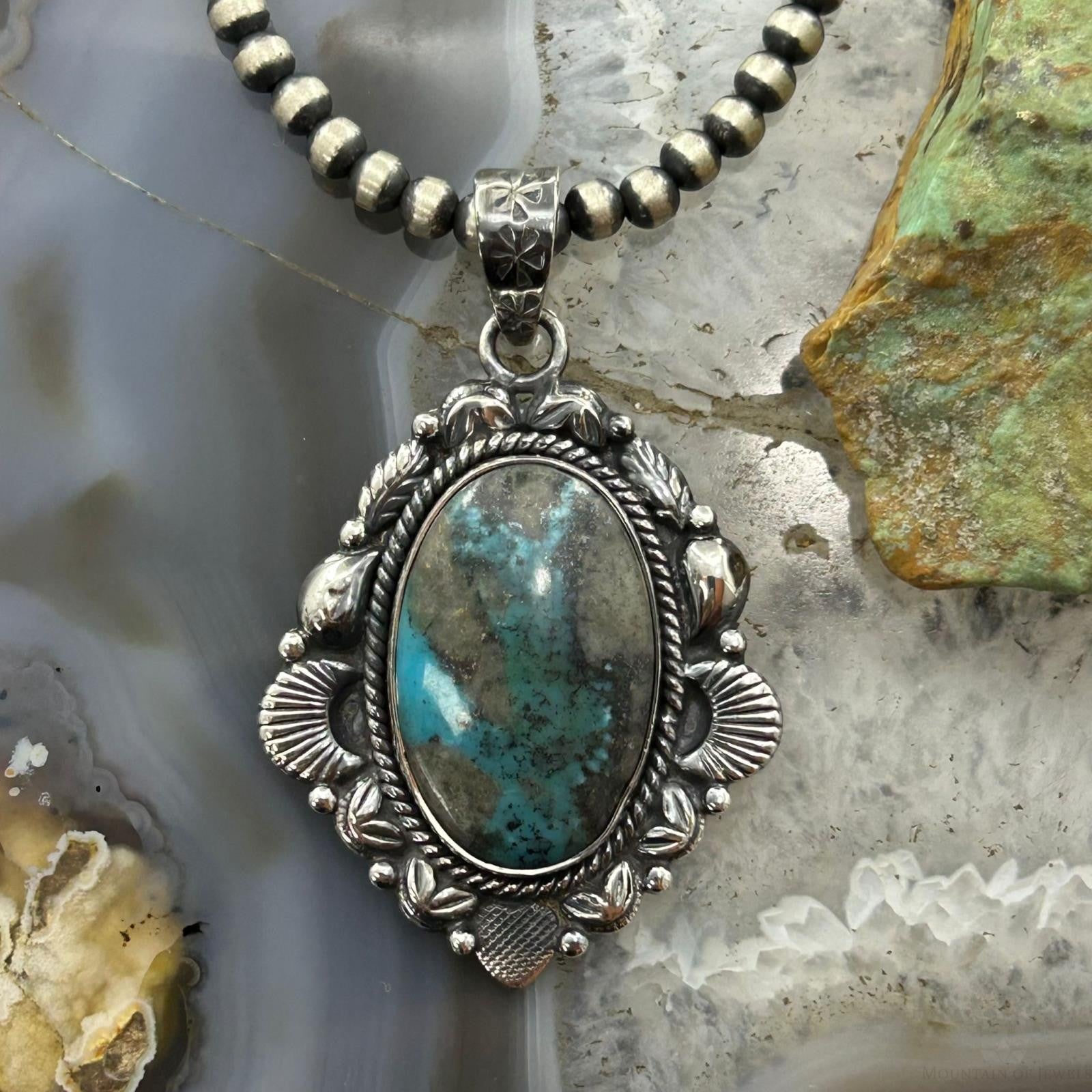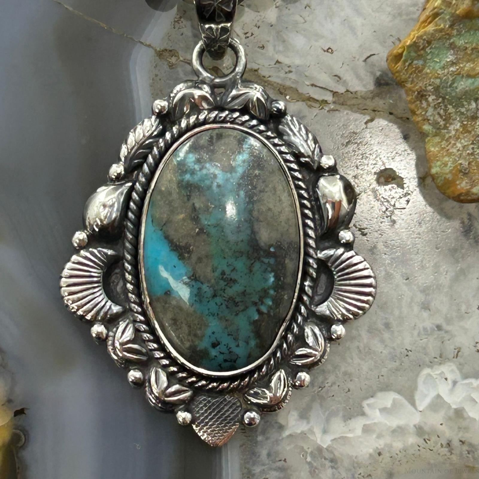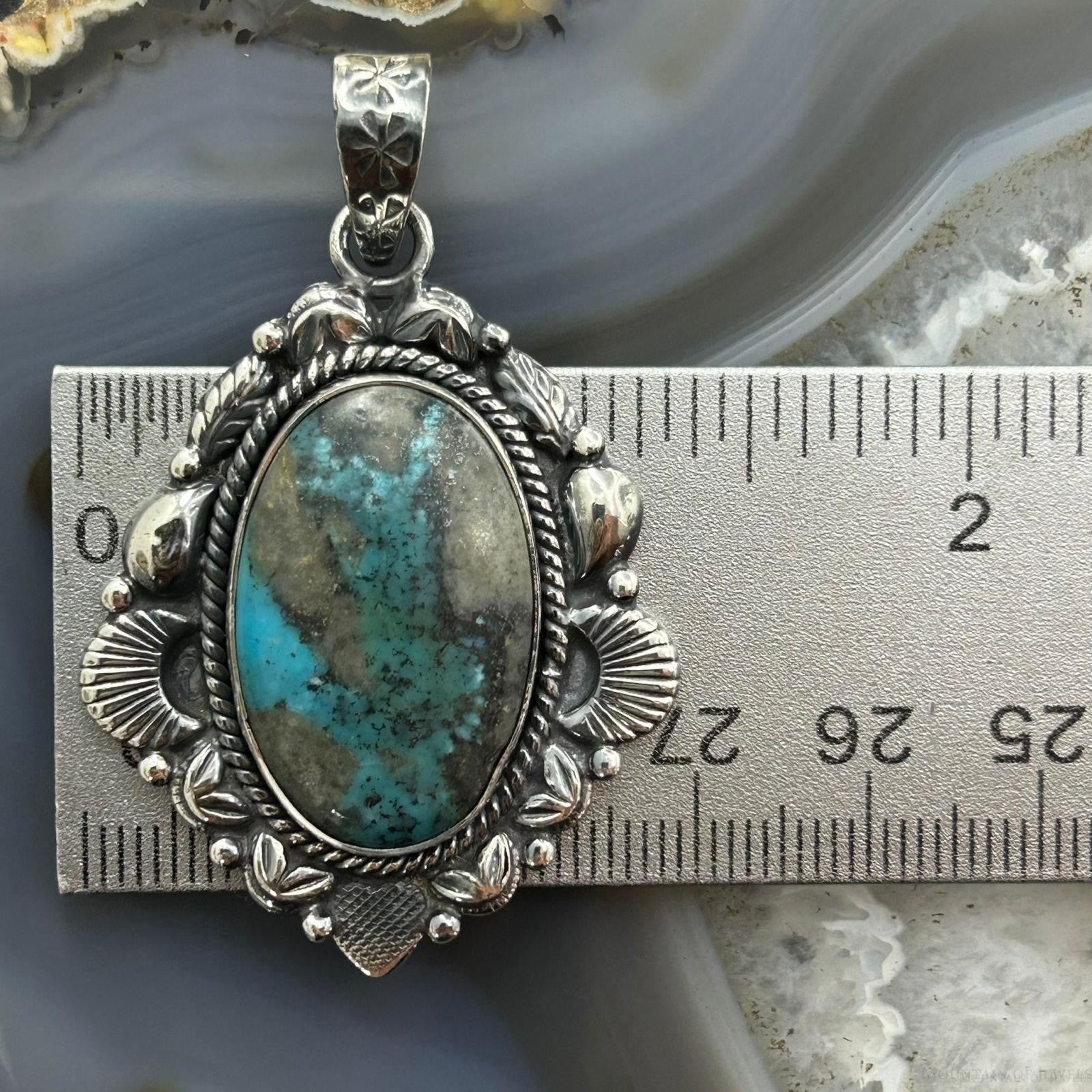 Sterling Silver Southwestern Style Oval Turquoise Decorated Pendant For Women #4