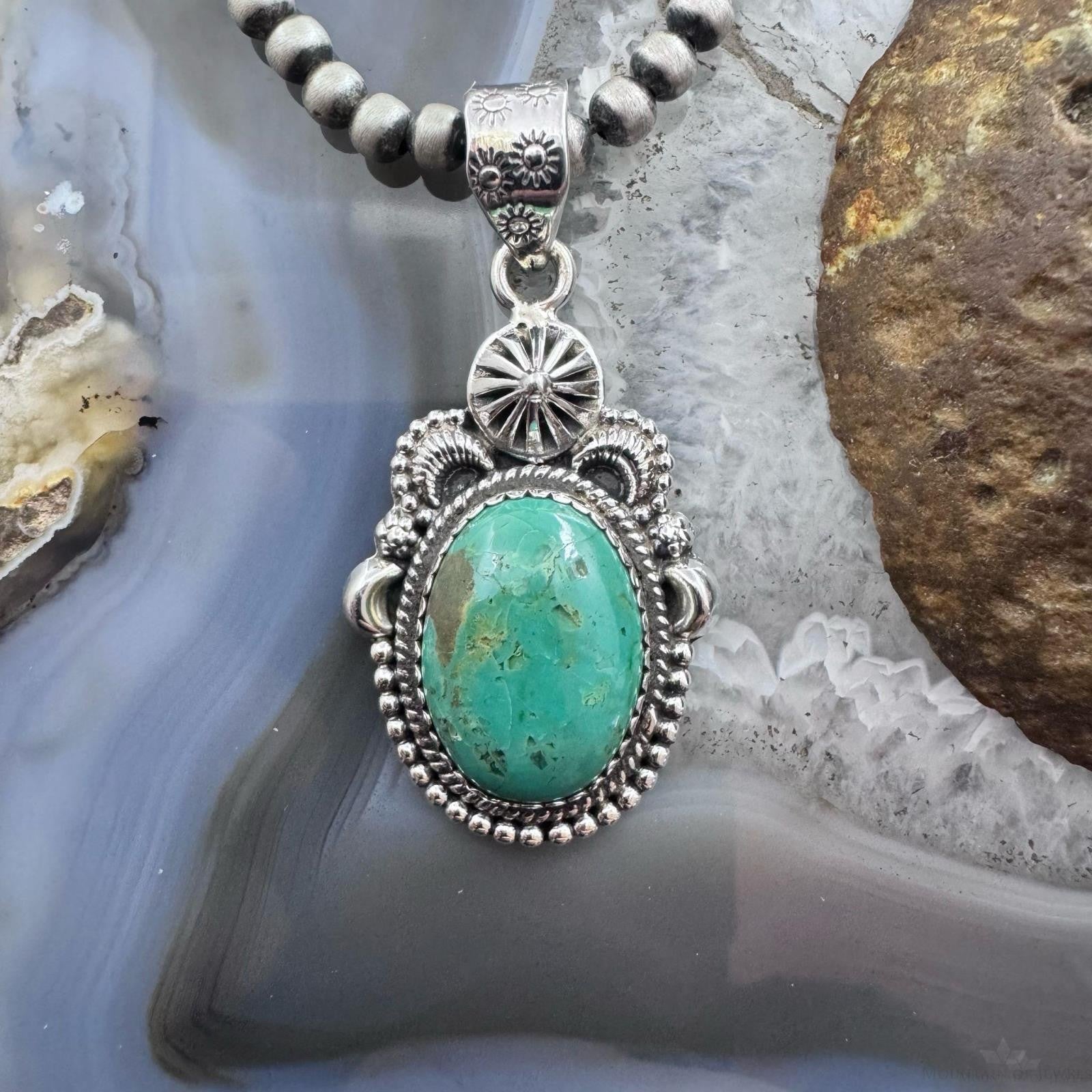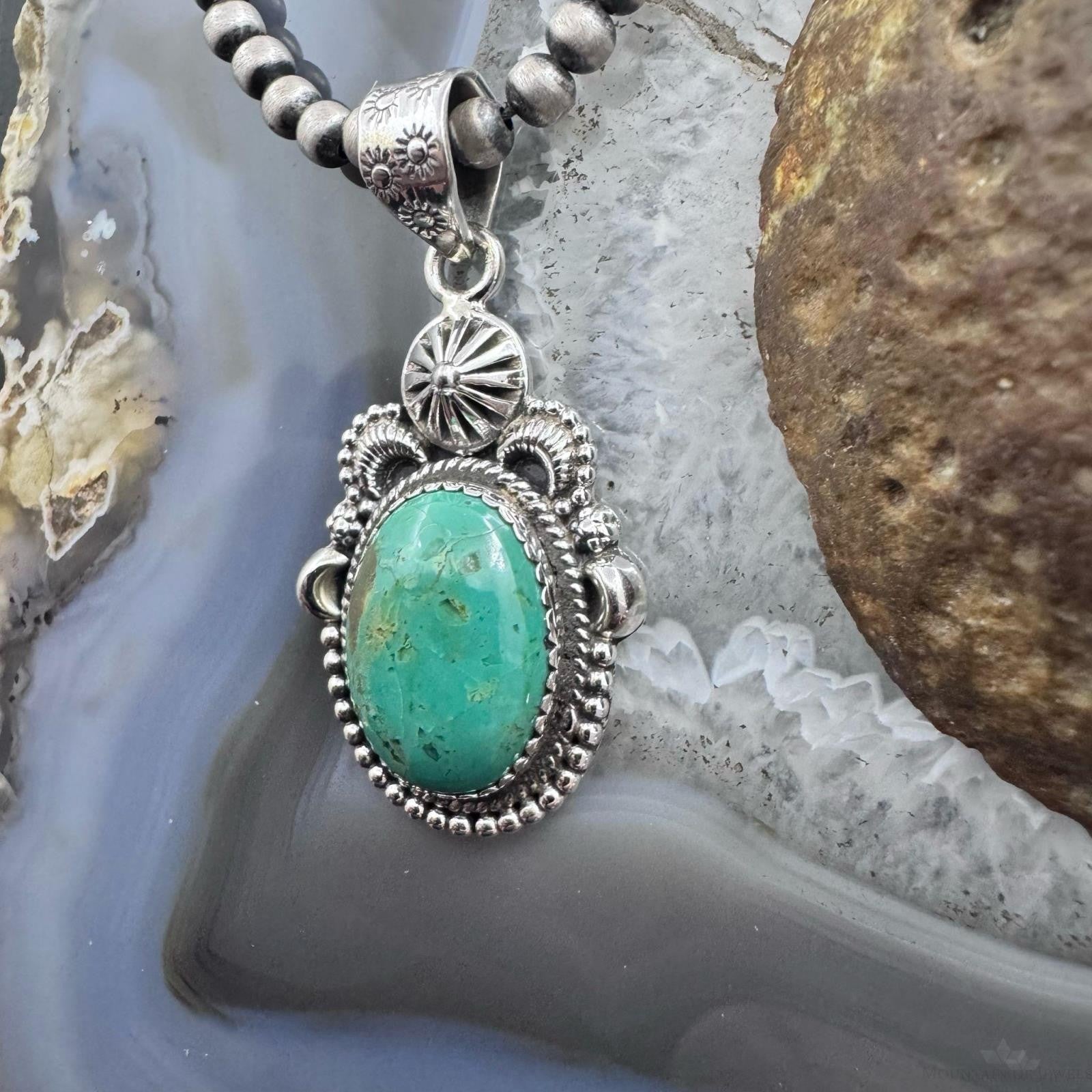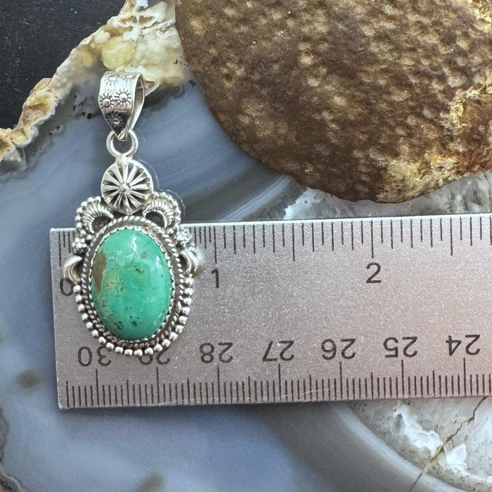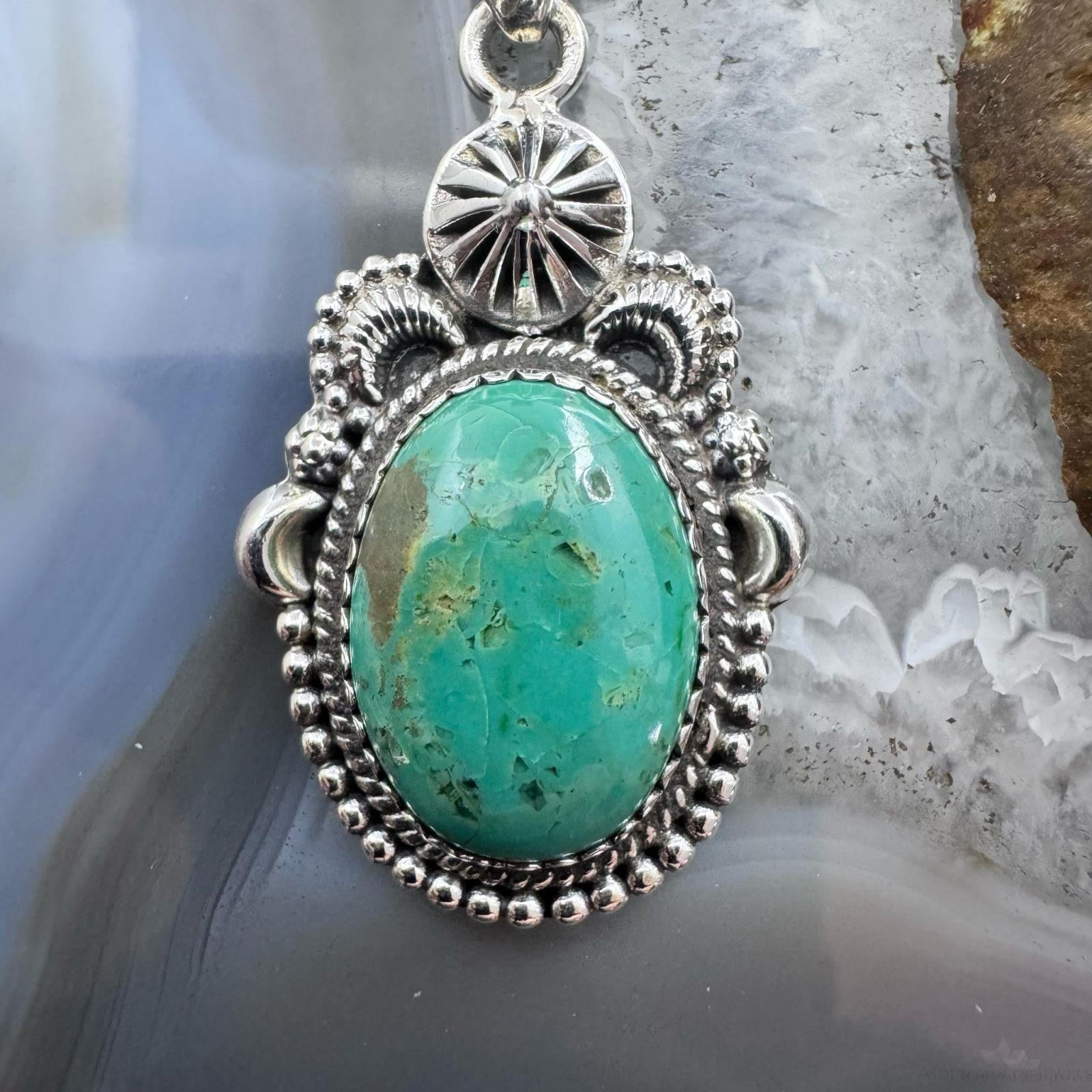 Sterling Silver Southwestern Style Oval Turquoise Decorated Pendant For Women
