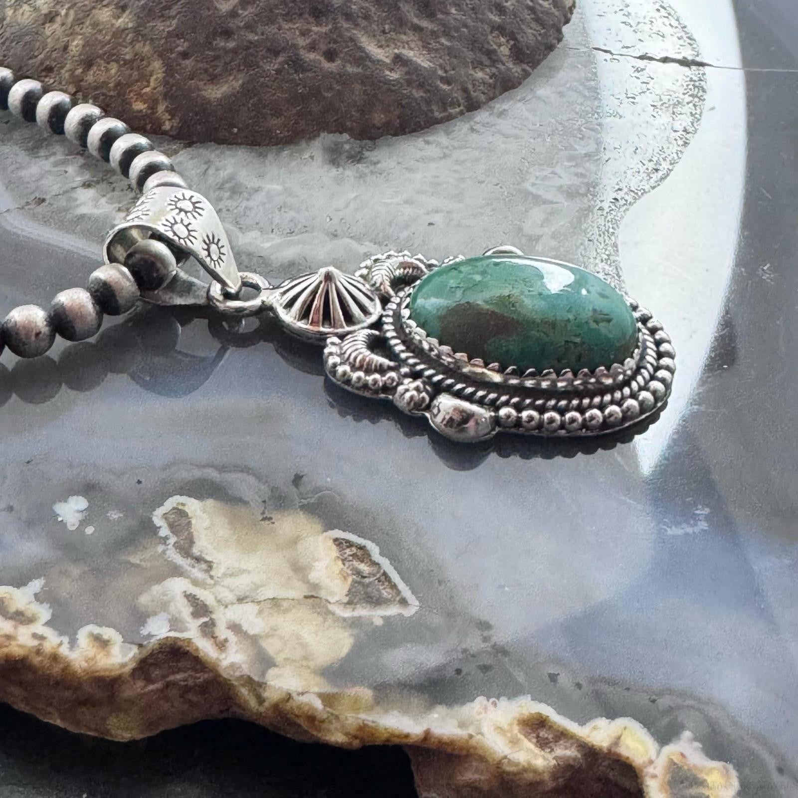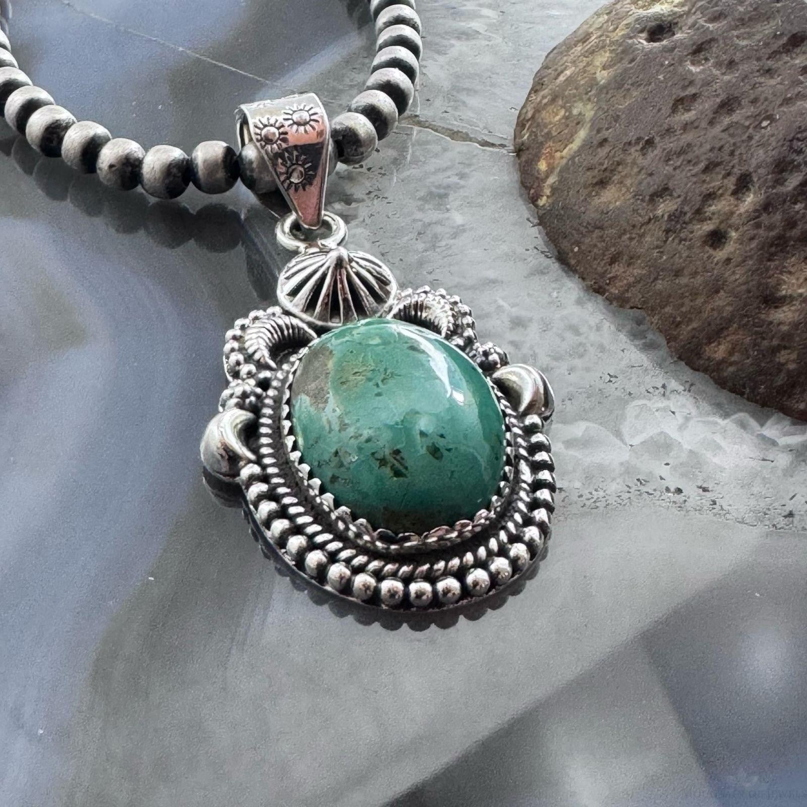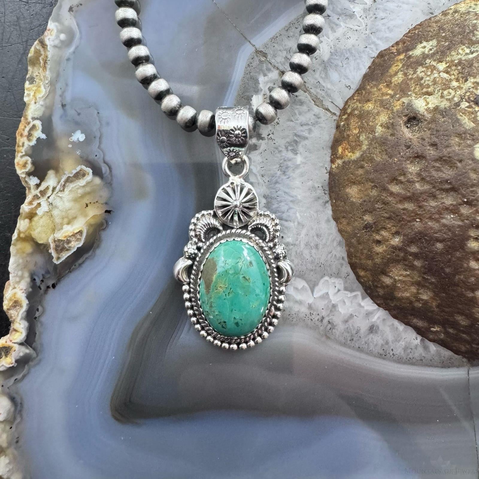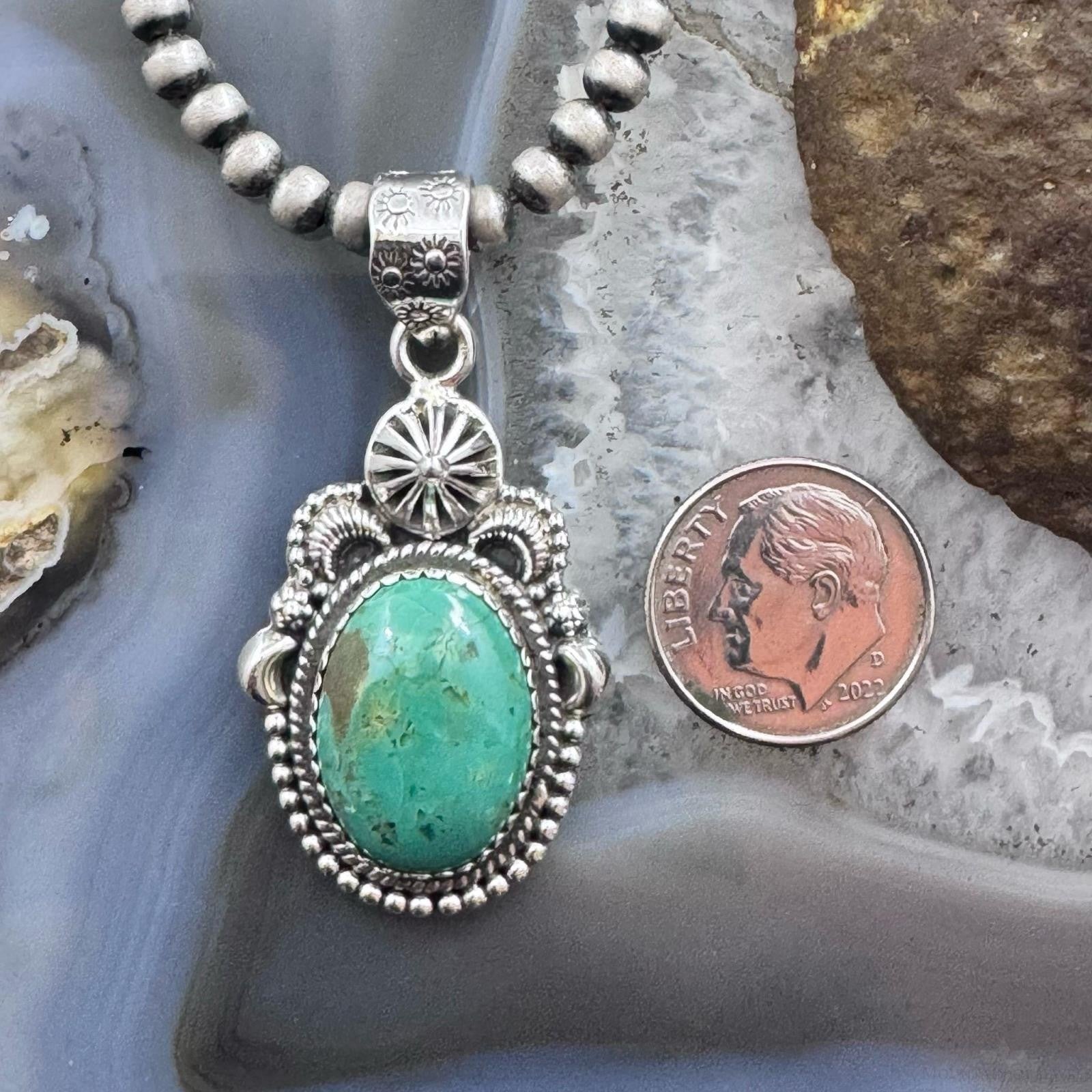 Sterling Silver Southwestern Style Oval Turquoise Decorated Pendant For Women