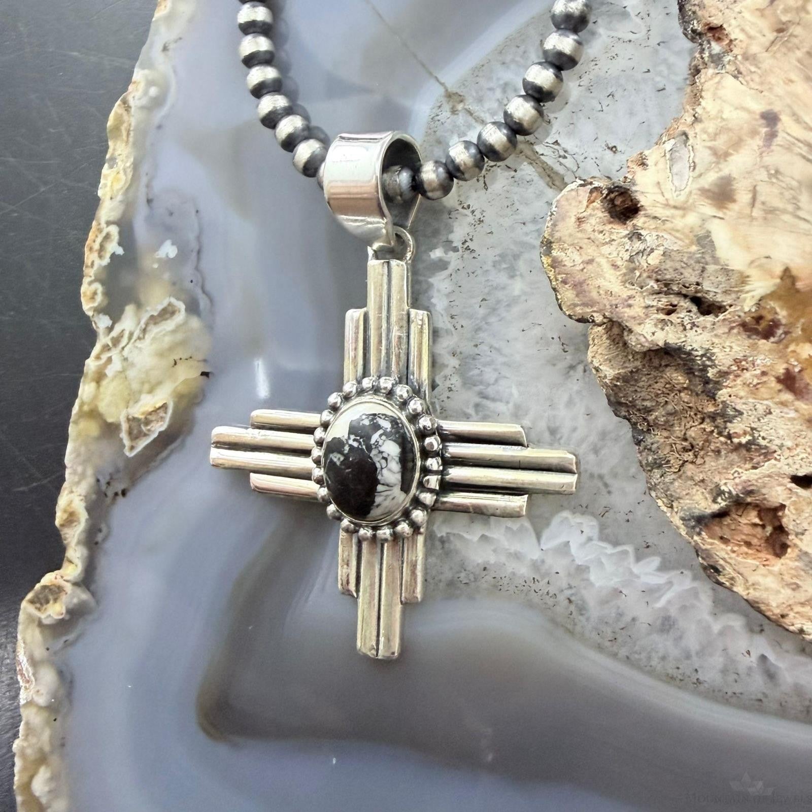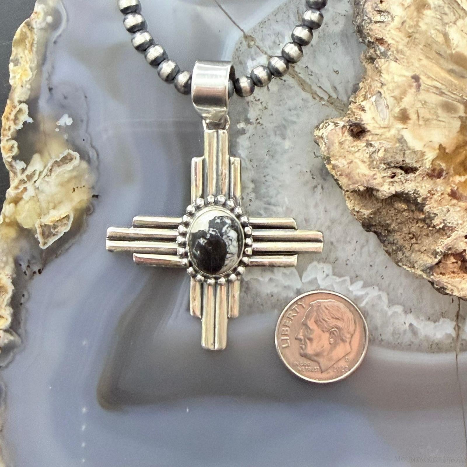 Sterling Silver Southwestern Style Oval White Buffalo Unisex Zia Pendant