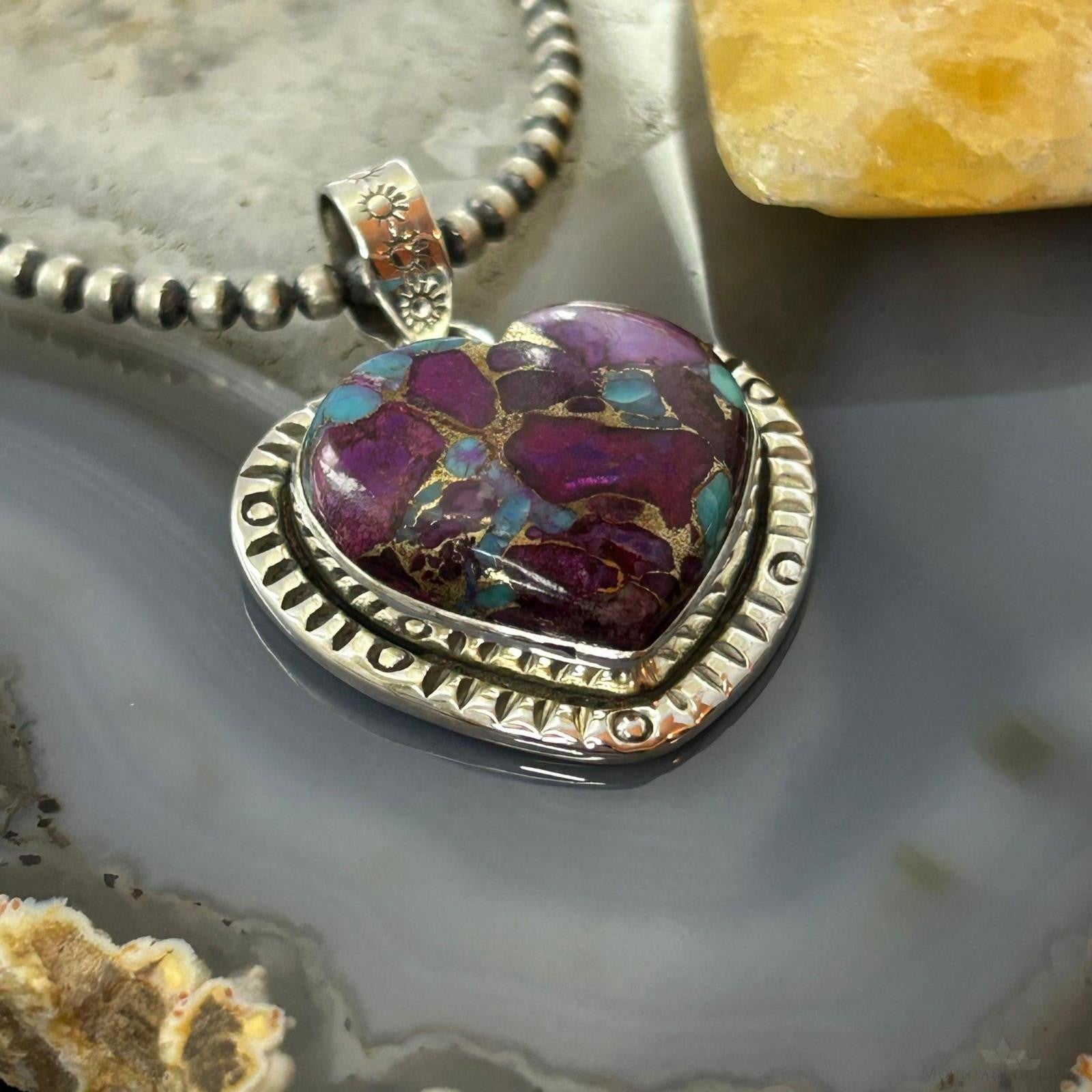 Sterling Silver Southwestern Style Purple Dahlia Heart Pendant For Women