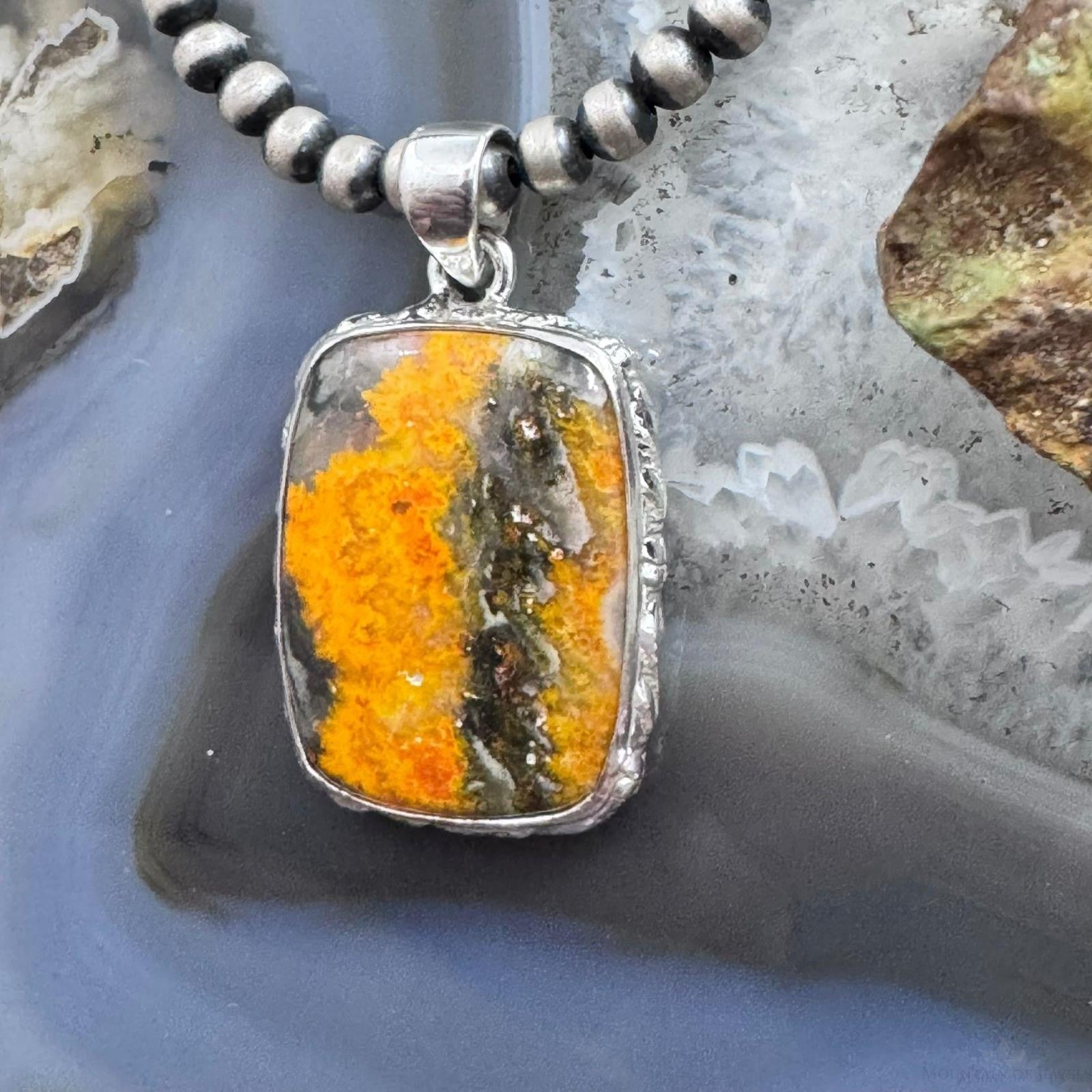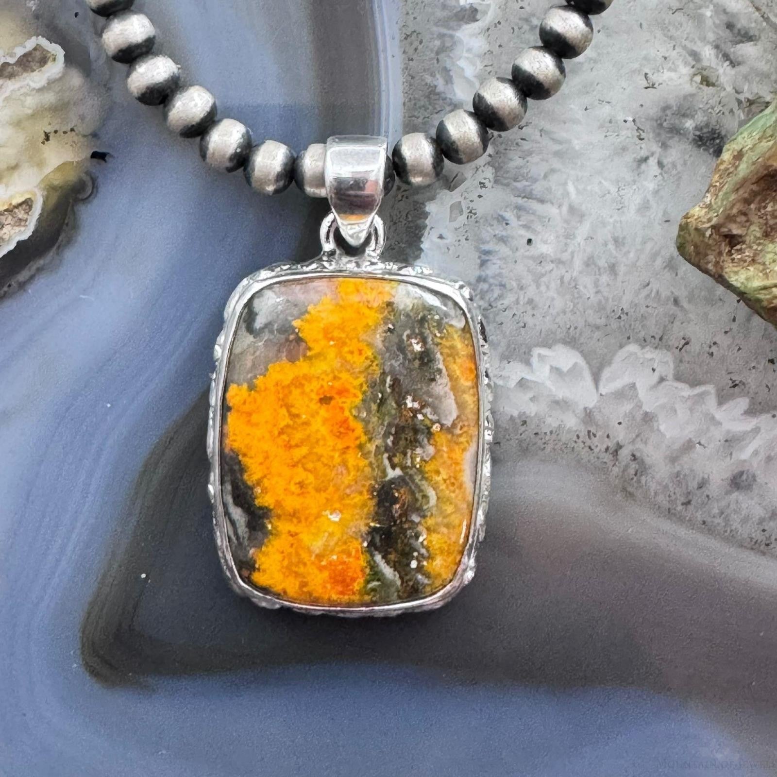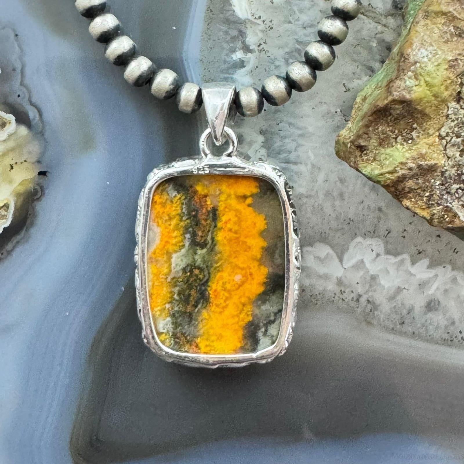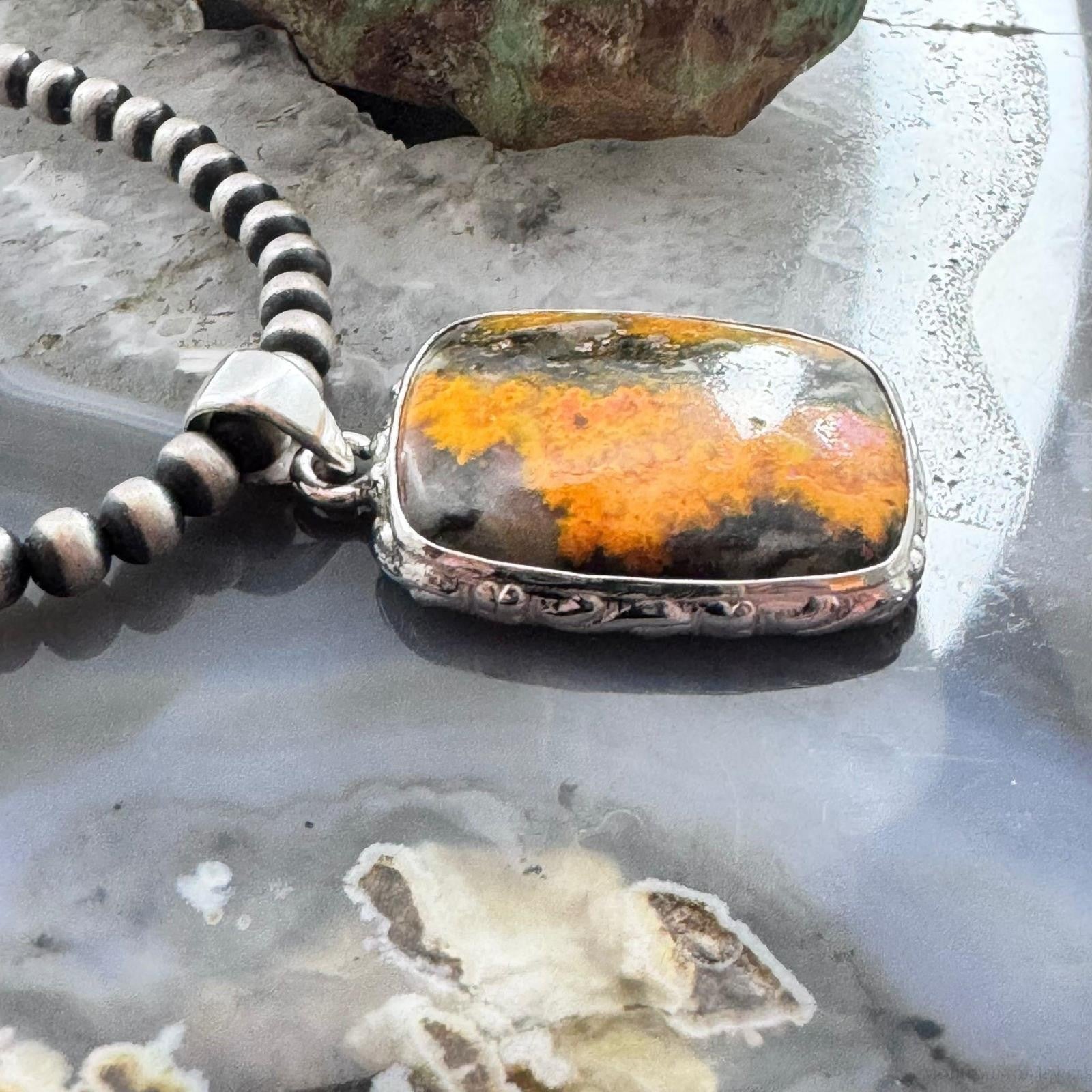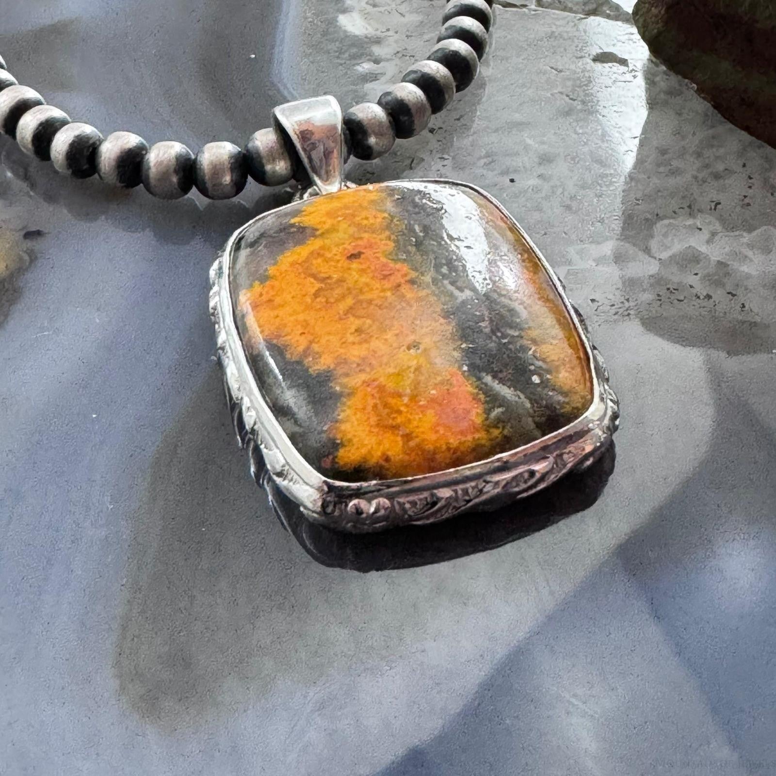 Sterling Silver Southwestern Style Rectangle Eclipse Jasper Pendant For Women