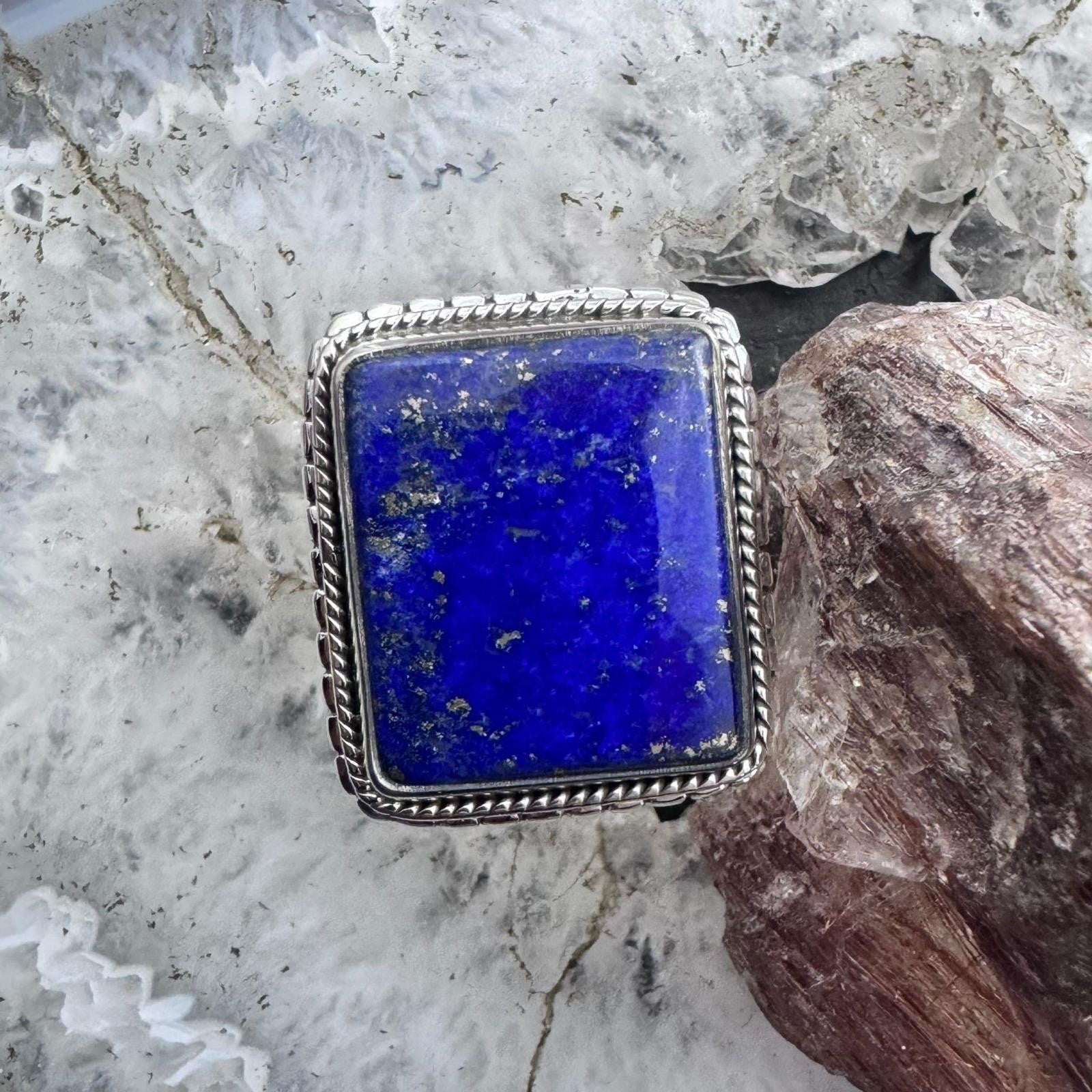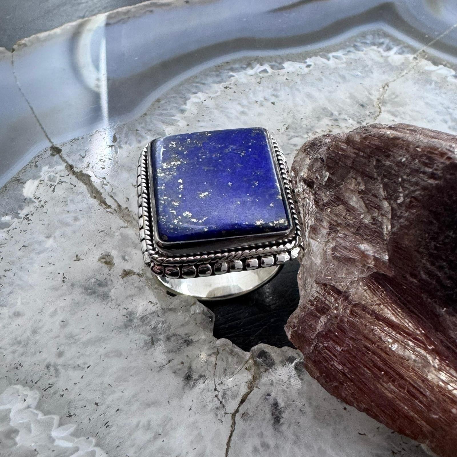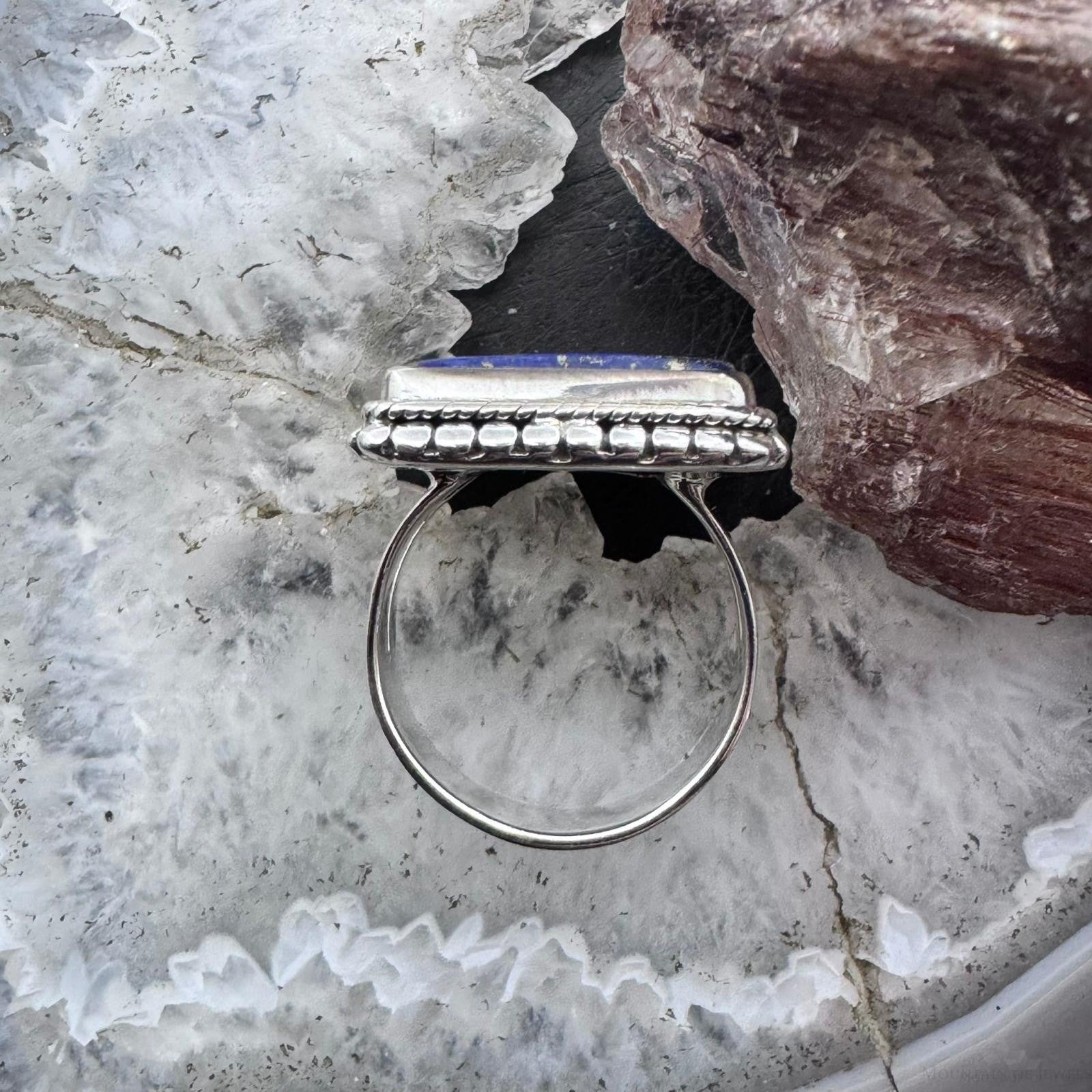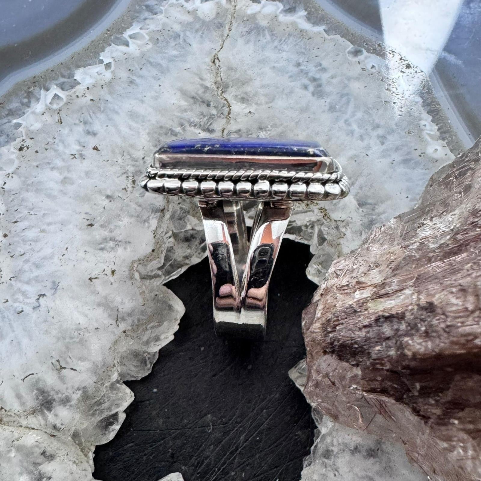 Sterling Silver Southwestern Style Rectangle Lapis Decorated Ring Size 8 For Women