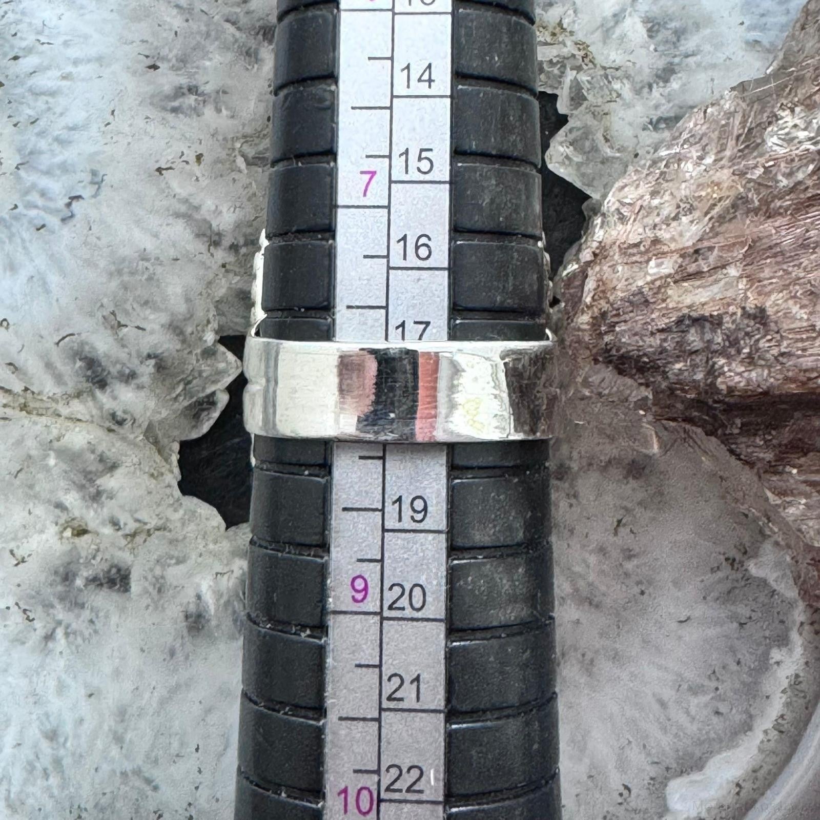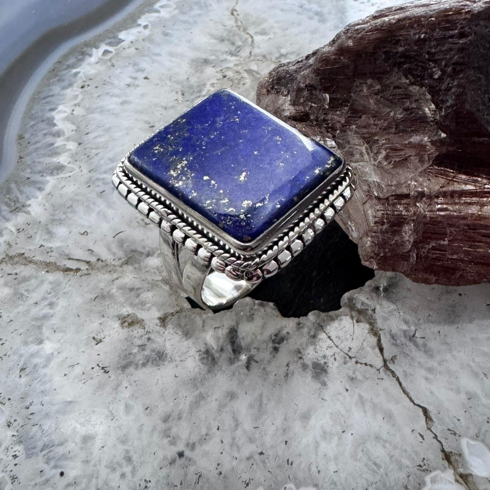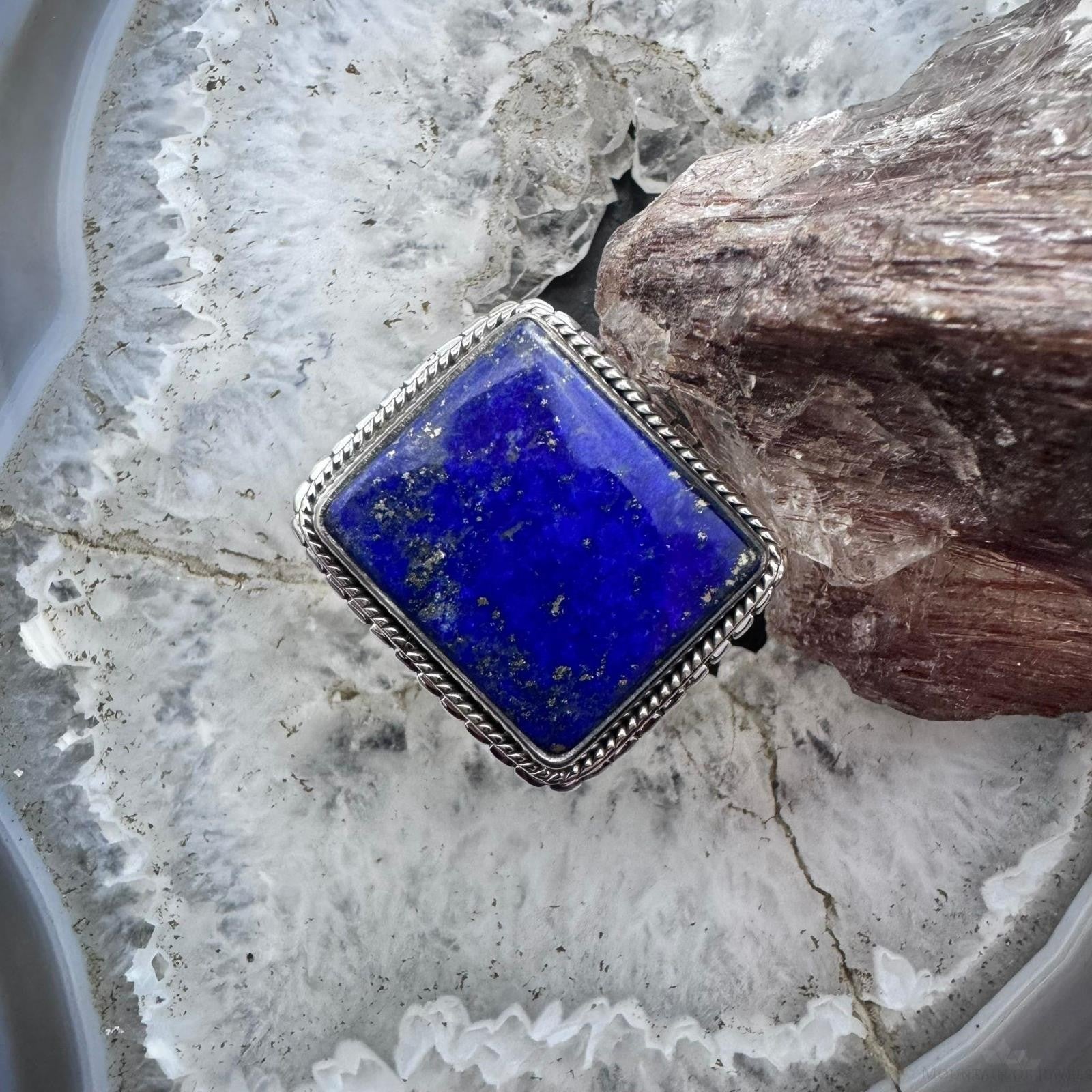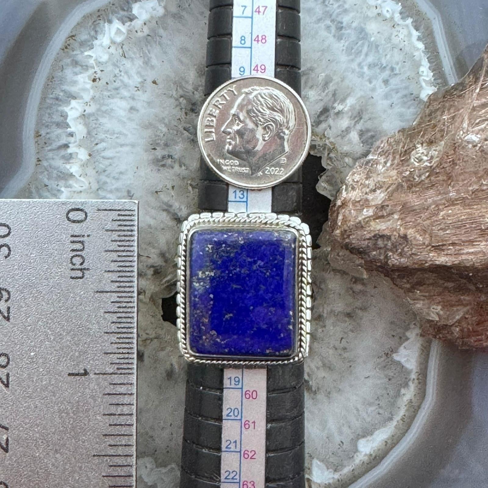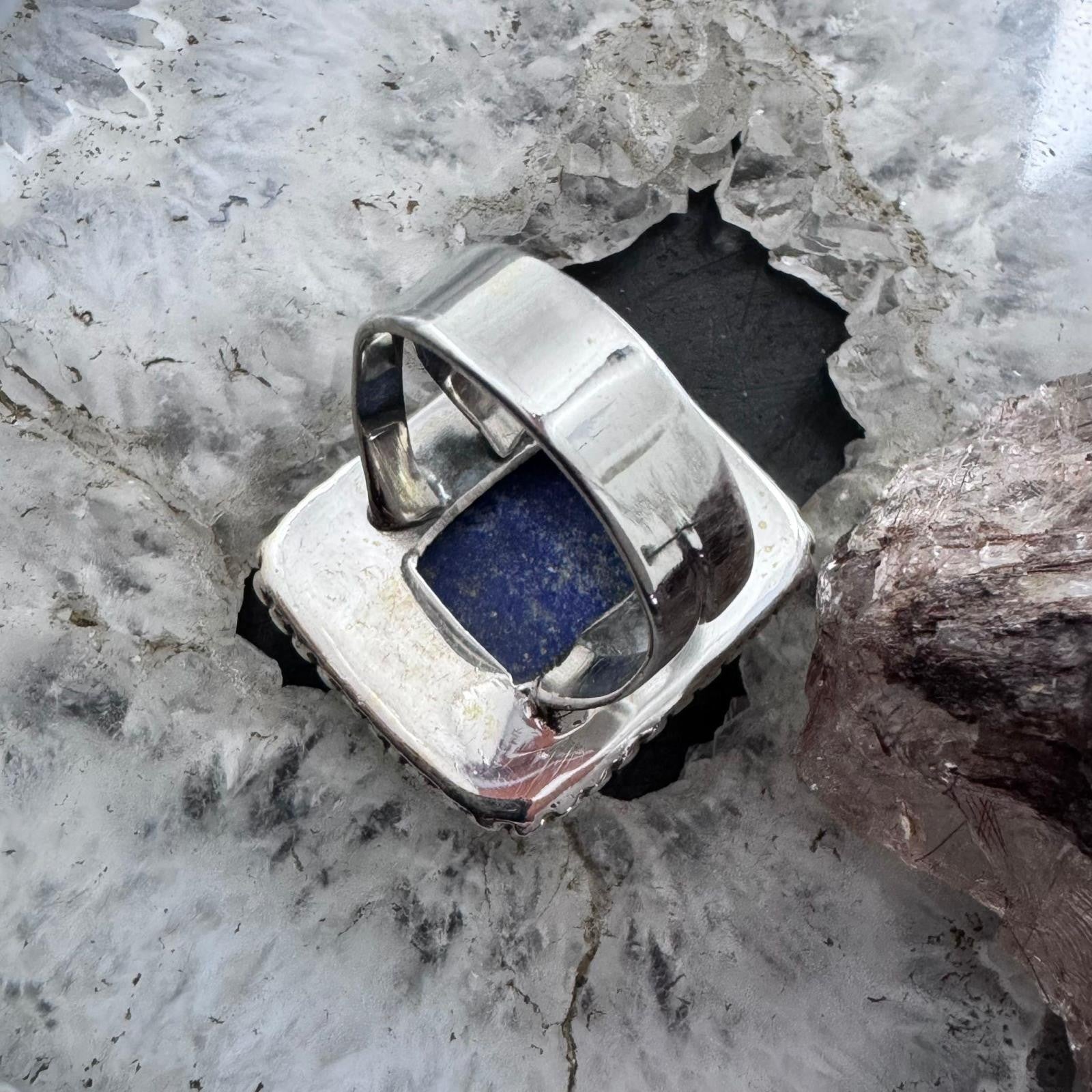 Sterling Silver Southwestern Style Rectangle Lapis Decorated Ring Size 8 For Women