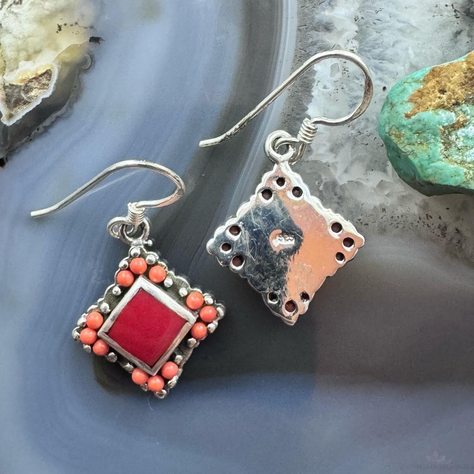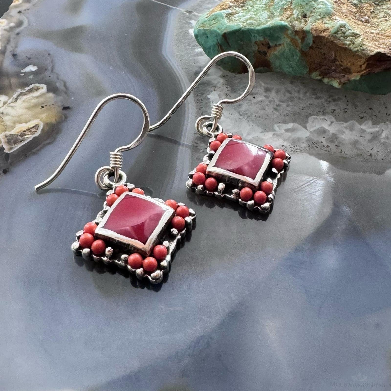 Sterling Silver Southwestern Style Red Gemstone Tiny Dangle Earrings For Women