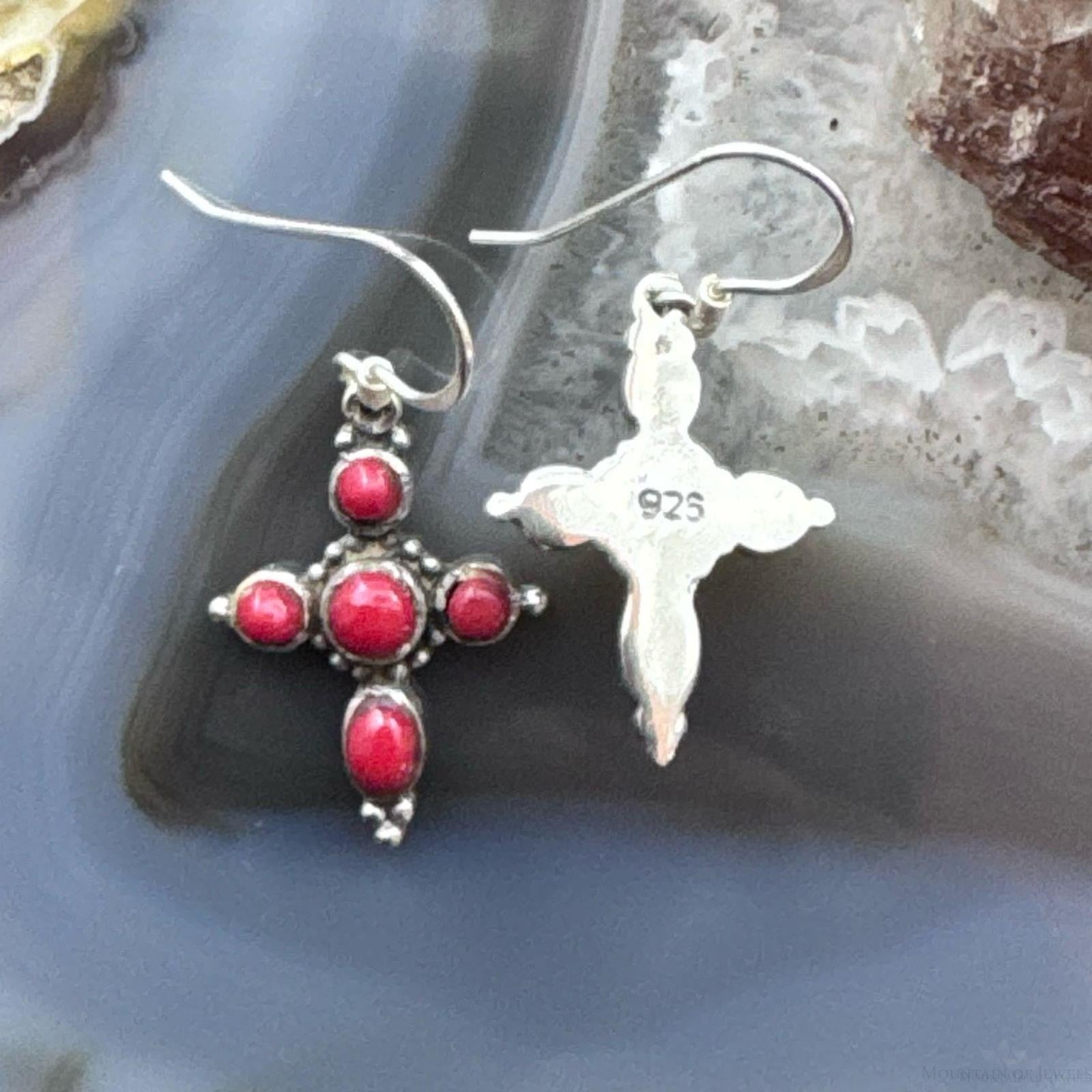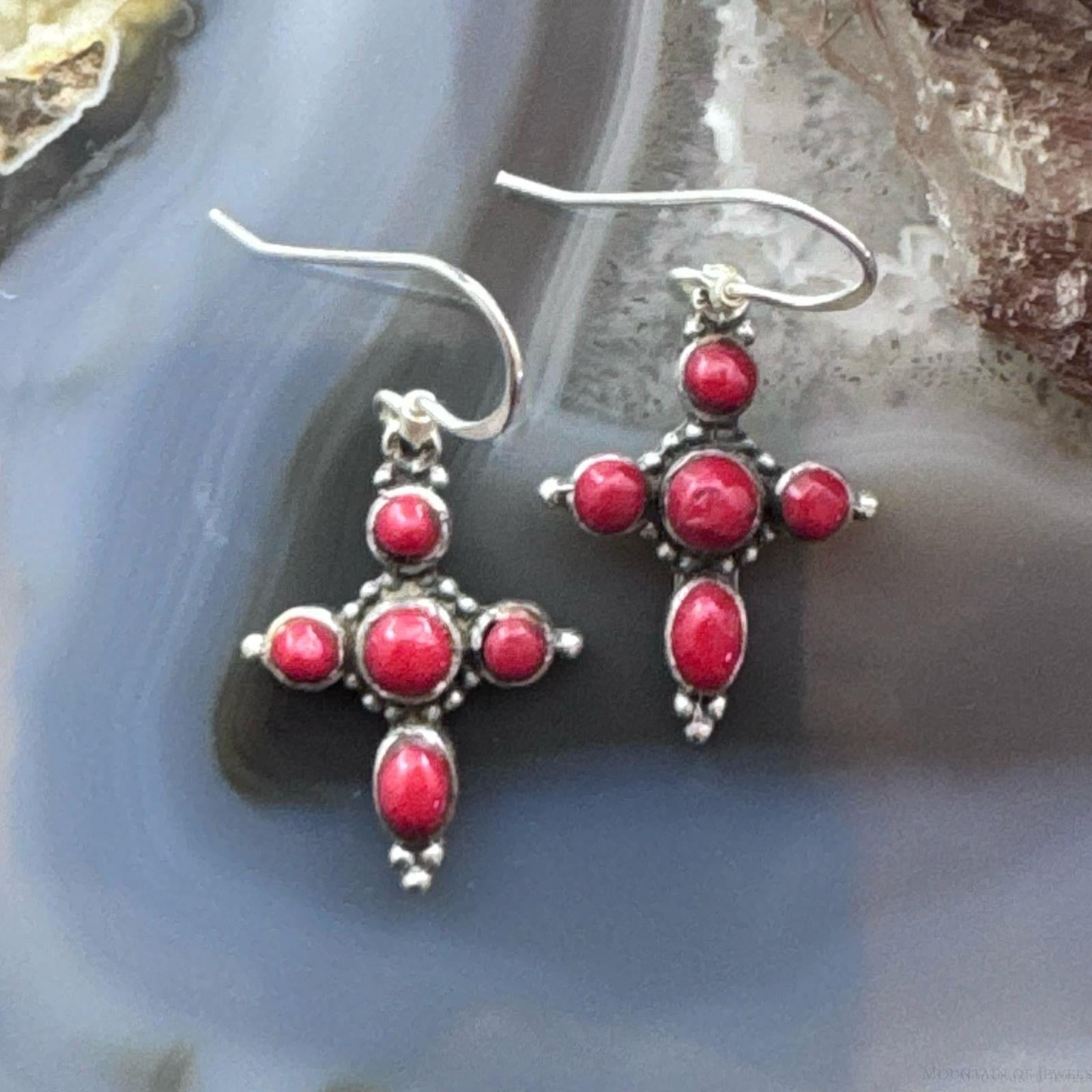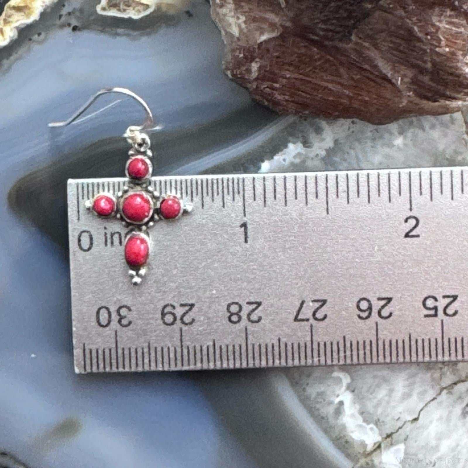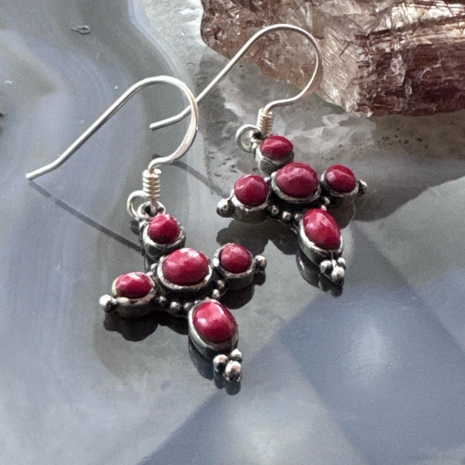 Sterling Silver Southwestern Style Red Jasper Cross Dangle Earrings For Women