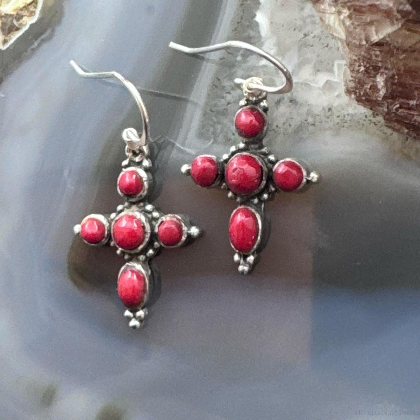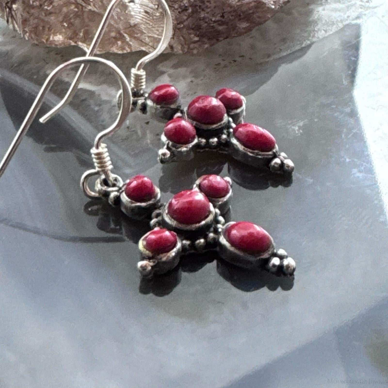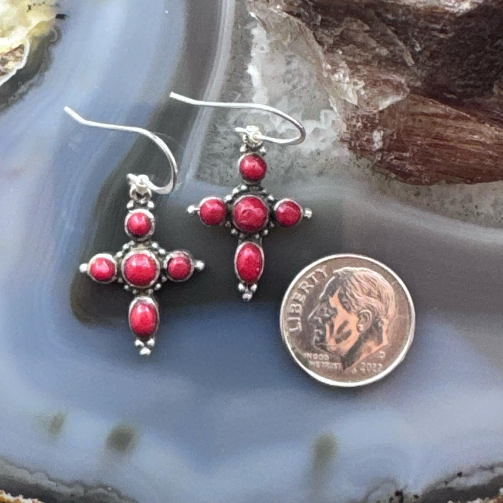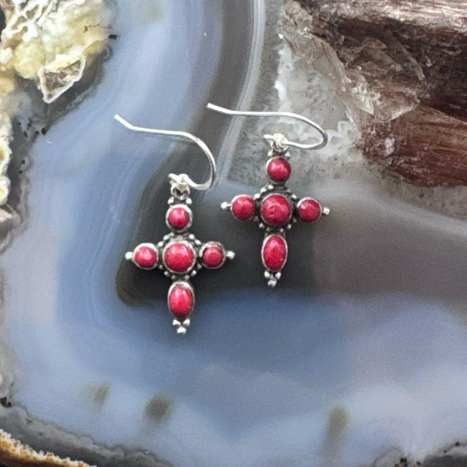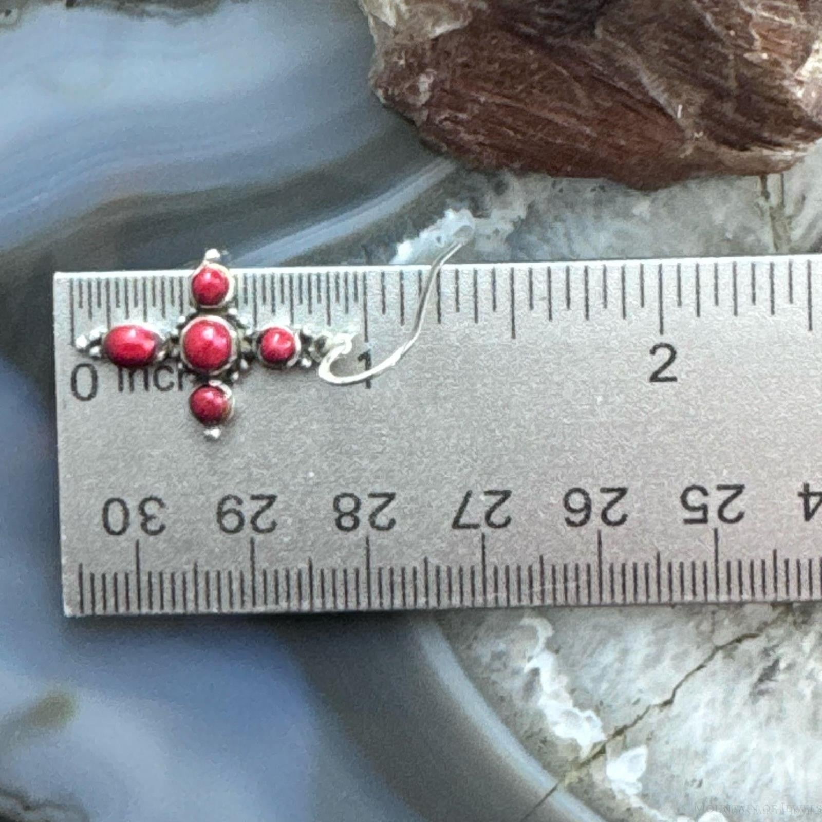 Sterling Silver Southwestern Style Red Jasper Cross Dangle Earrings For Women