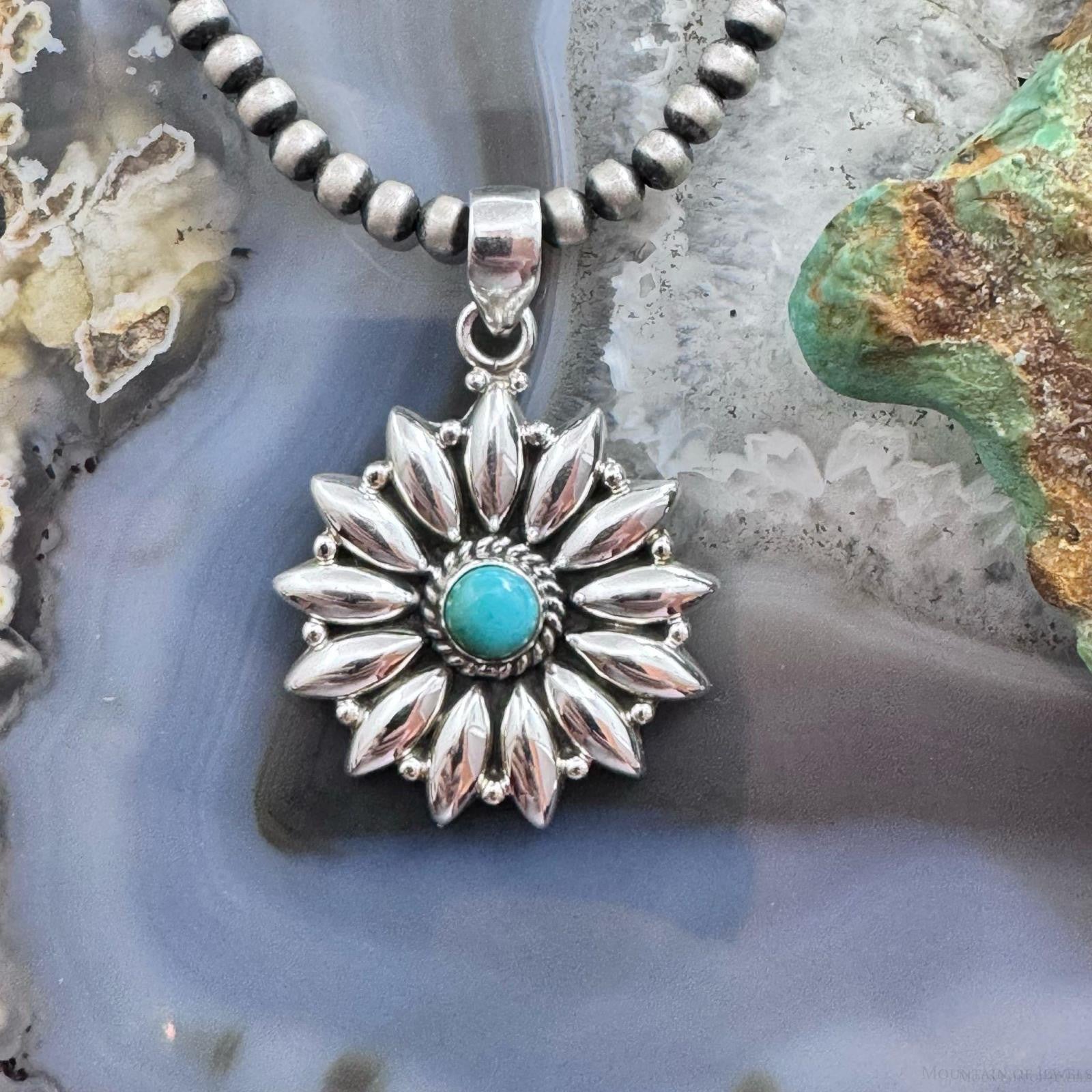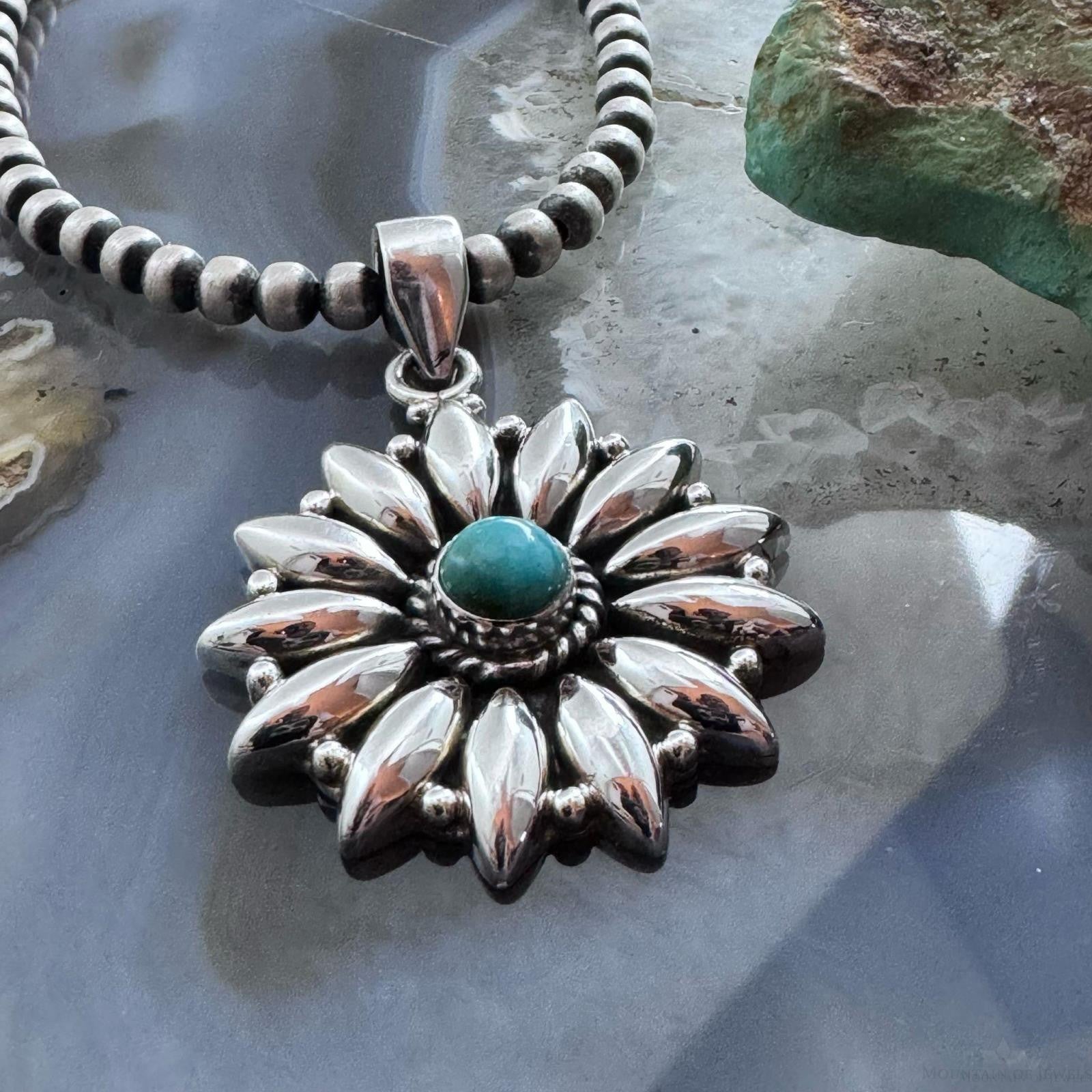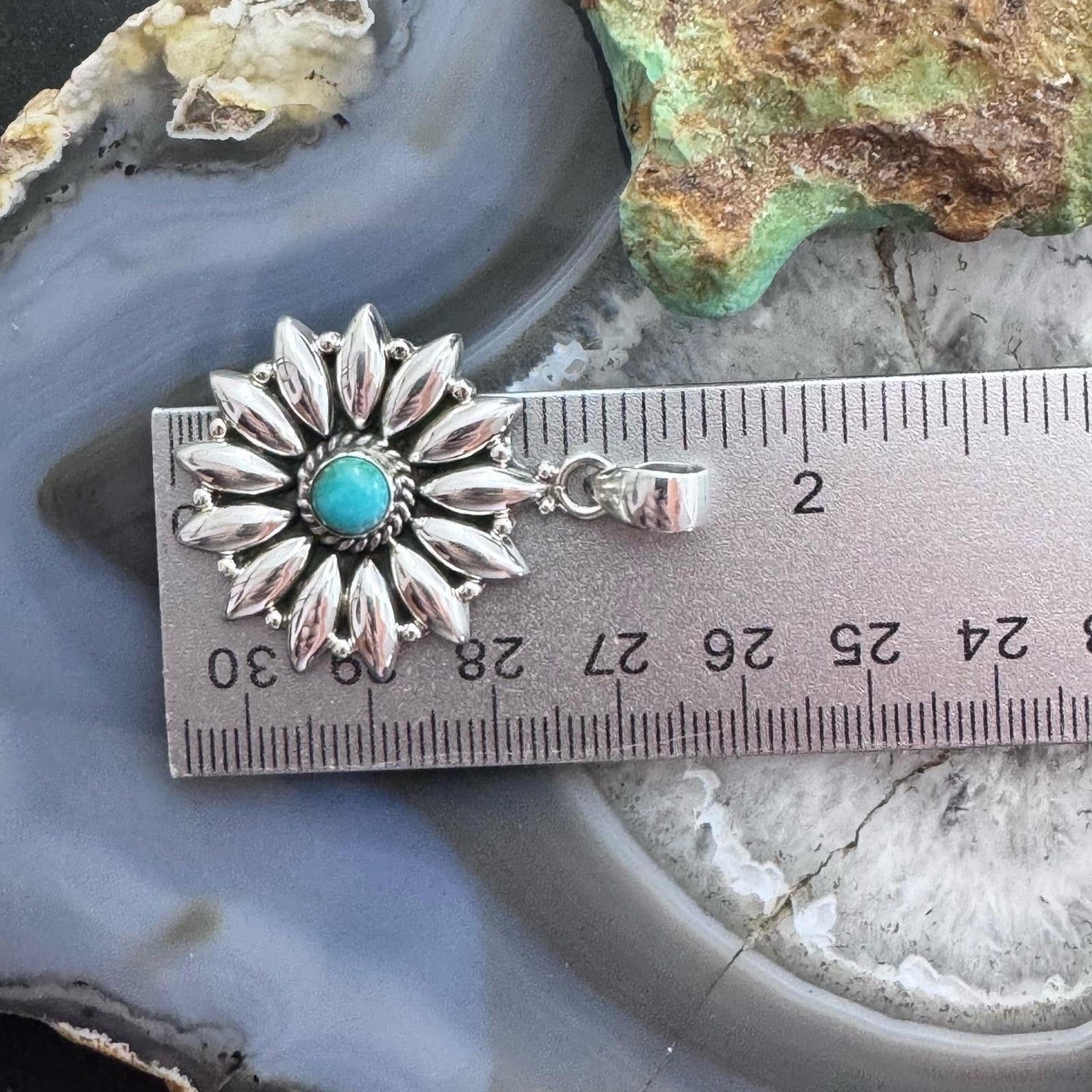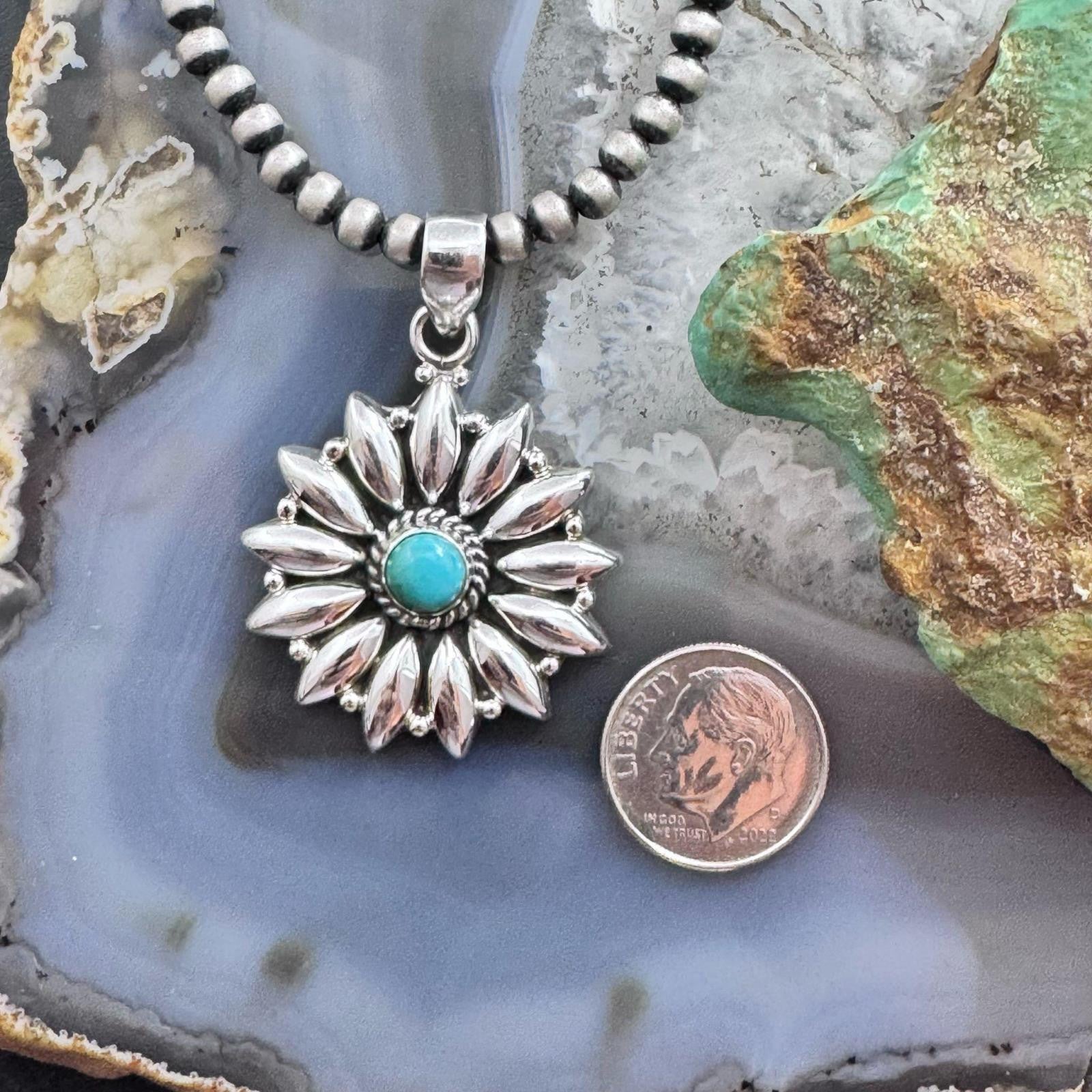 Sterling Silver Southwestern Style Rounded Turquoise Pendant Cluster For Women
