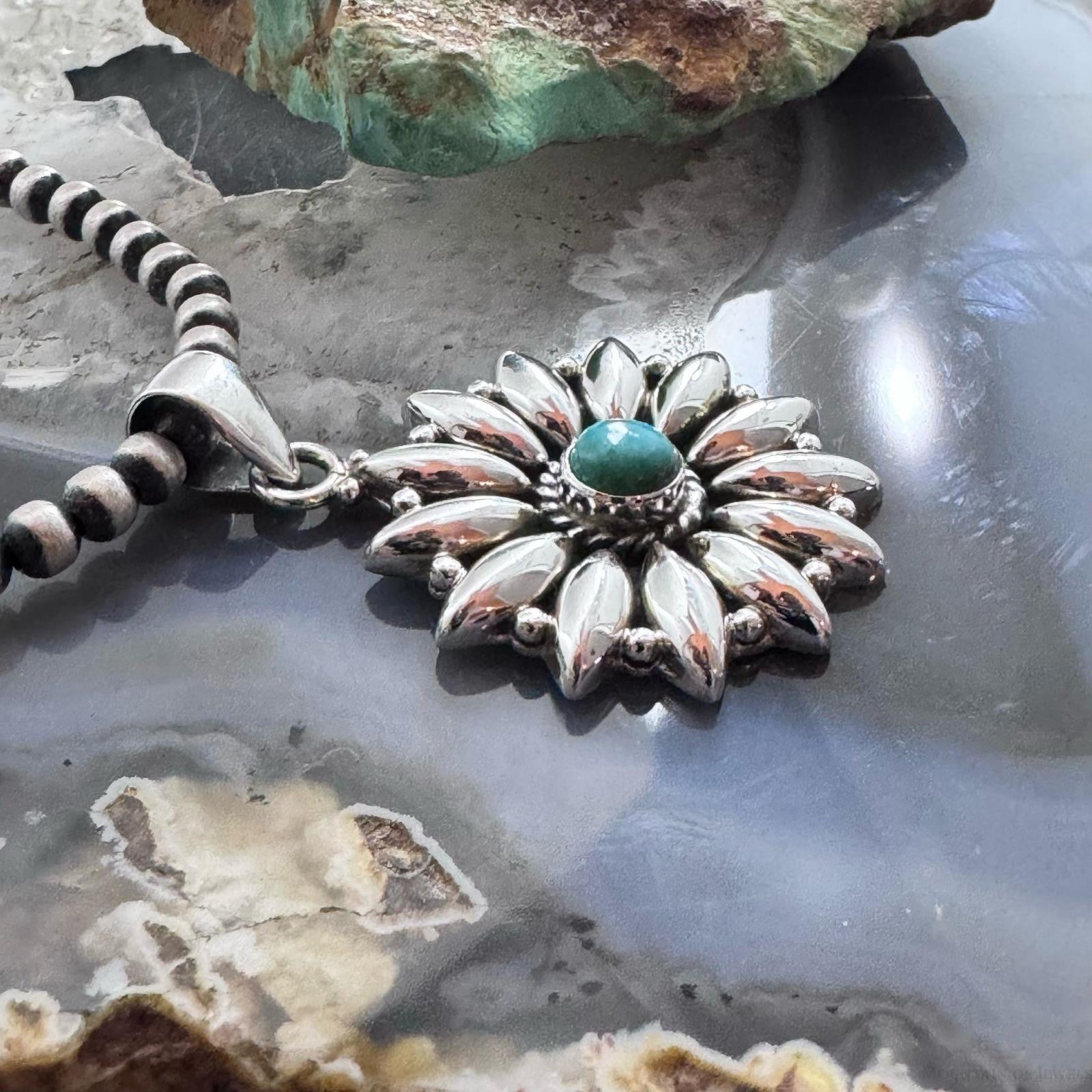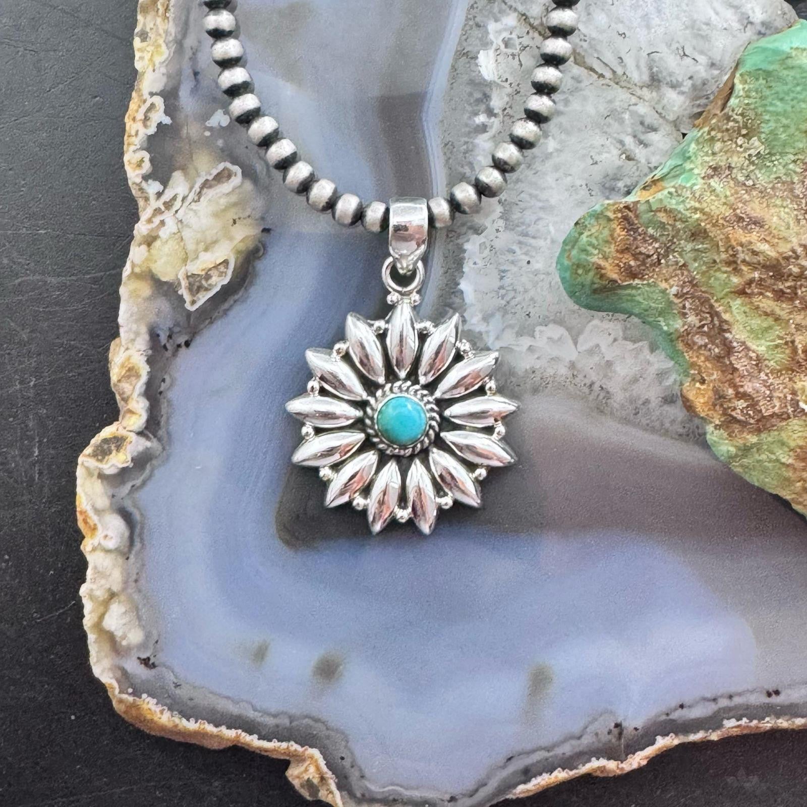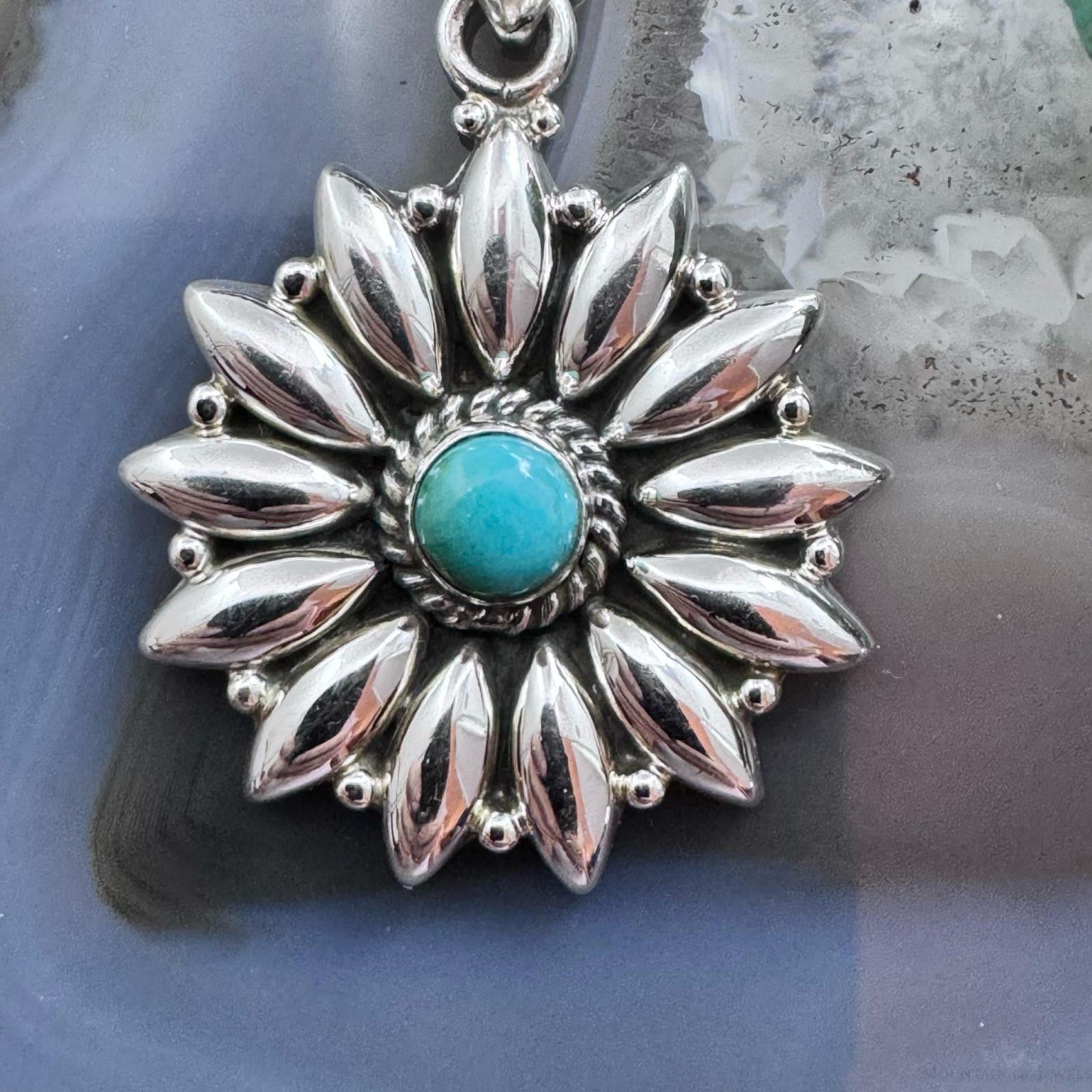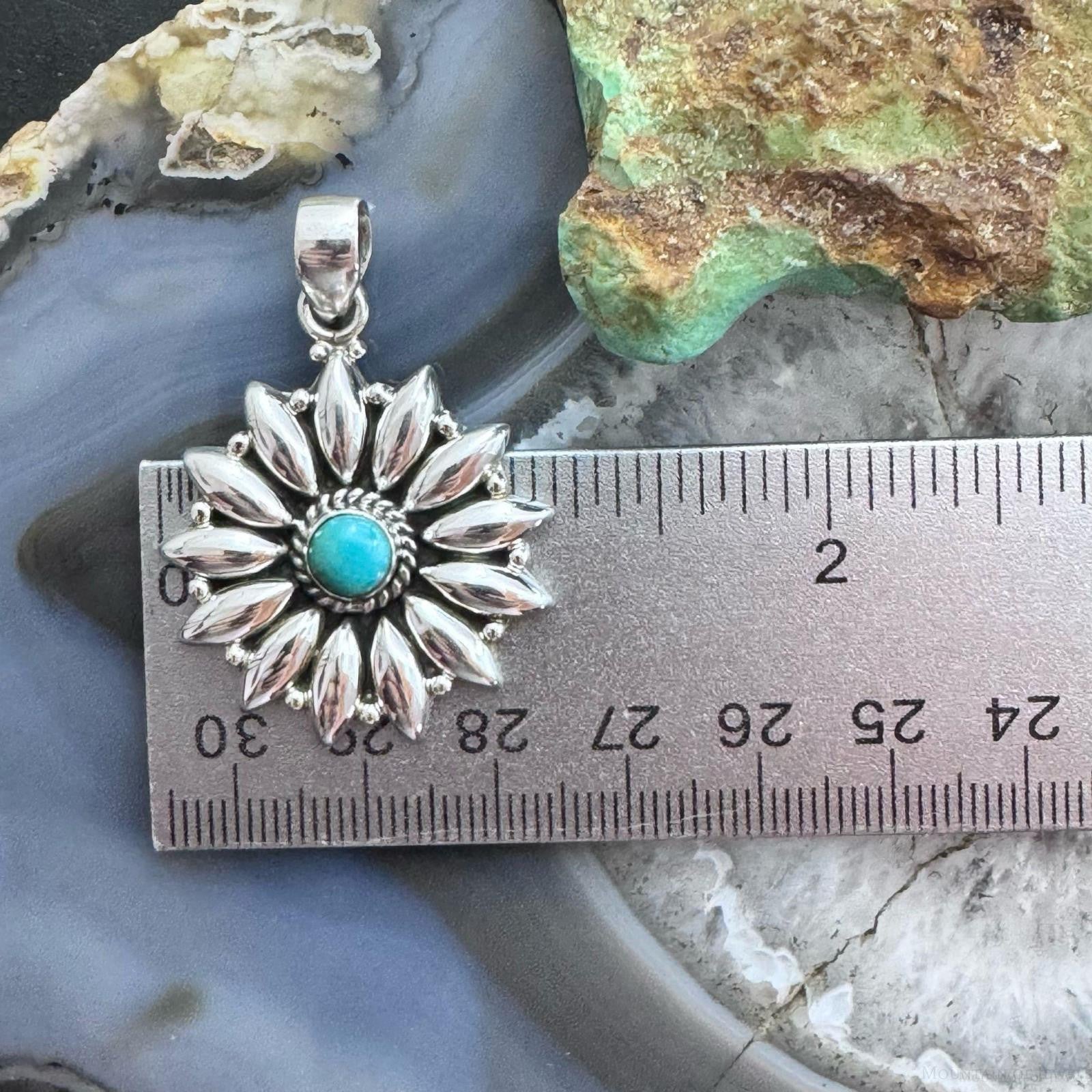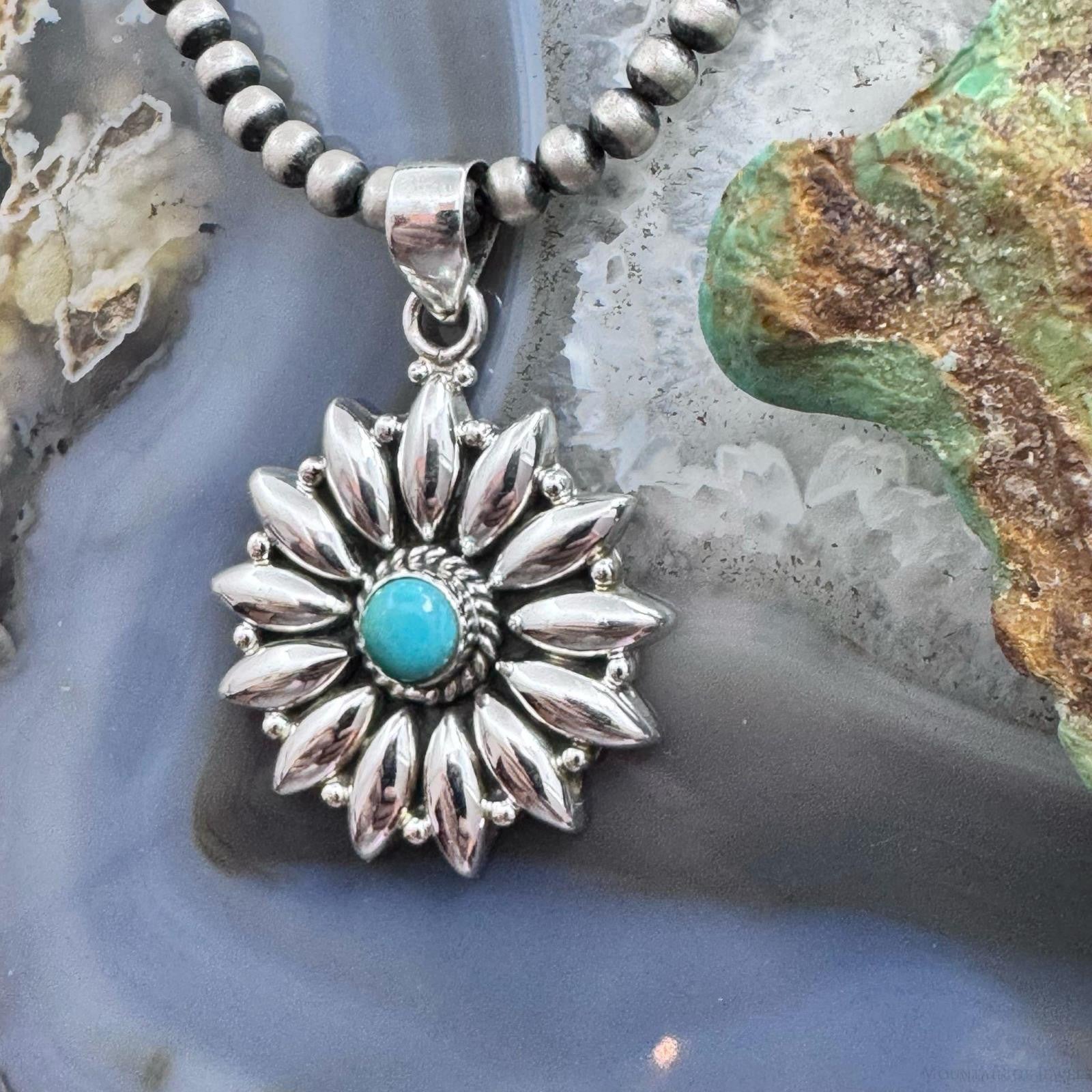 Sterling Silver Southwestern Style Rounded Turquoise Pendant Cluster For Women