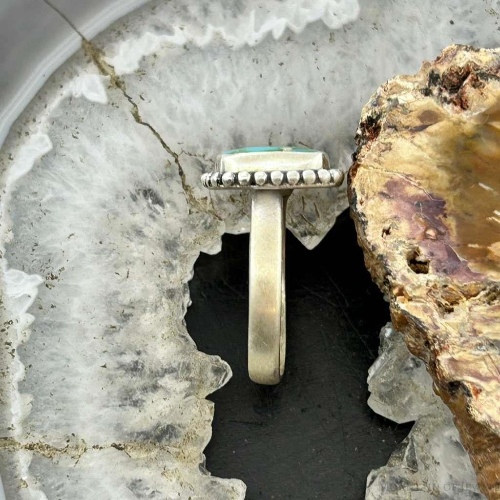 Sterling Silver Southwestern Style Sonora Gold Turquoise Adjustable Bar Ring For Women #8