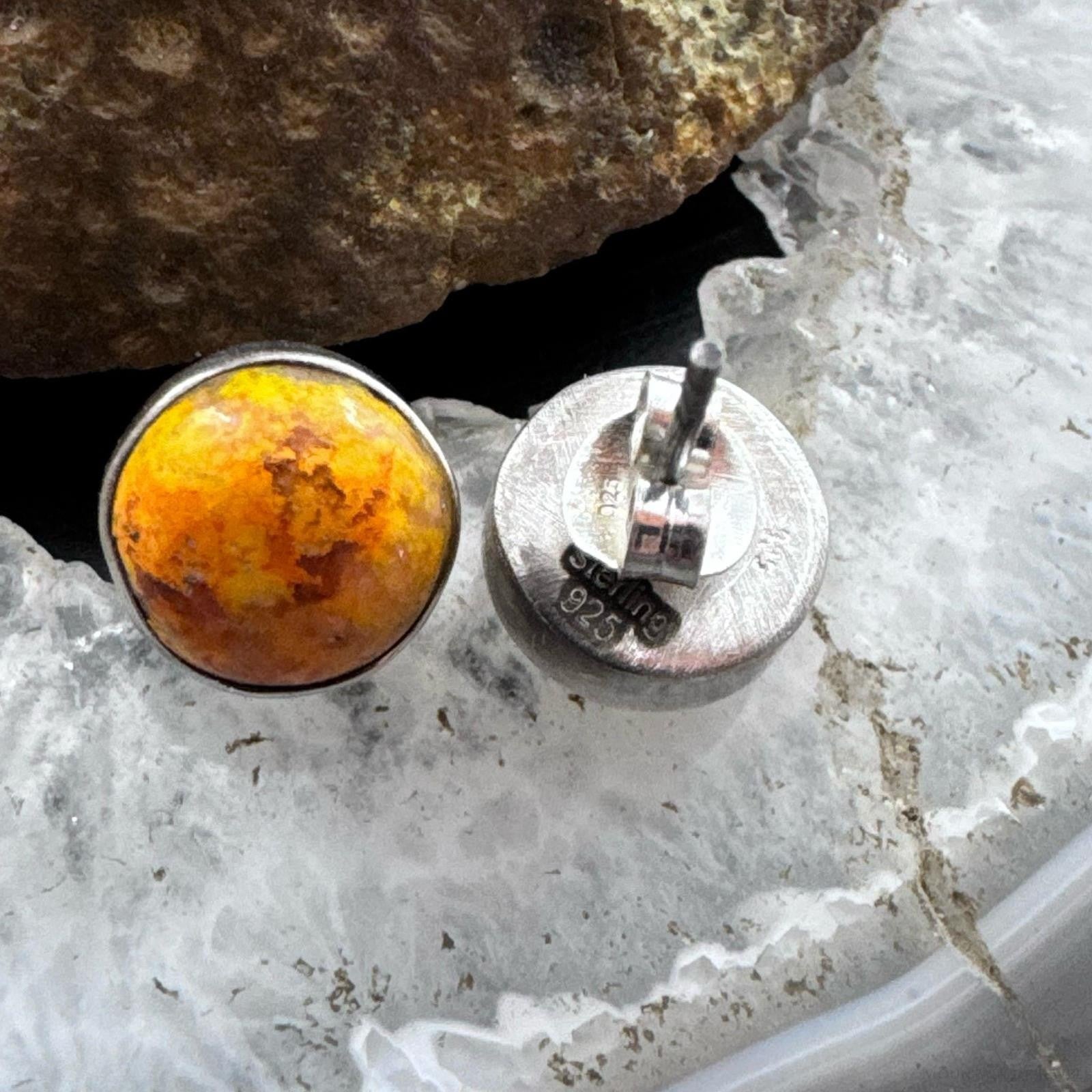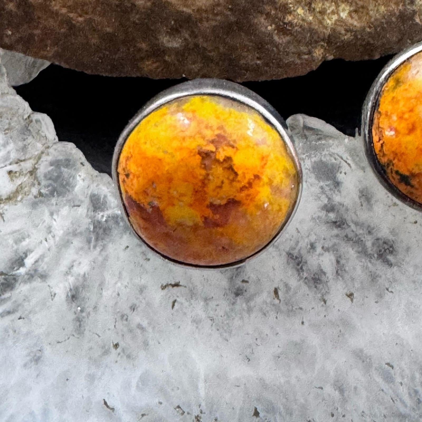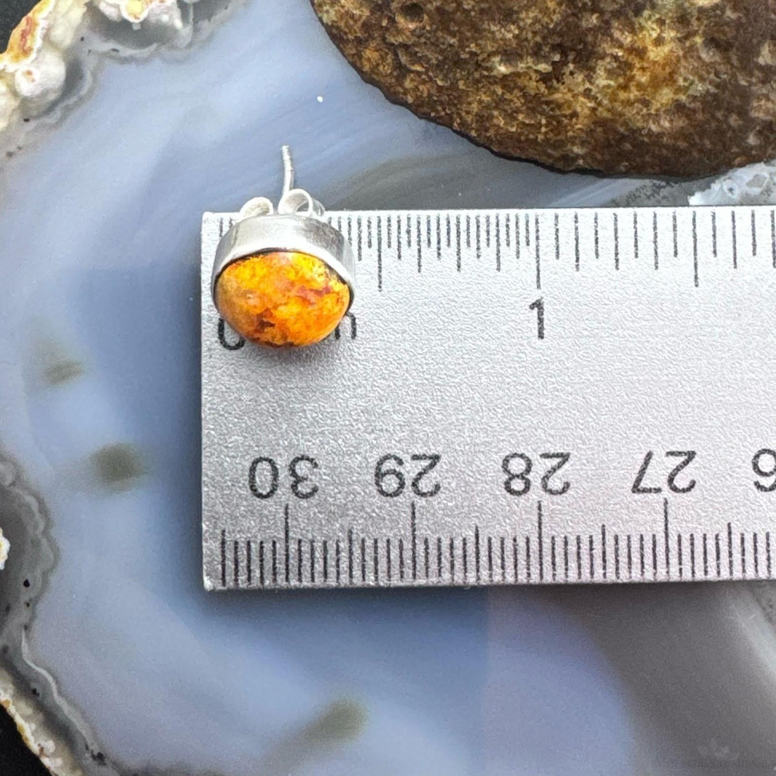 Sterling Silver Southwestern Style Spiny Oyster Rounded Stud Earrings For Women
