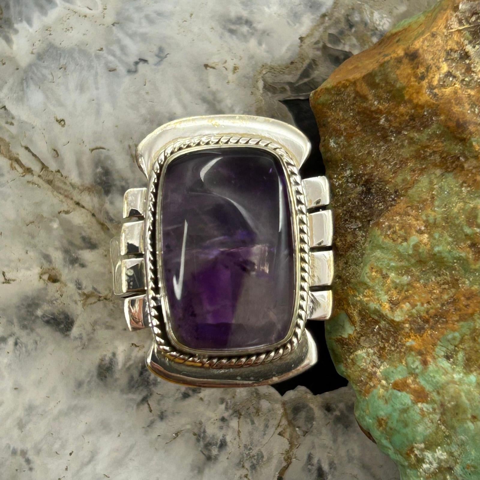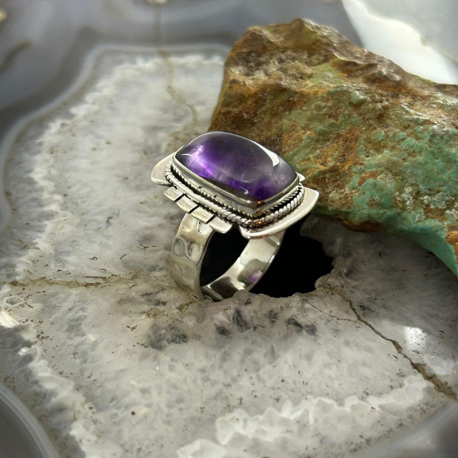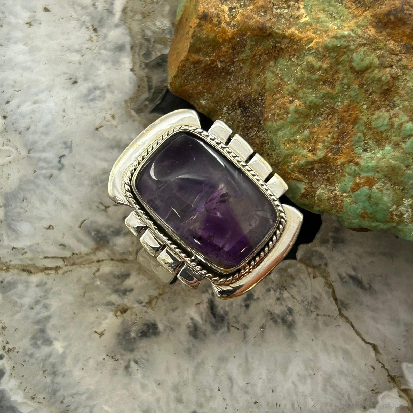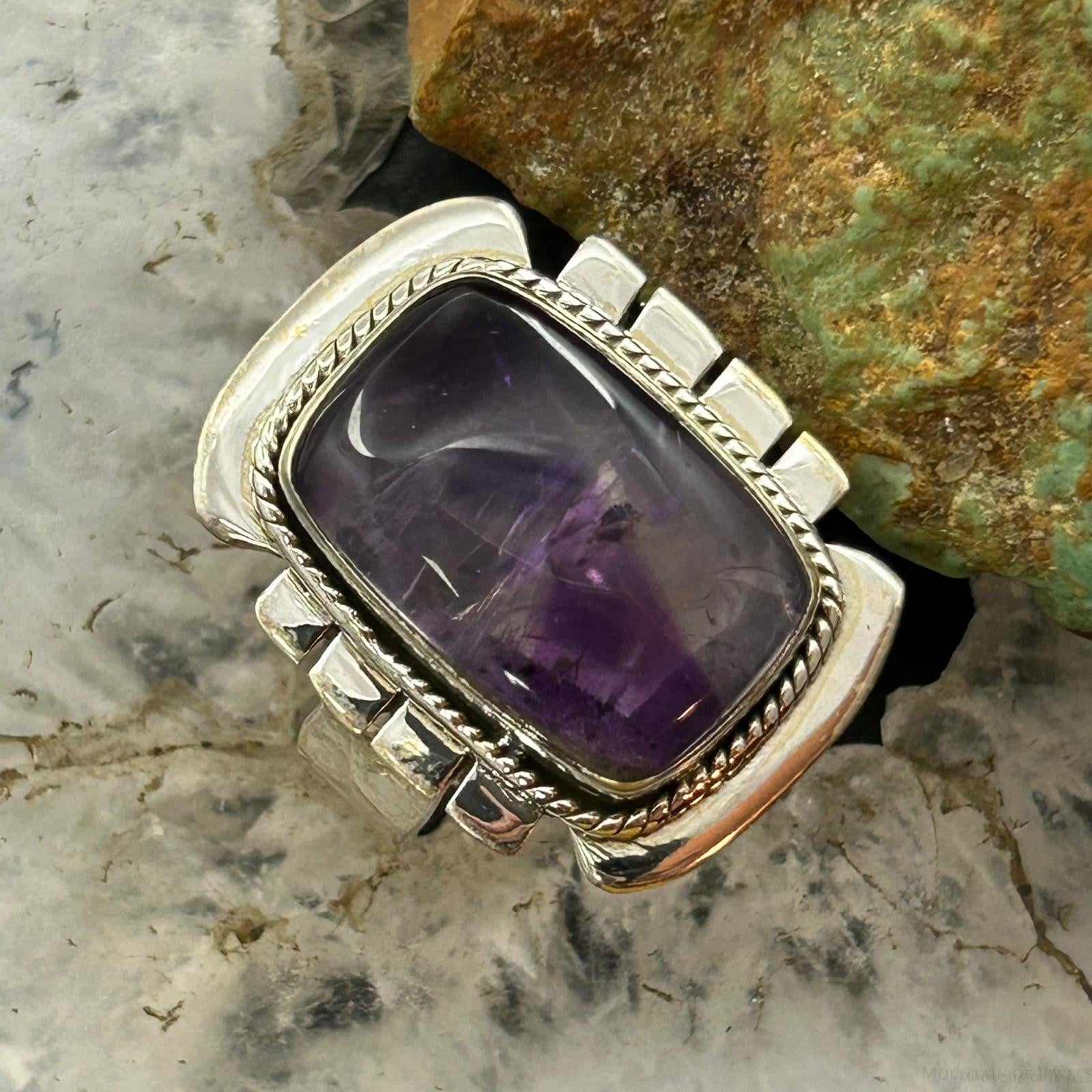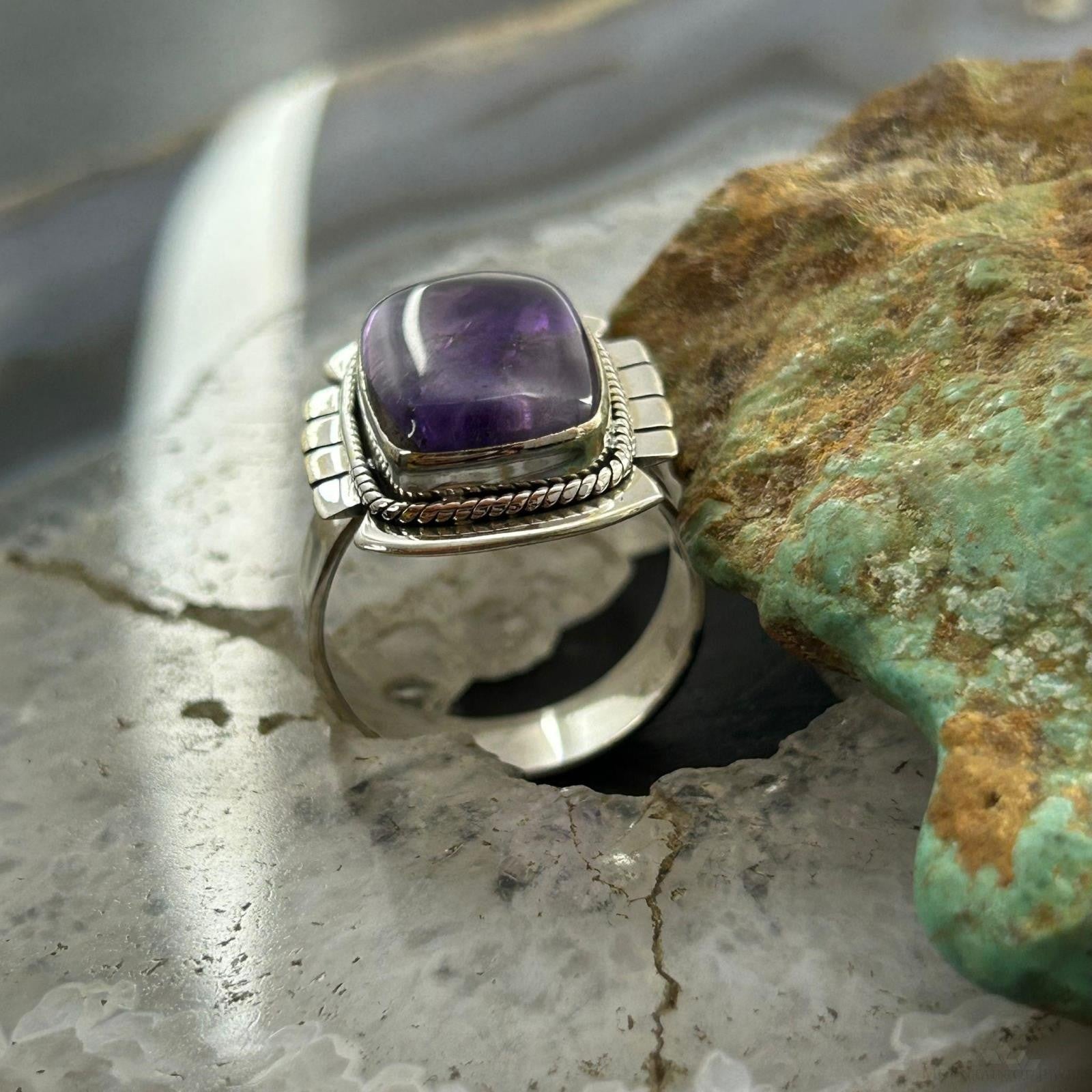 Sterling Silver Southwestern Style Star Amethyst Bar Ring Size 9 For Women