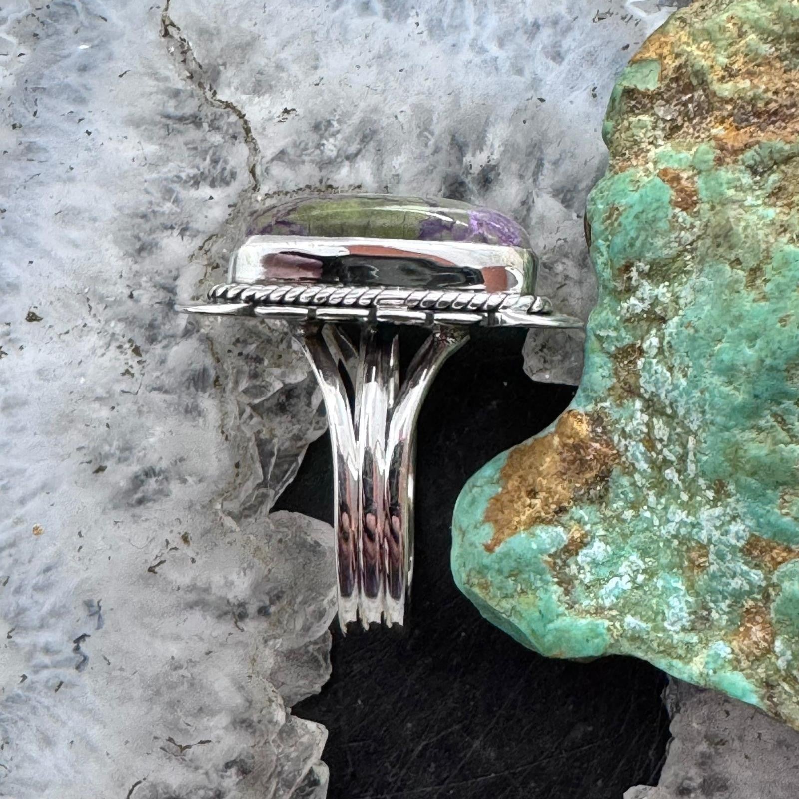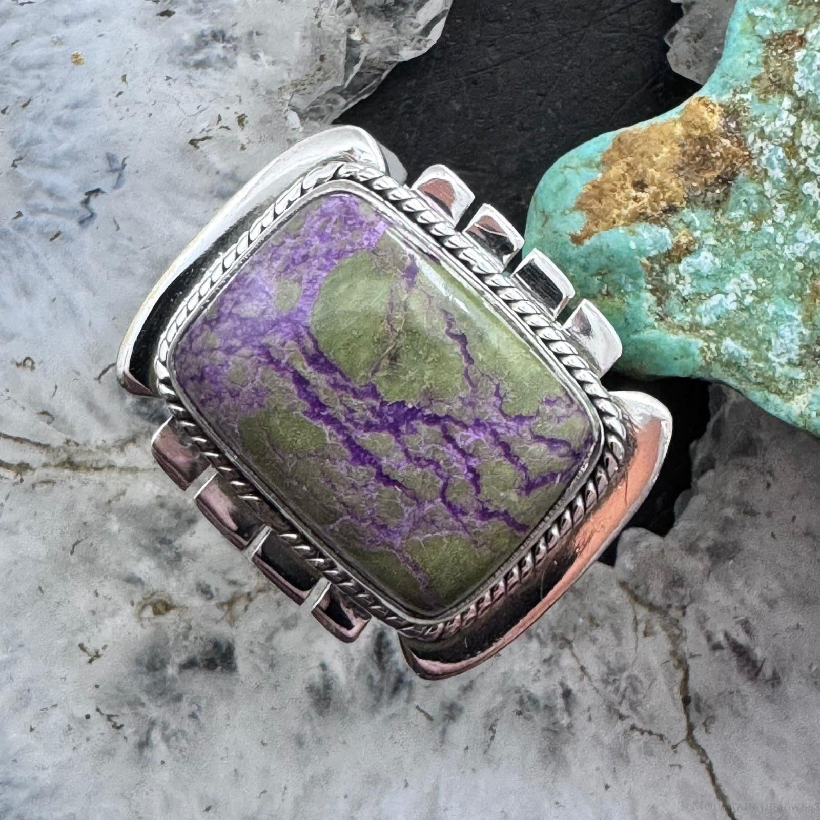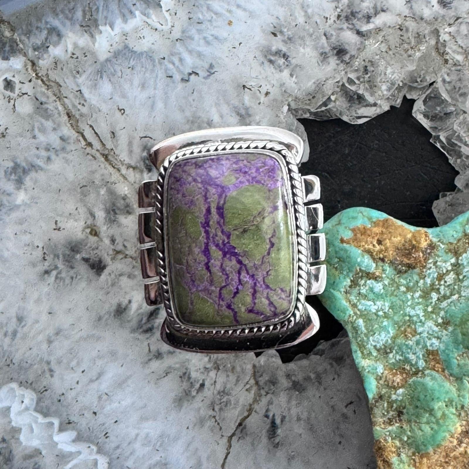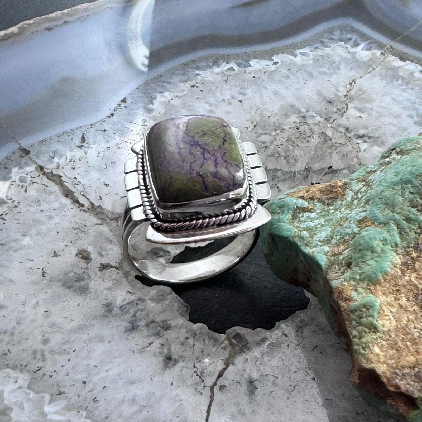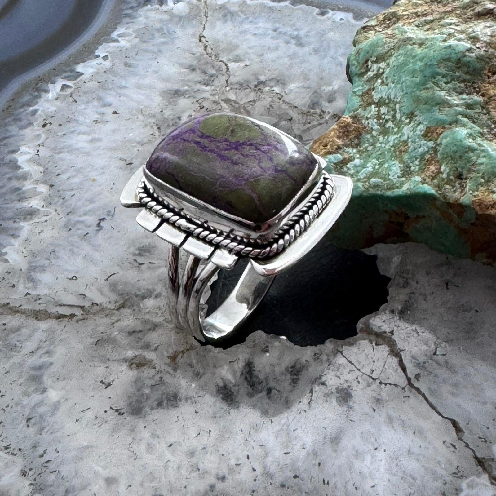 Sterling Silver Southwestern Style Stichtite Bar Ring Size 8.75 For Women
