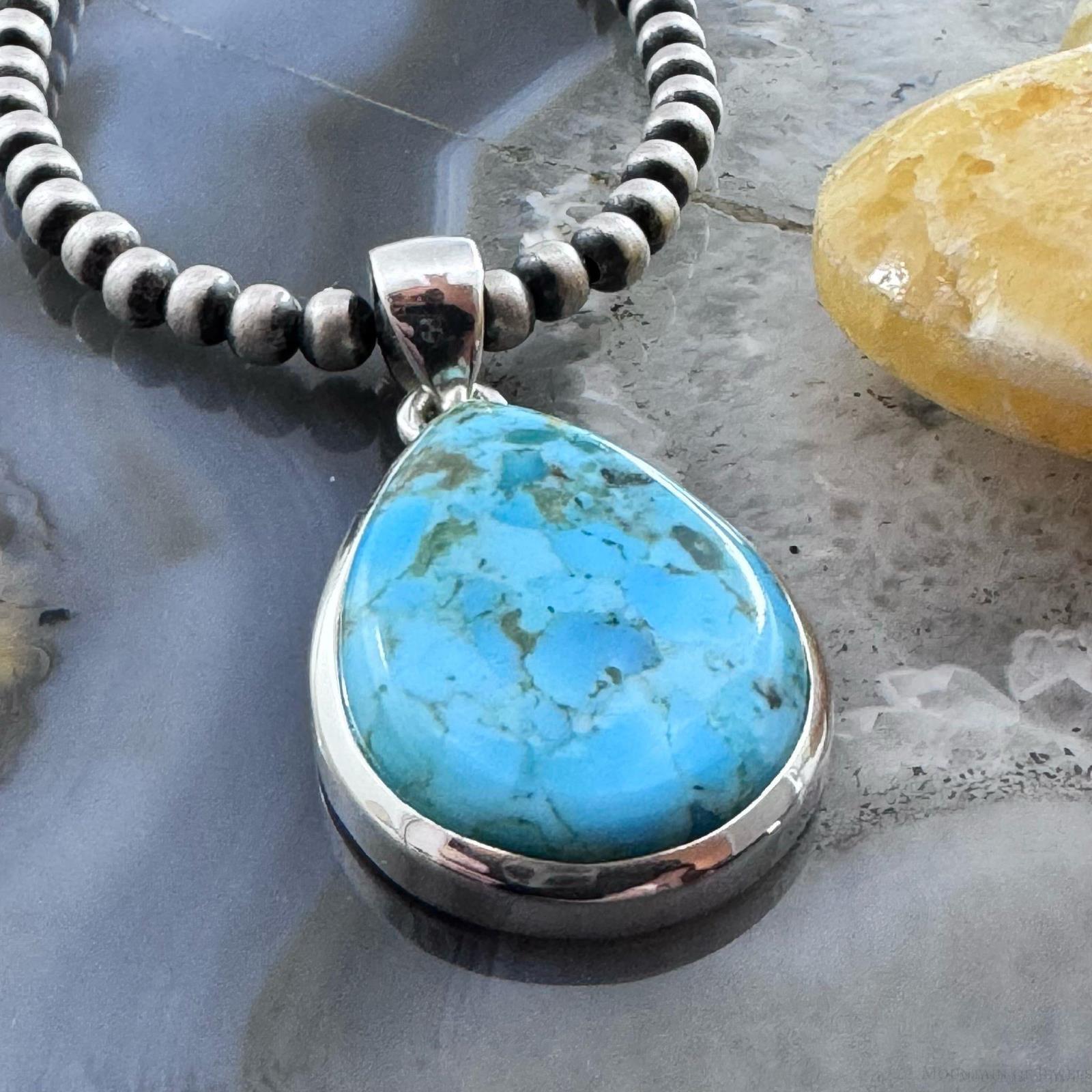 Sterling Silver Southwestern Style Teardrop Apatite Decorated Pendant For Women