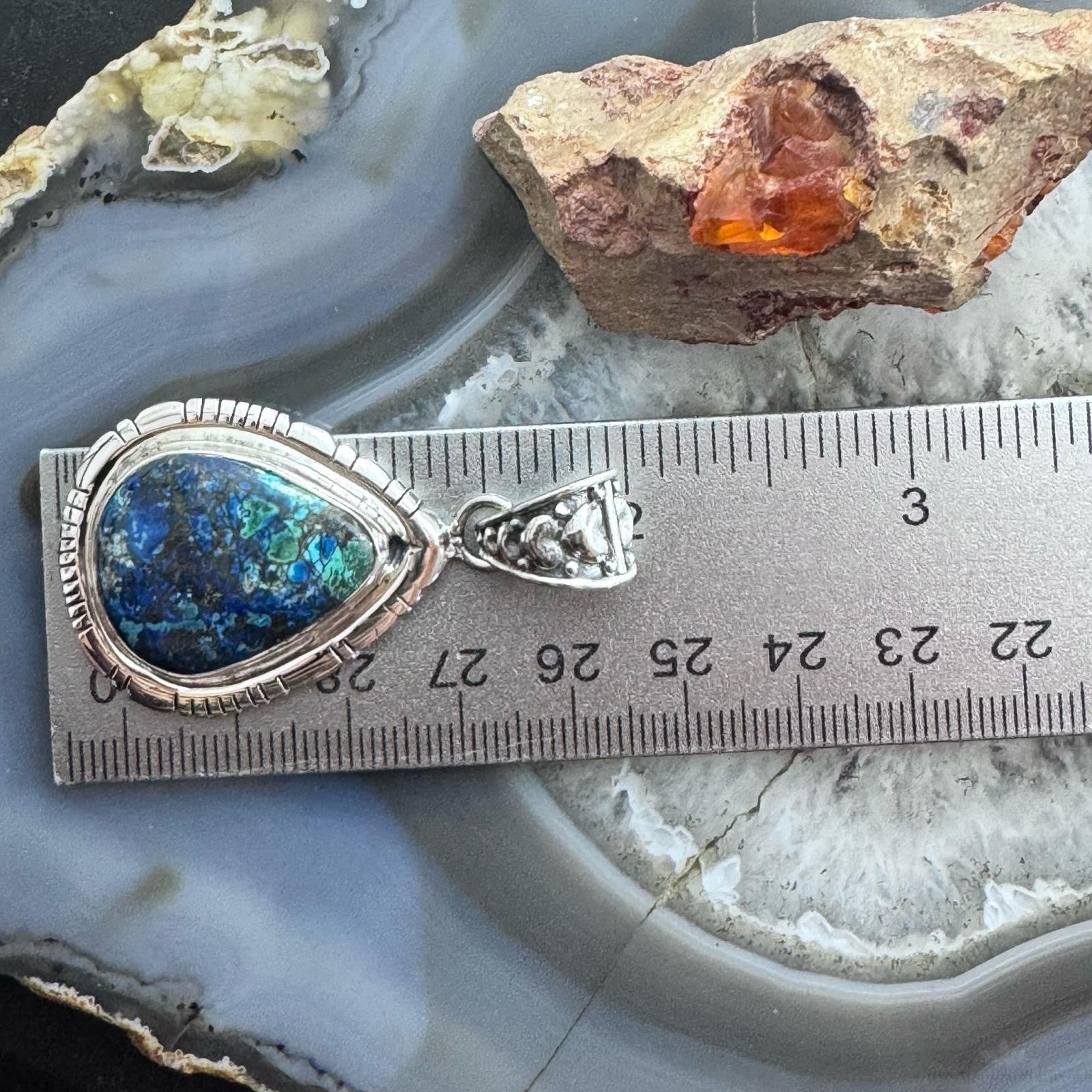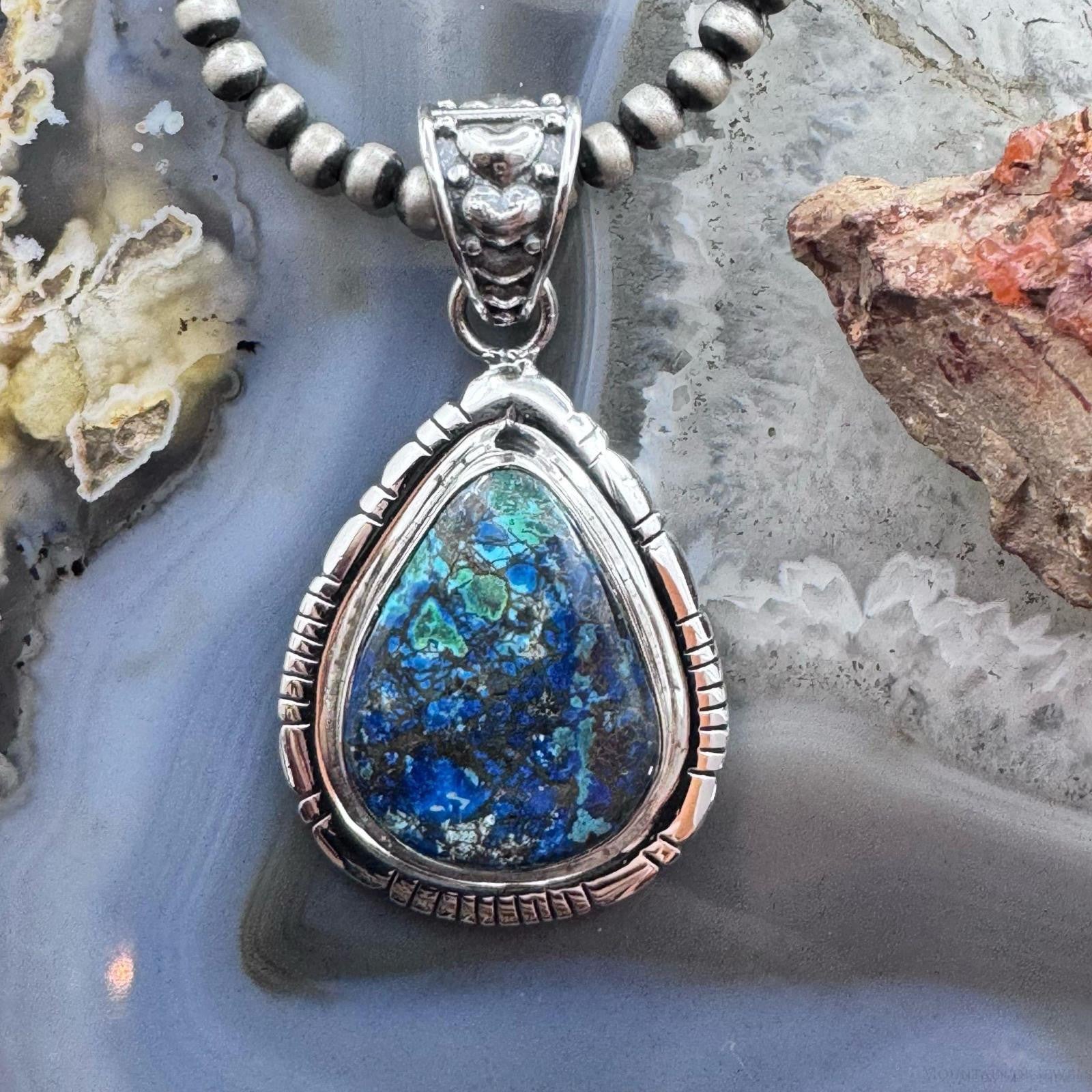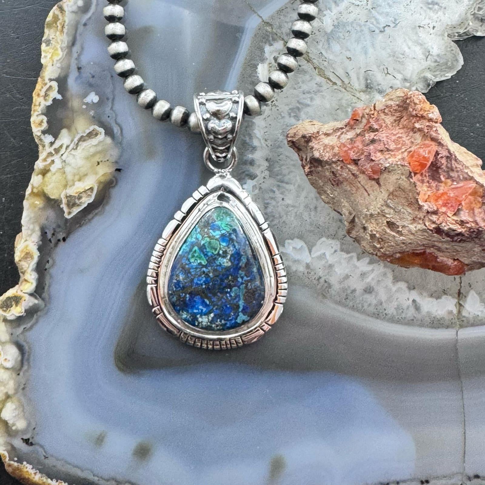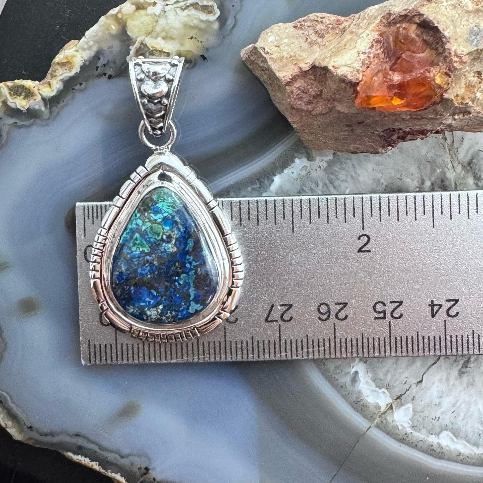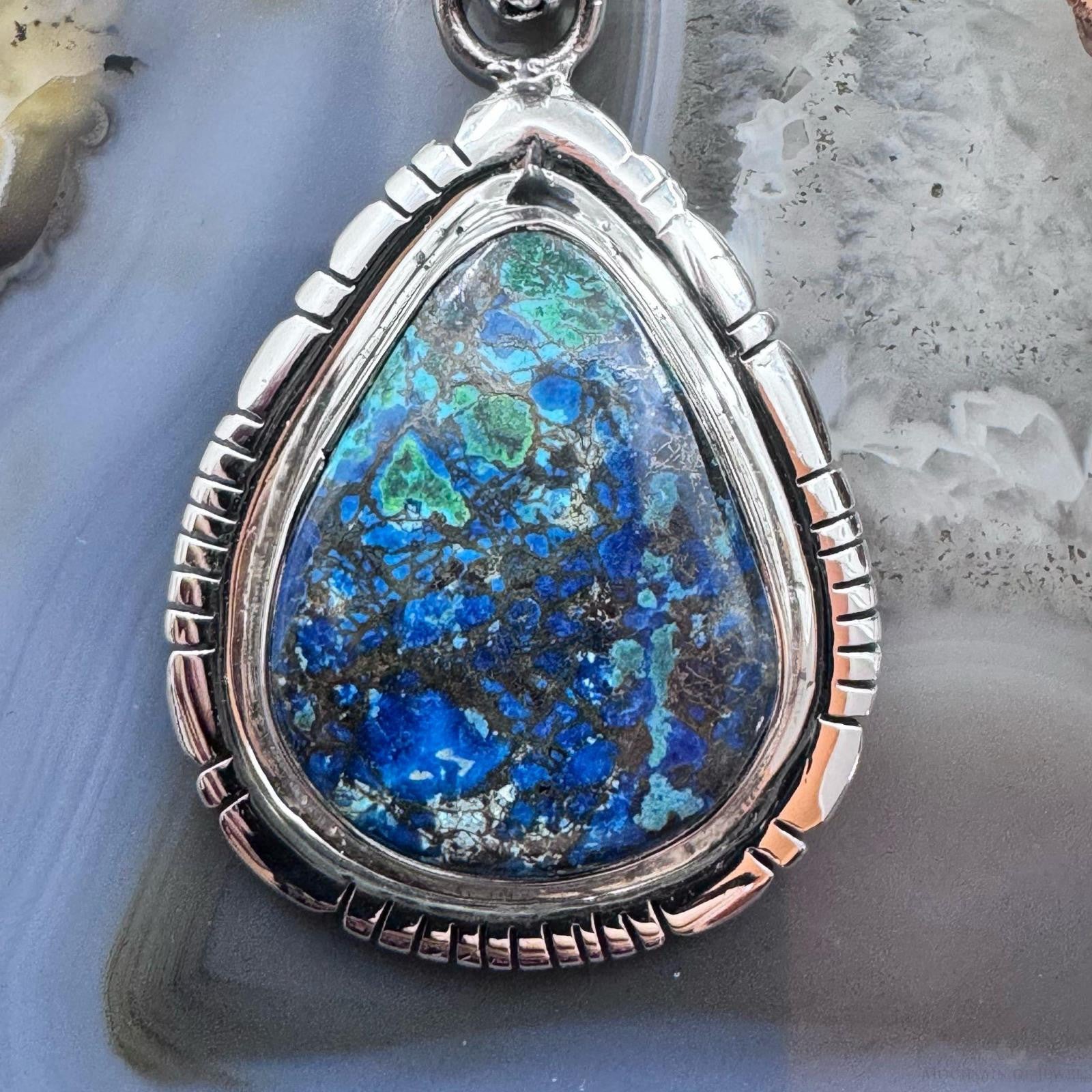 Sterling Silver Southwestern Style Teardrop Azurite Malachite Decorated Pendant