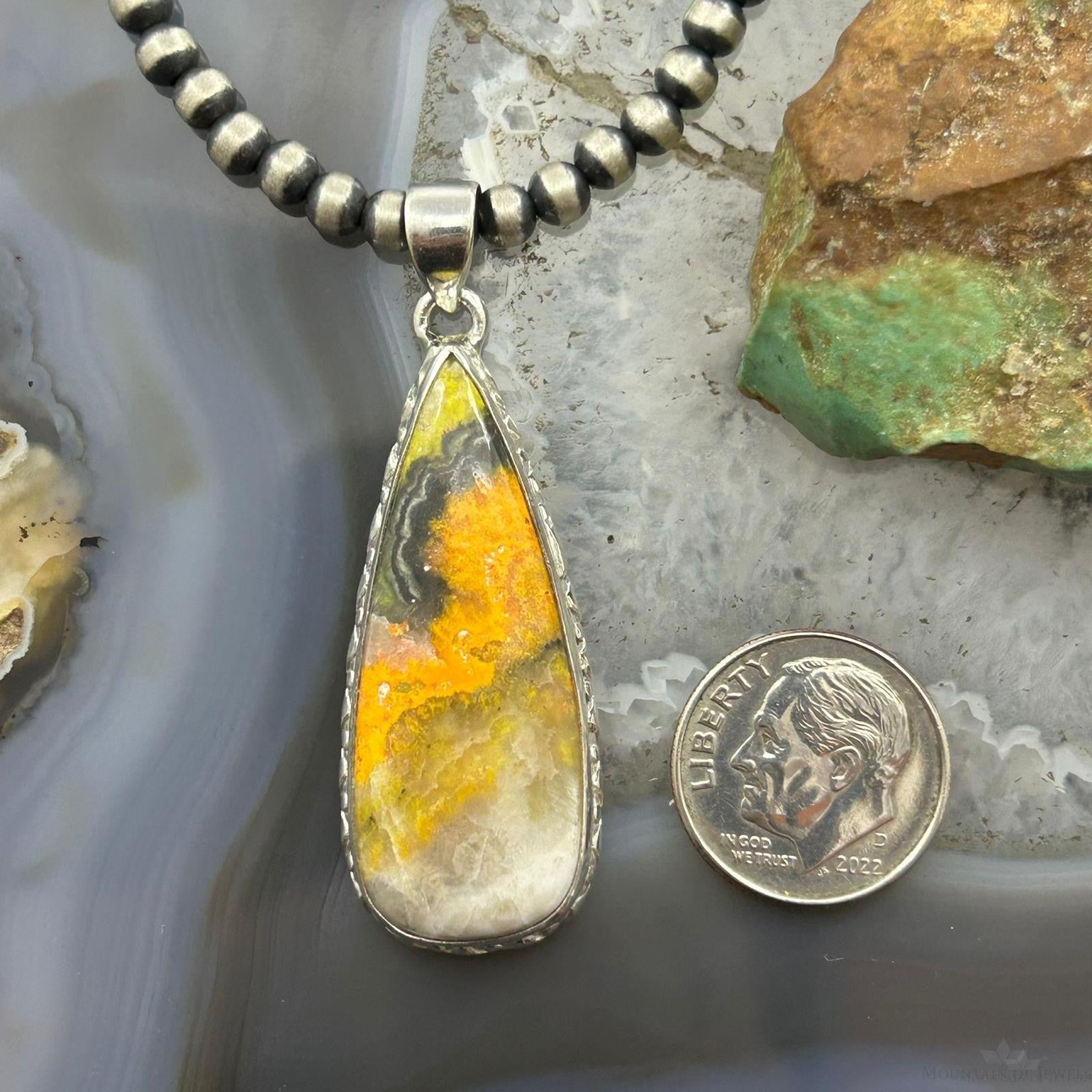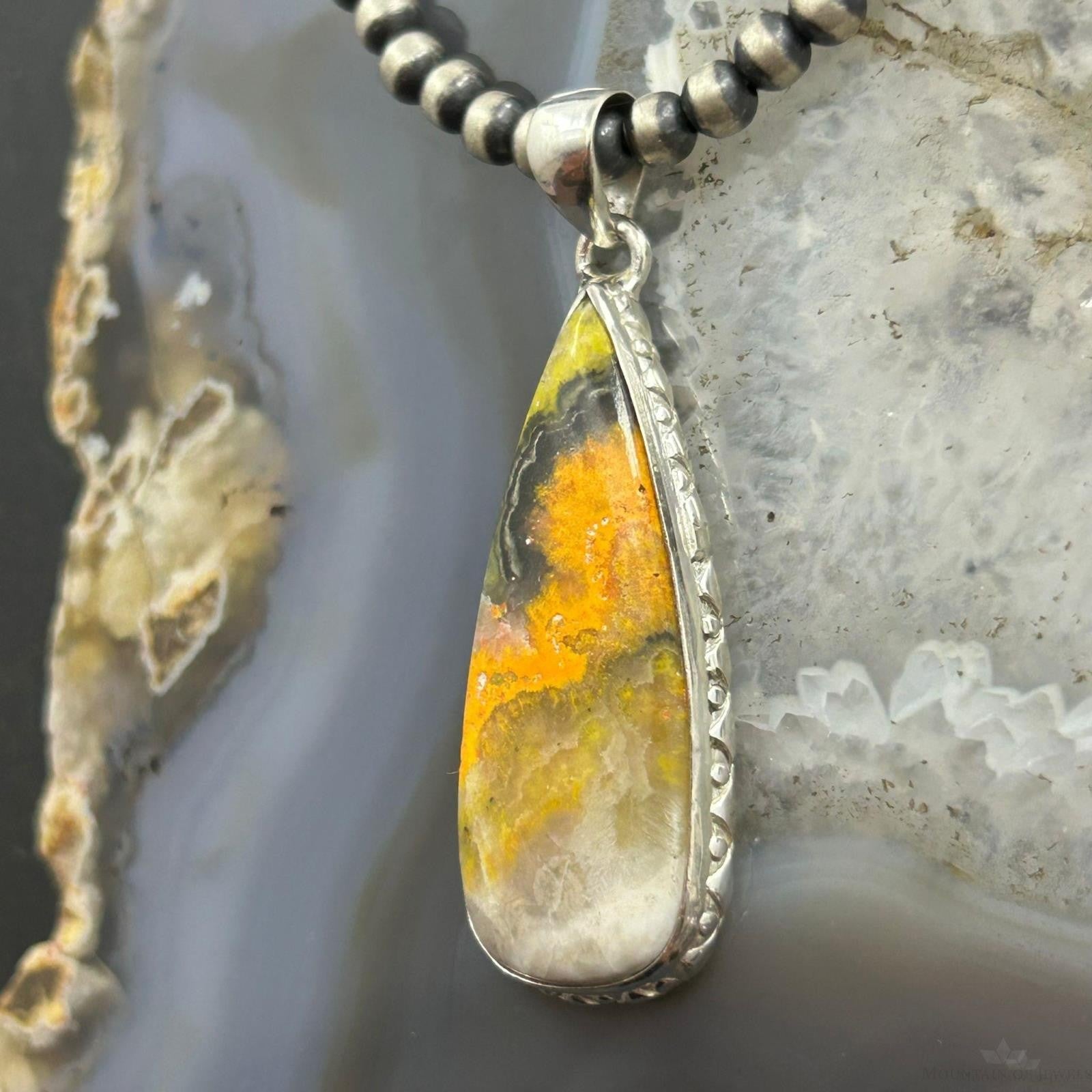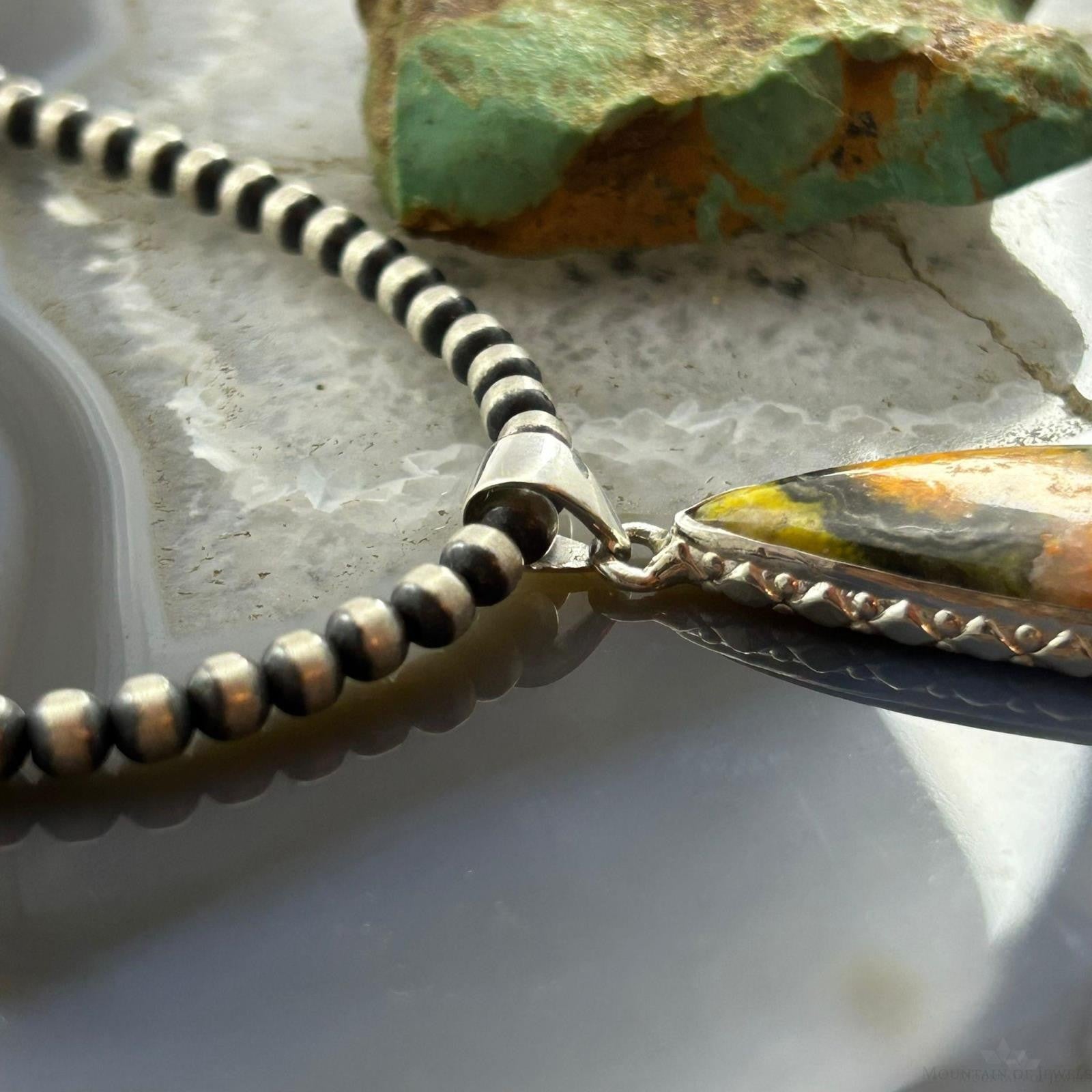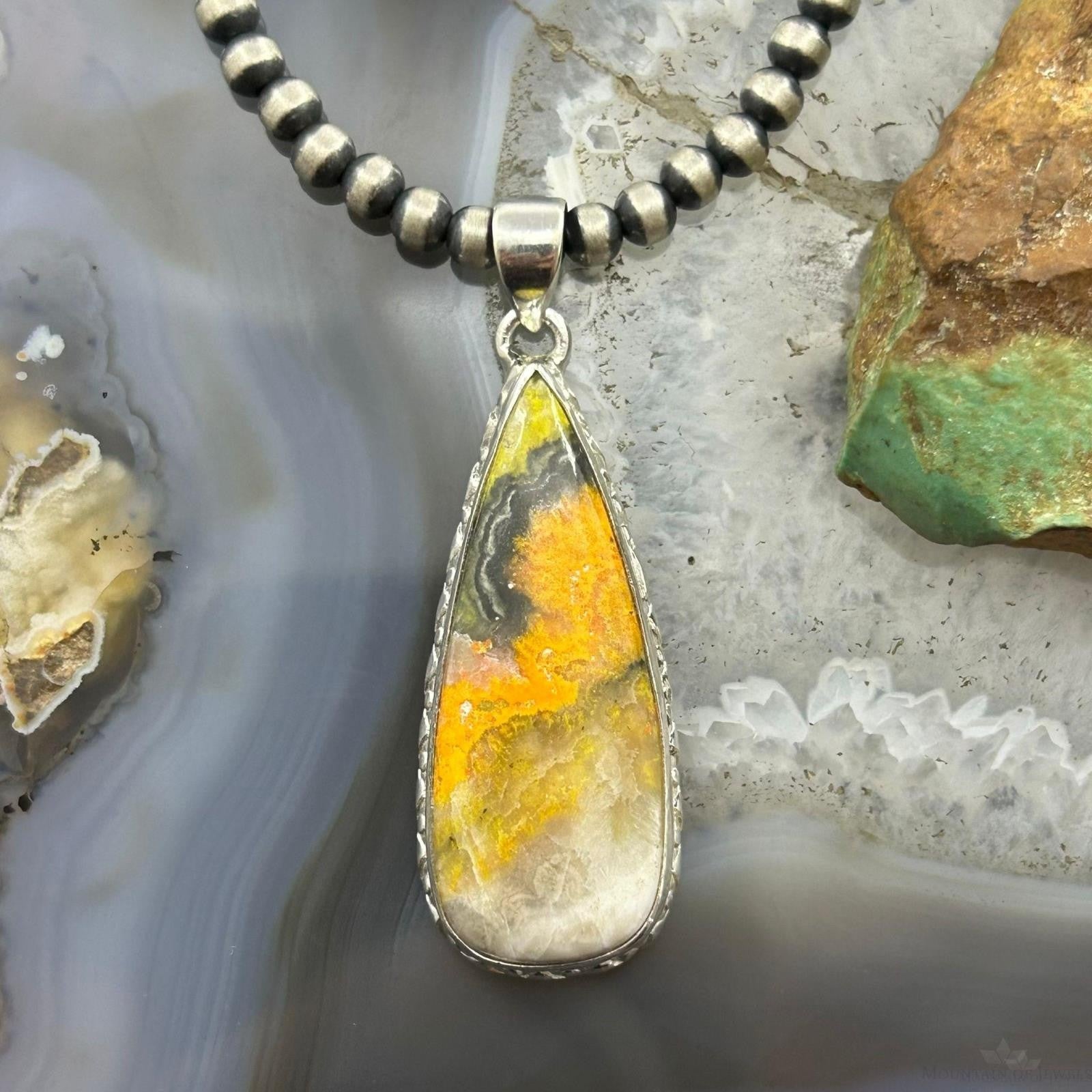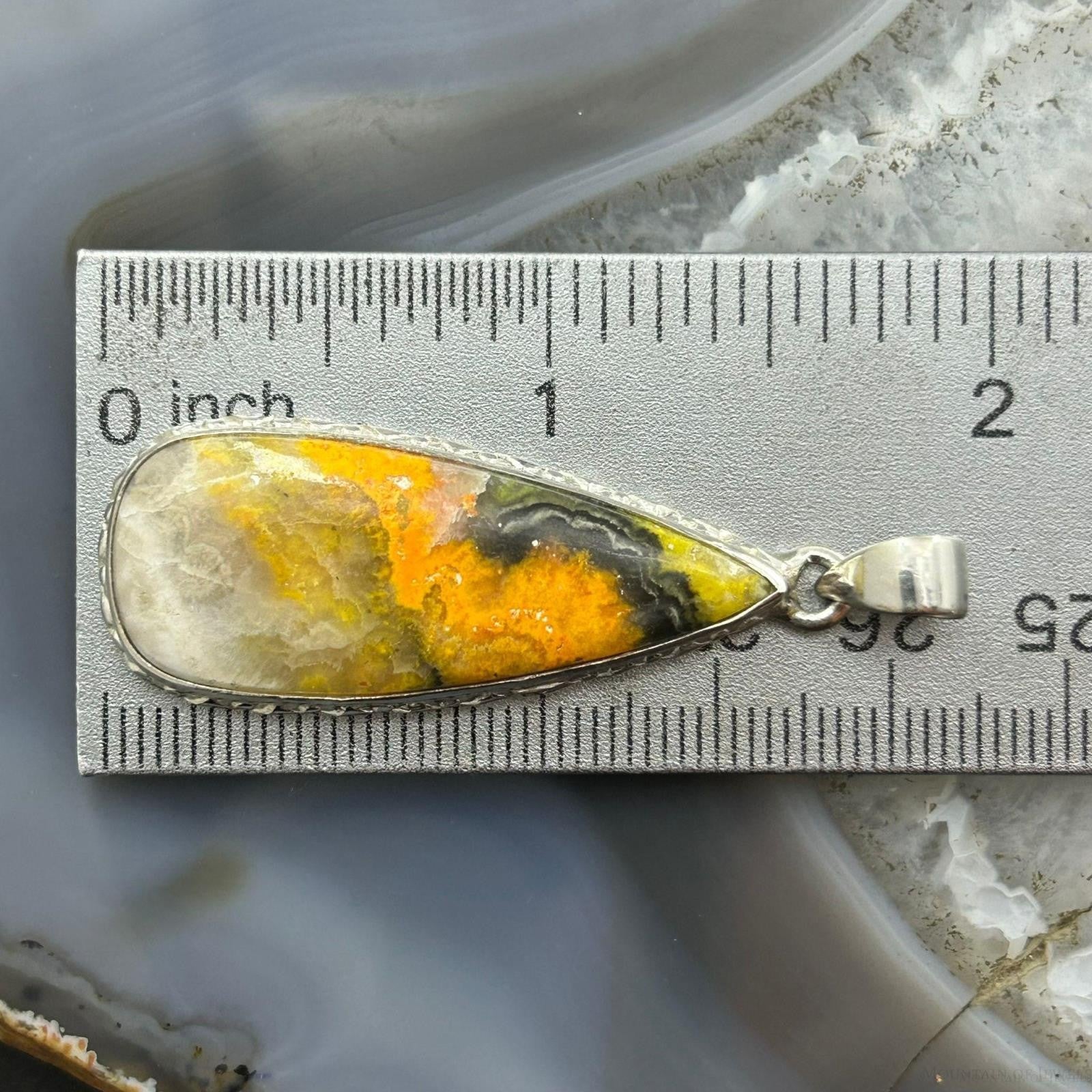 Vibrant Sterling Silver Southwestern Style Teardrop Bumblebee Jasper Decorated Pendant For Women.