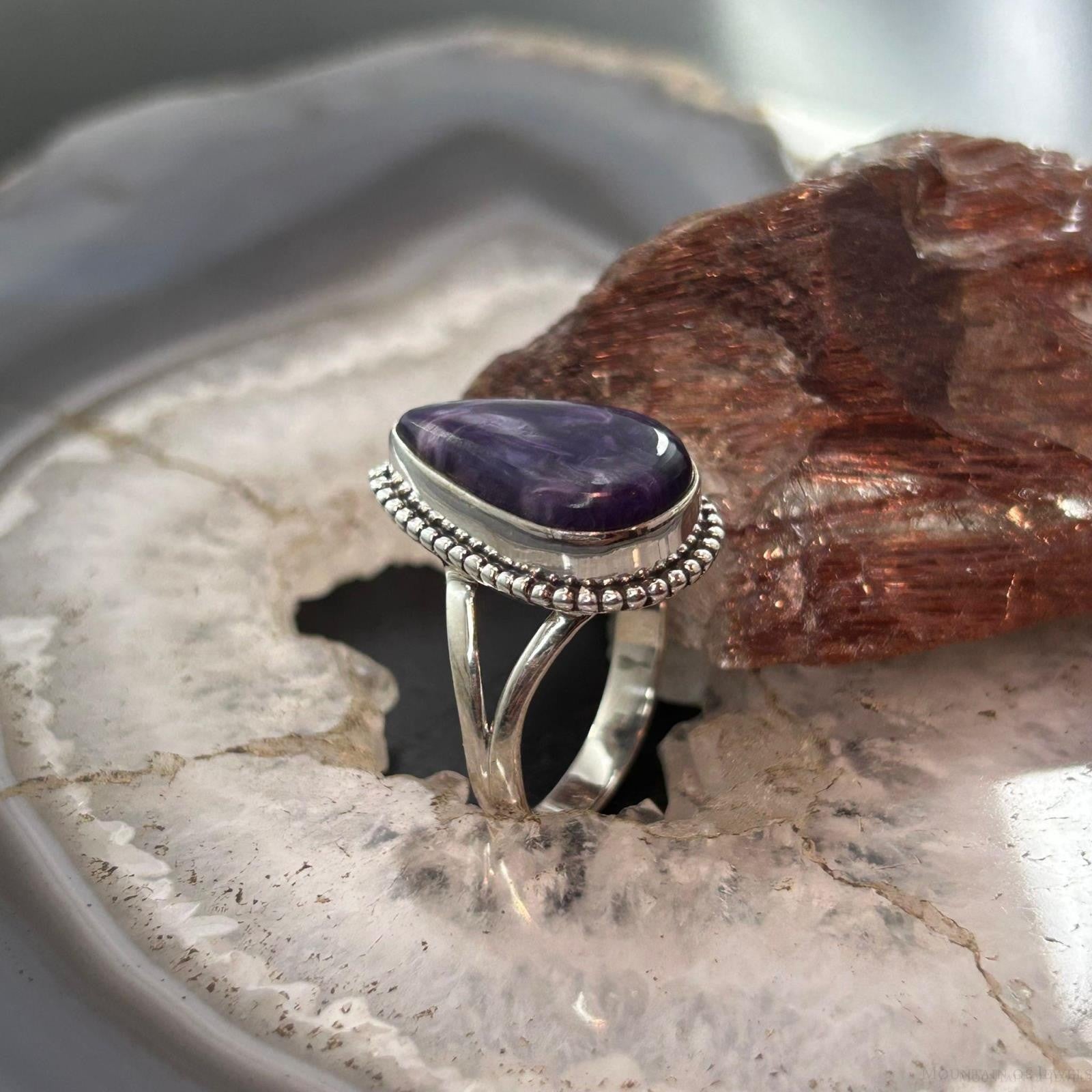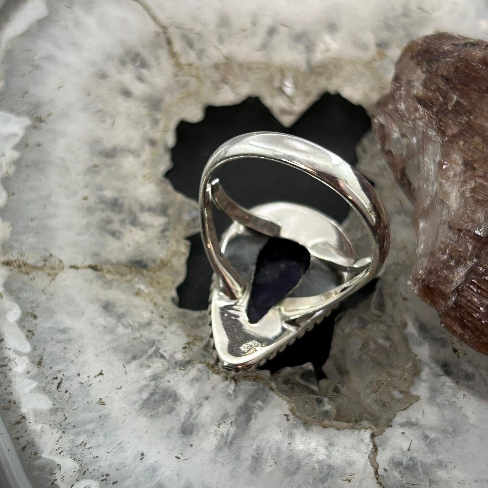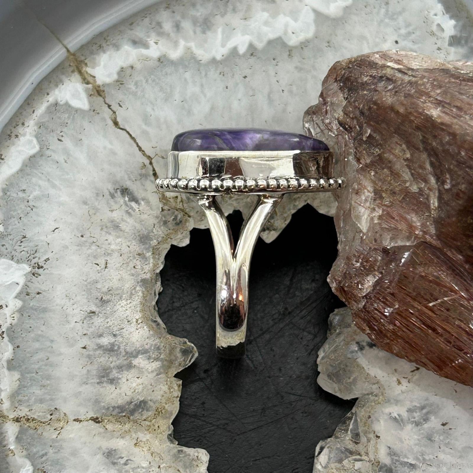 Sterling Silver Southwestern Style Teardrop Charoite Ring Size 8.5 For Women