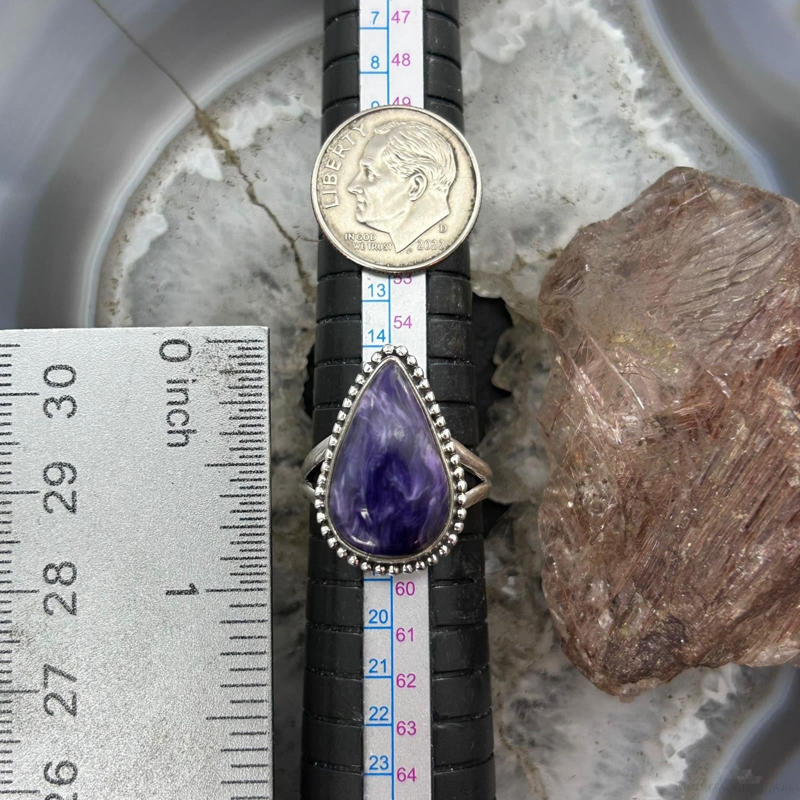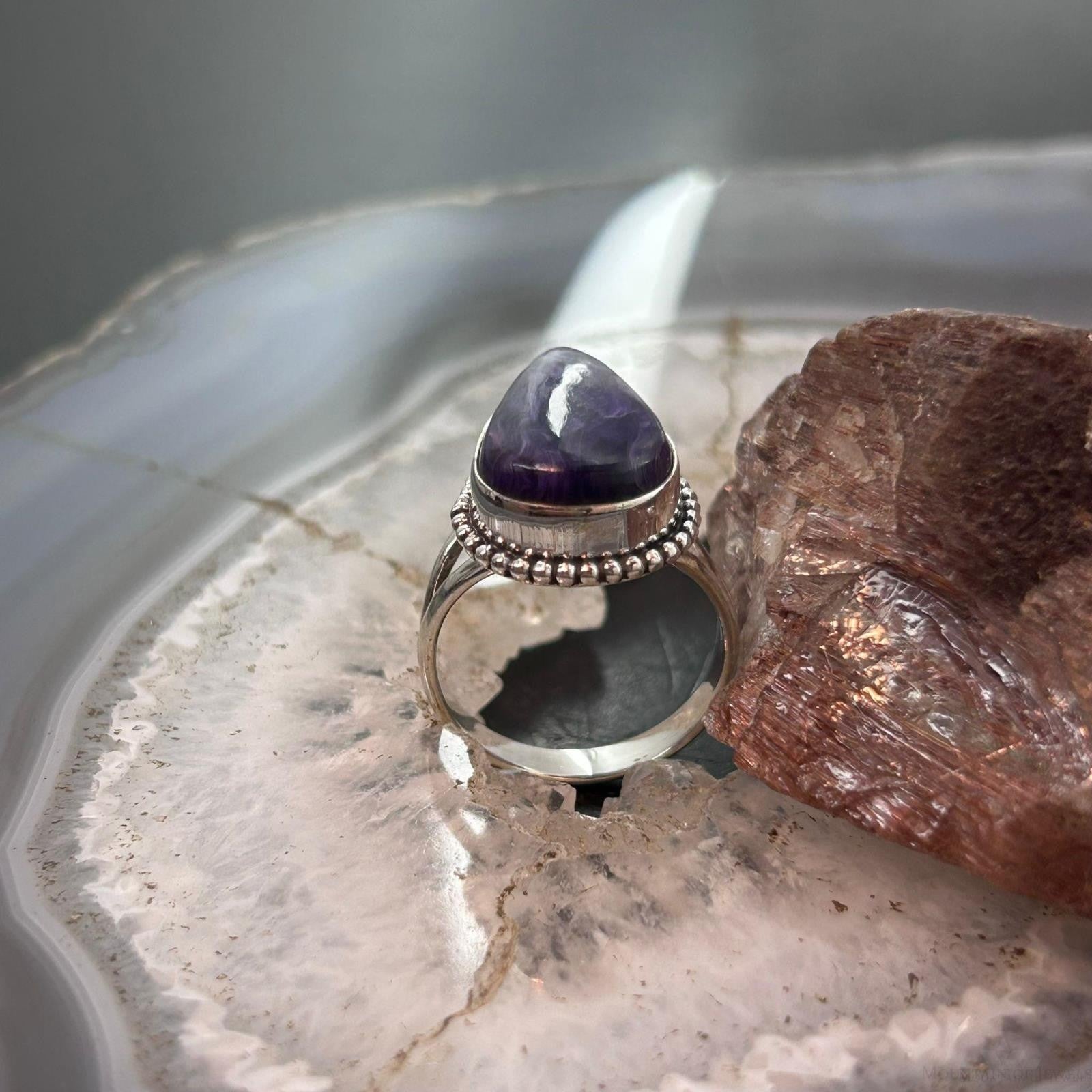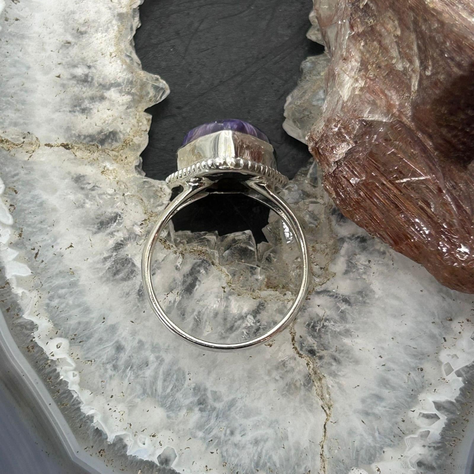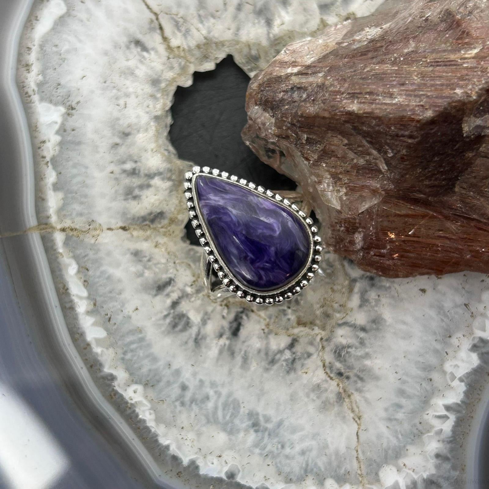 Sterling Silver Southwestern Style Teardrop Charoite Ring Size 8.5 For Women