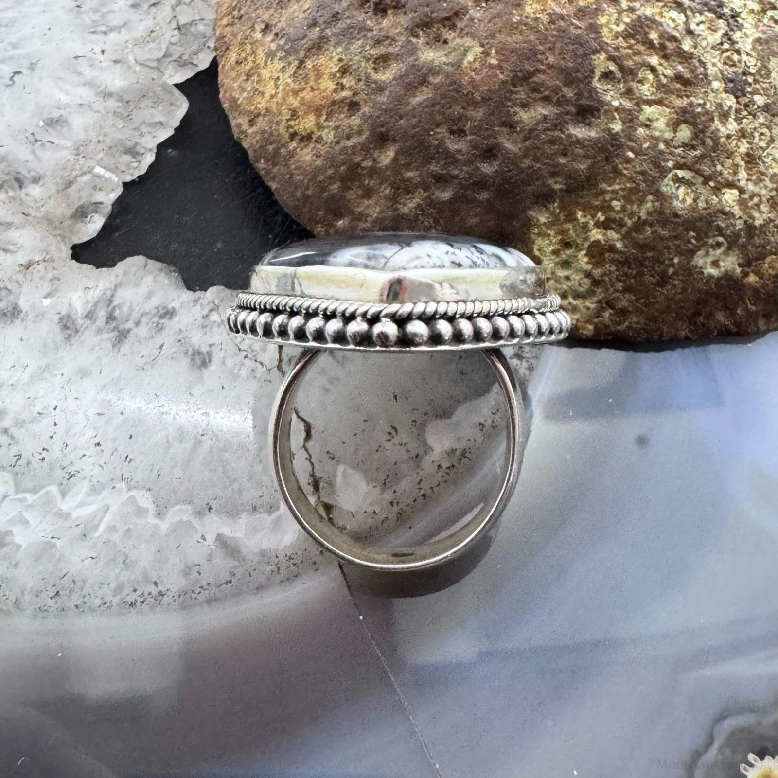 Sterling Silver Southwestern Style Teardrop Dendrite Agate Ring Size 7.5 For Women