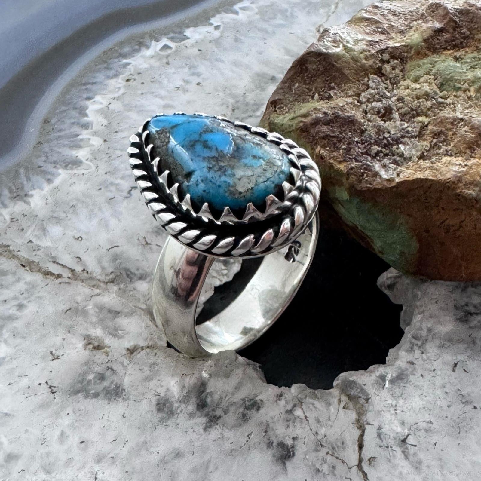 Sterling Silver Southwestern Style Teardrop Kingman Turquoise Ring Size 9 For Women