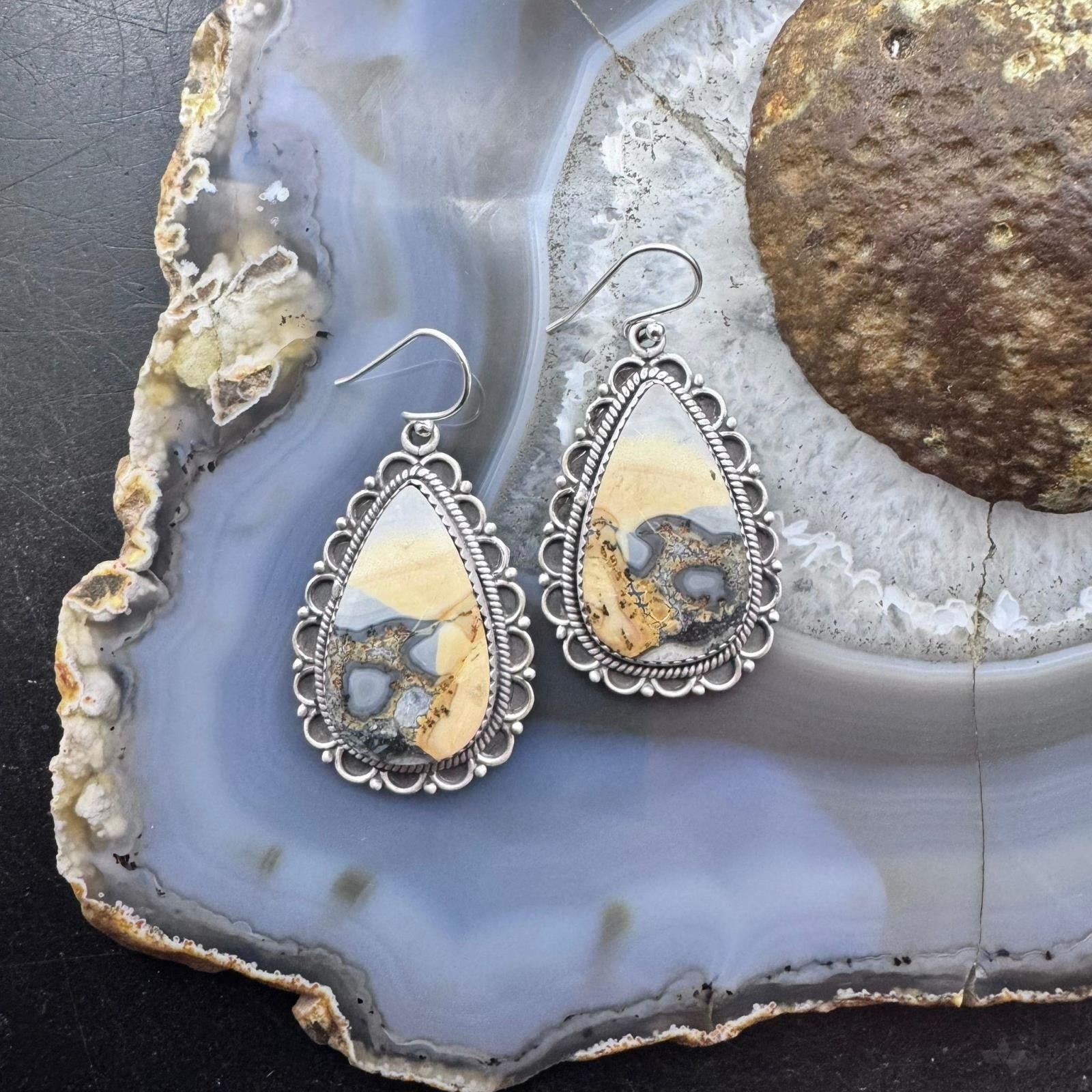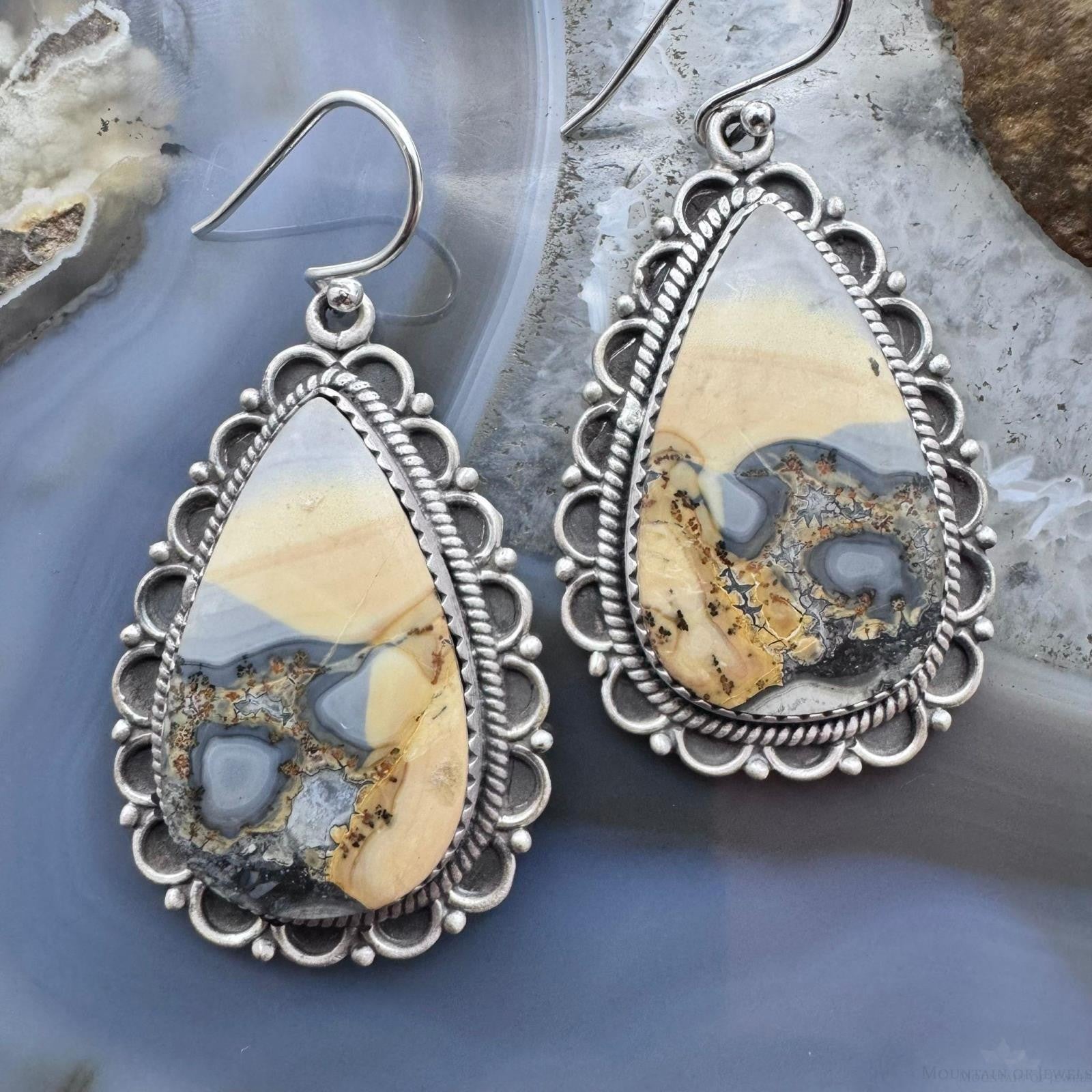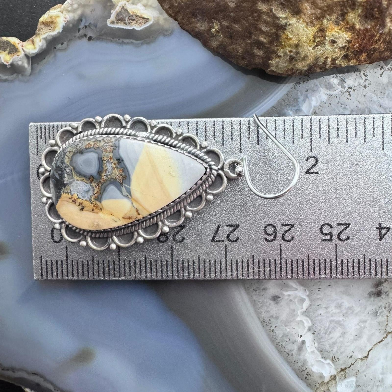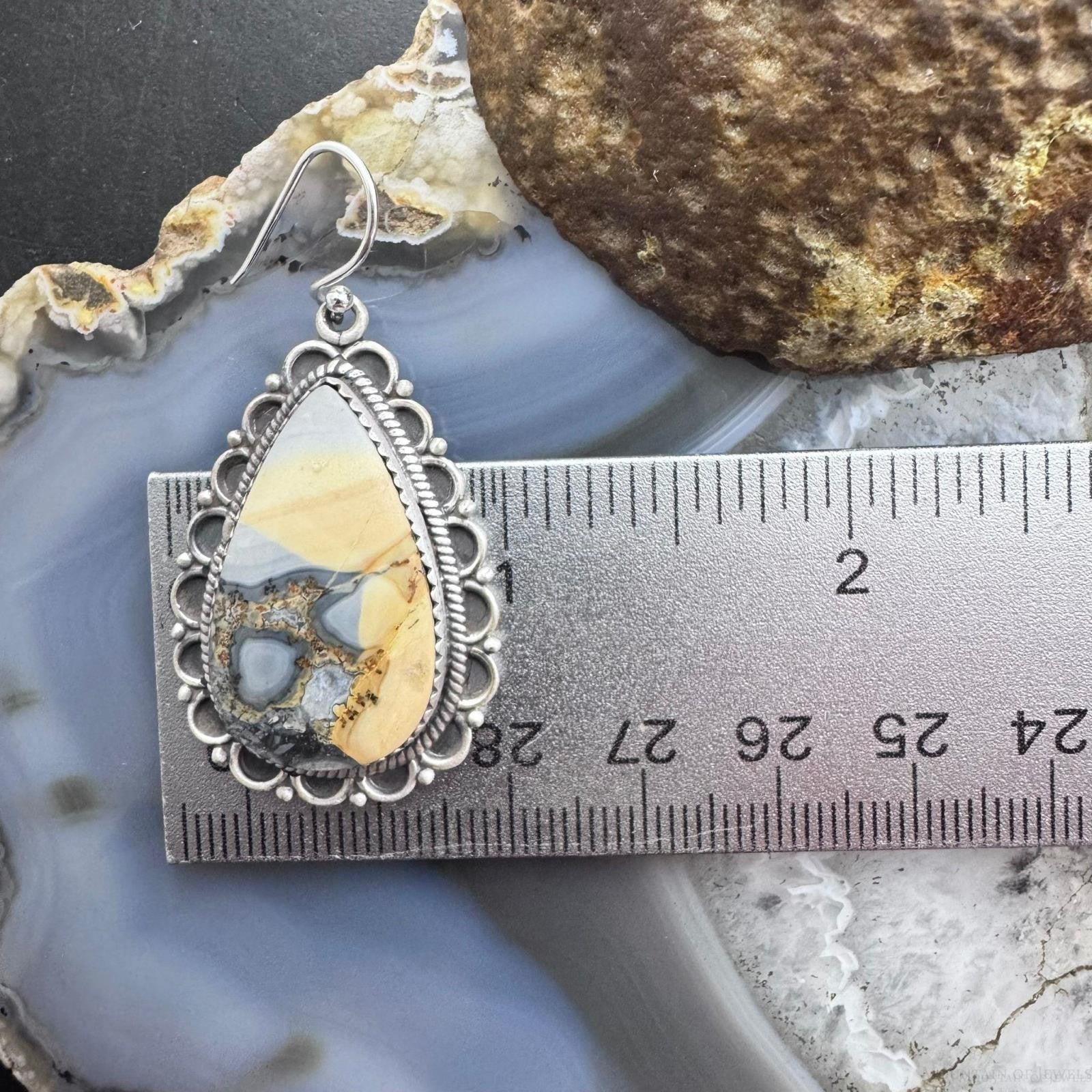 Sterling Silver Southwestern Style Teardrop Maligano Jasper Dangle Earrings For Women