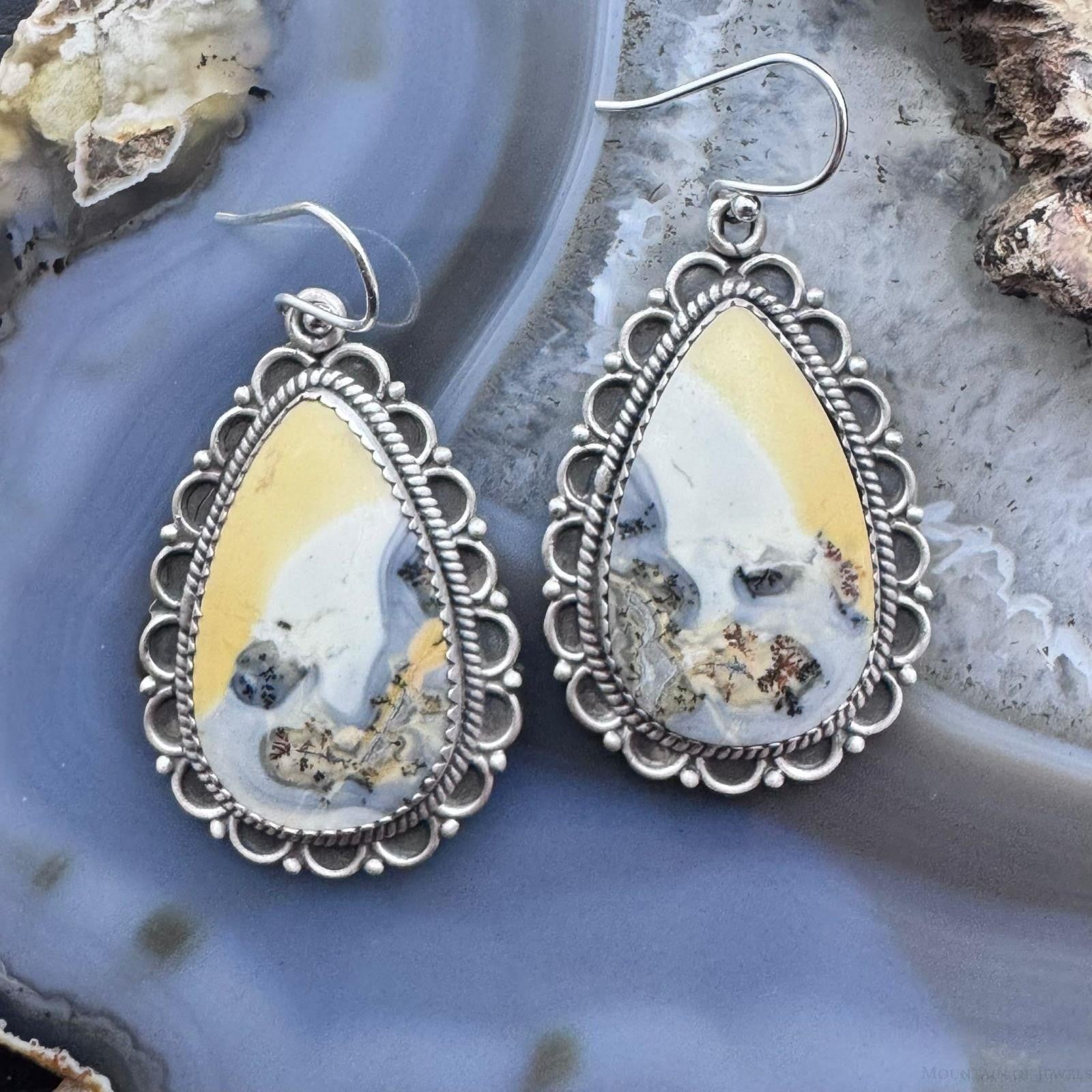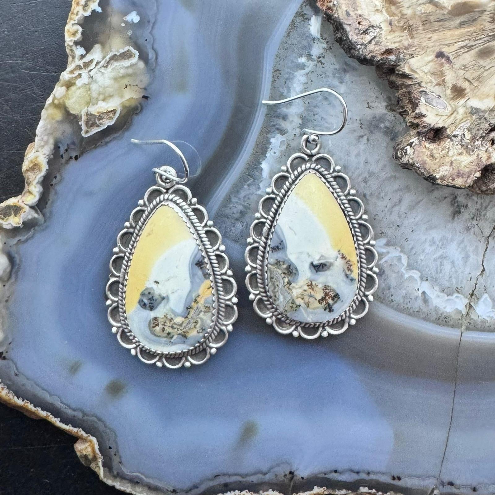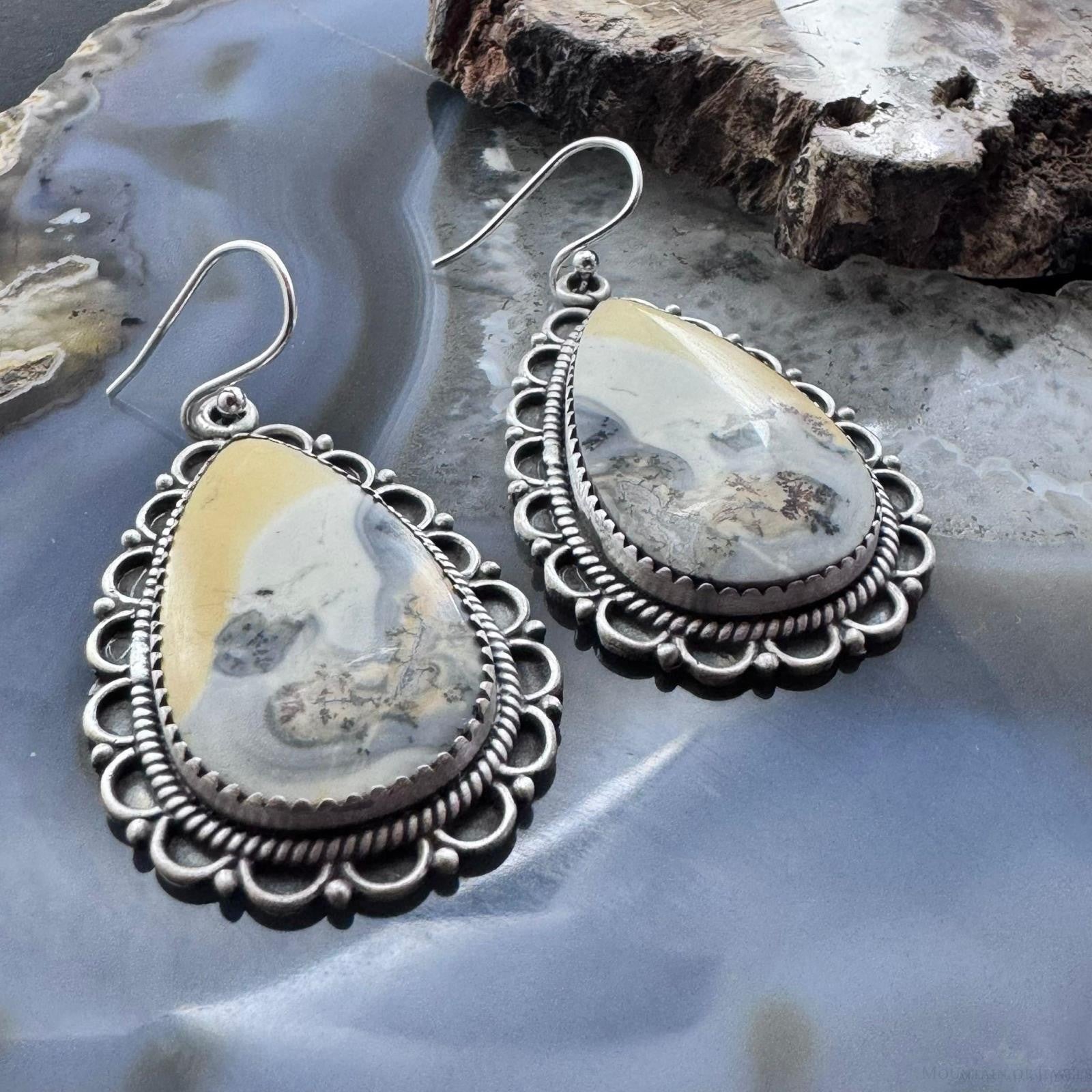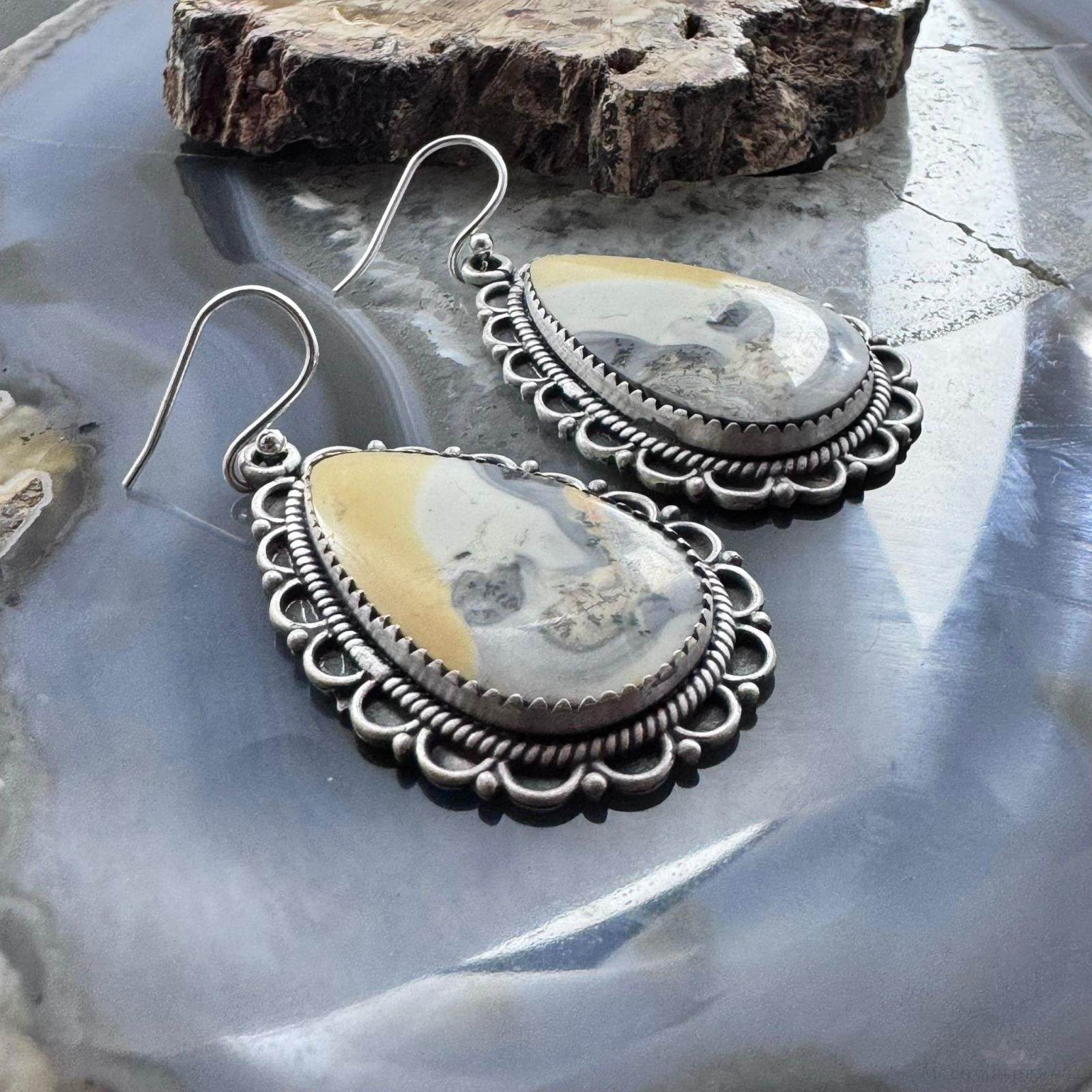 Sterling Silver Southwestern Style Teardrop Maligano Jasper Dangle Earrings For Women #2